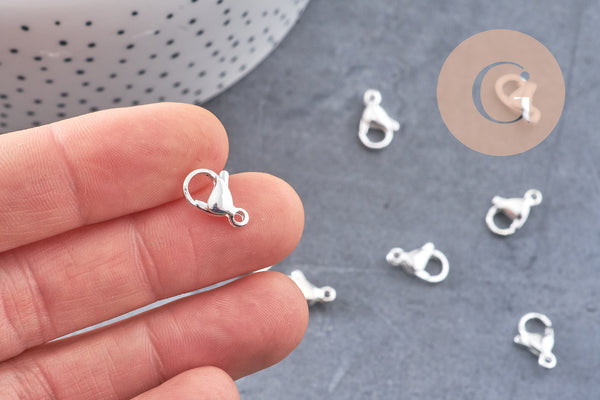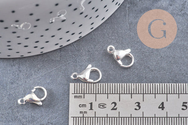 Silver-plated 304 stainless steel lobster clasps, 13mm, x10 VALID