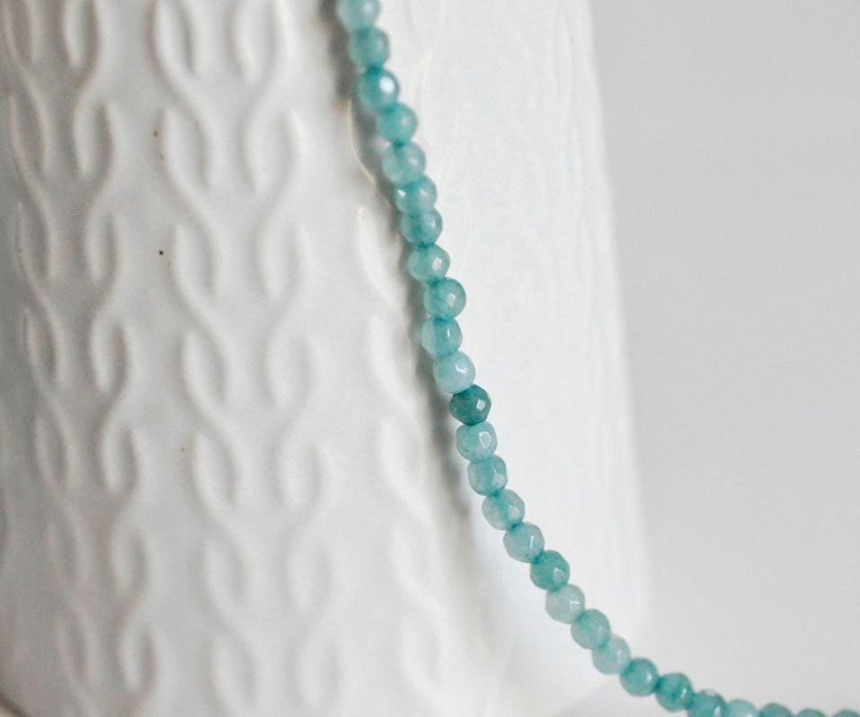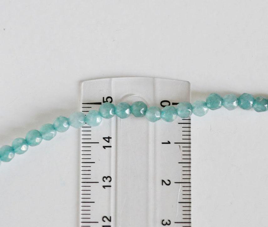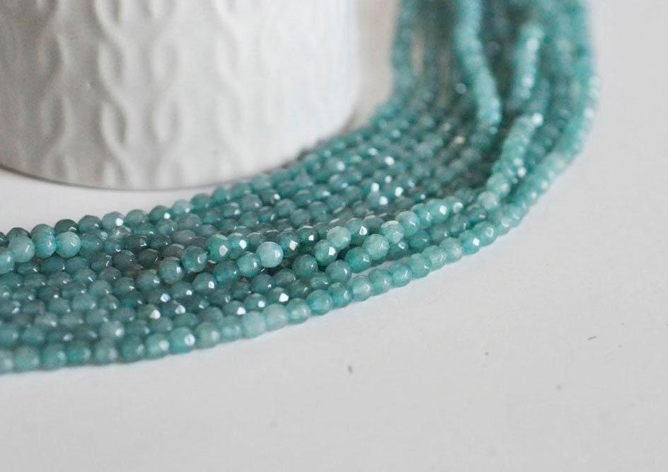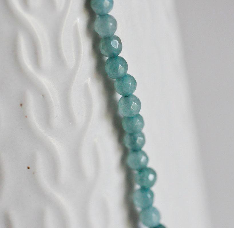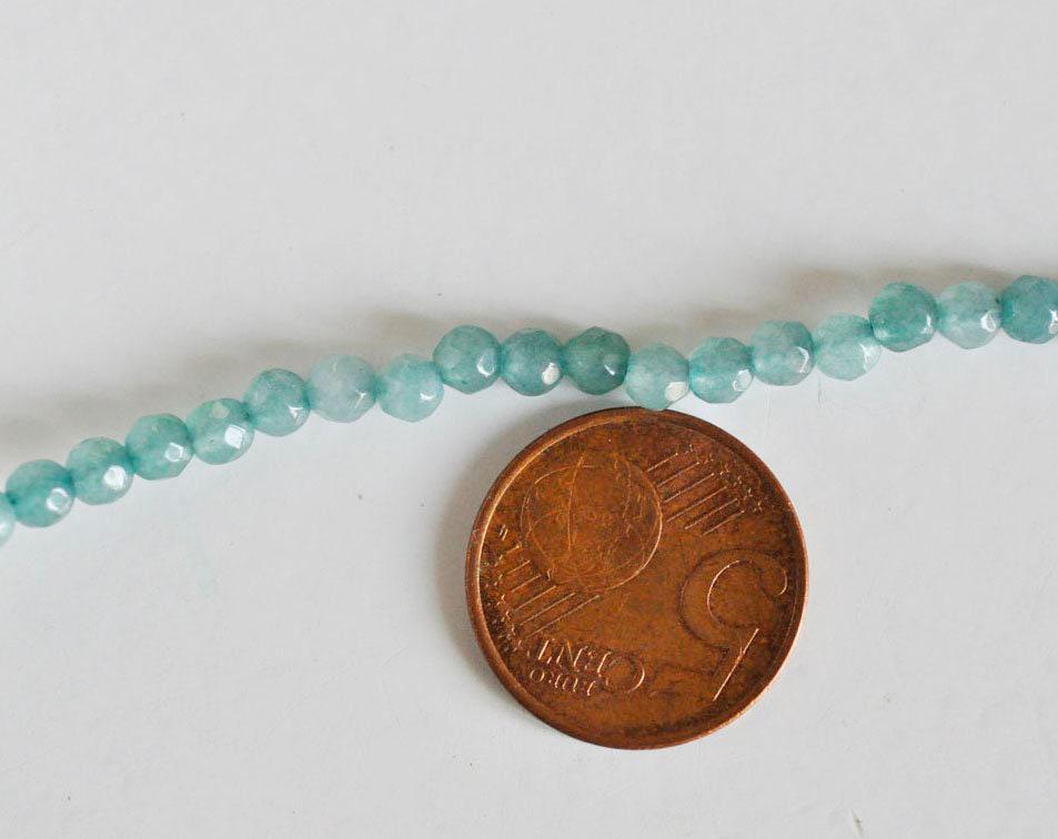Round green jade bead, creative supply, jade bead, natural stone, natural jade, stone bead, faceted bead, jade, 4mm, thread of 90 beads A strand of approximately 90 faceted tinted jade beads. Diameter 4mm Hole: 1mm 35cm wire Other jade, agate...