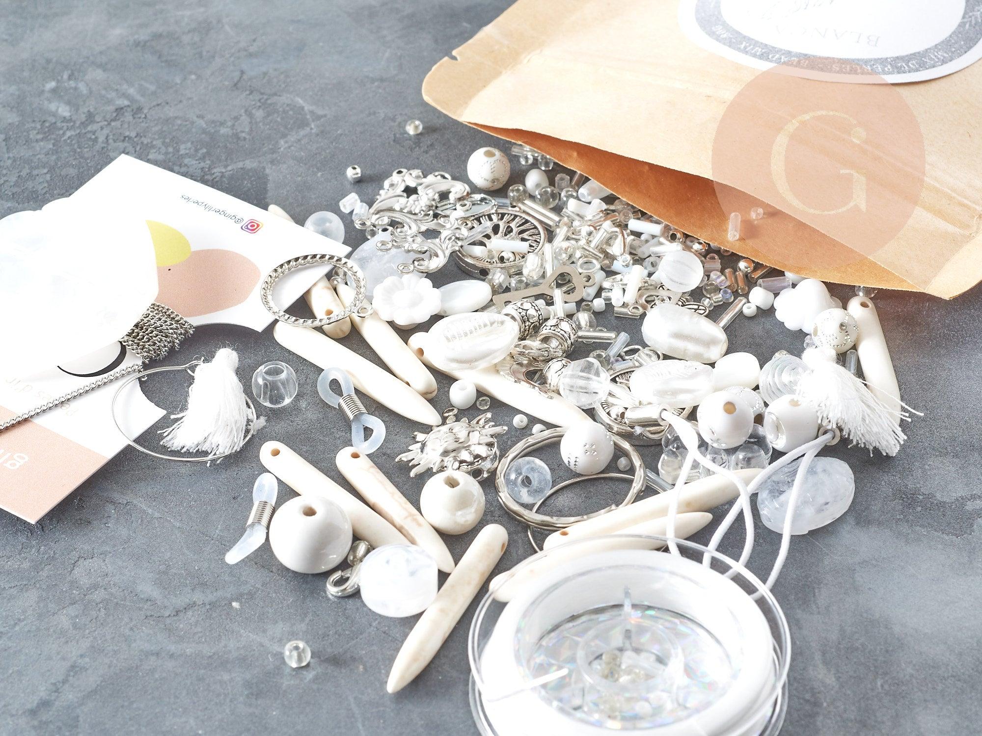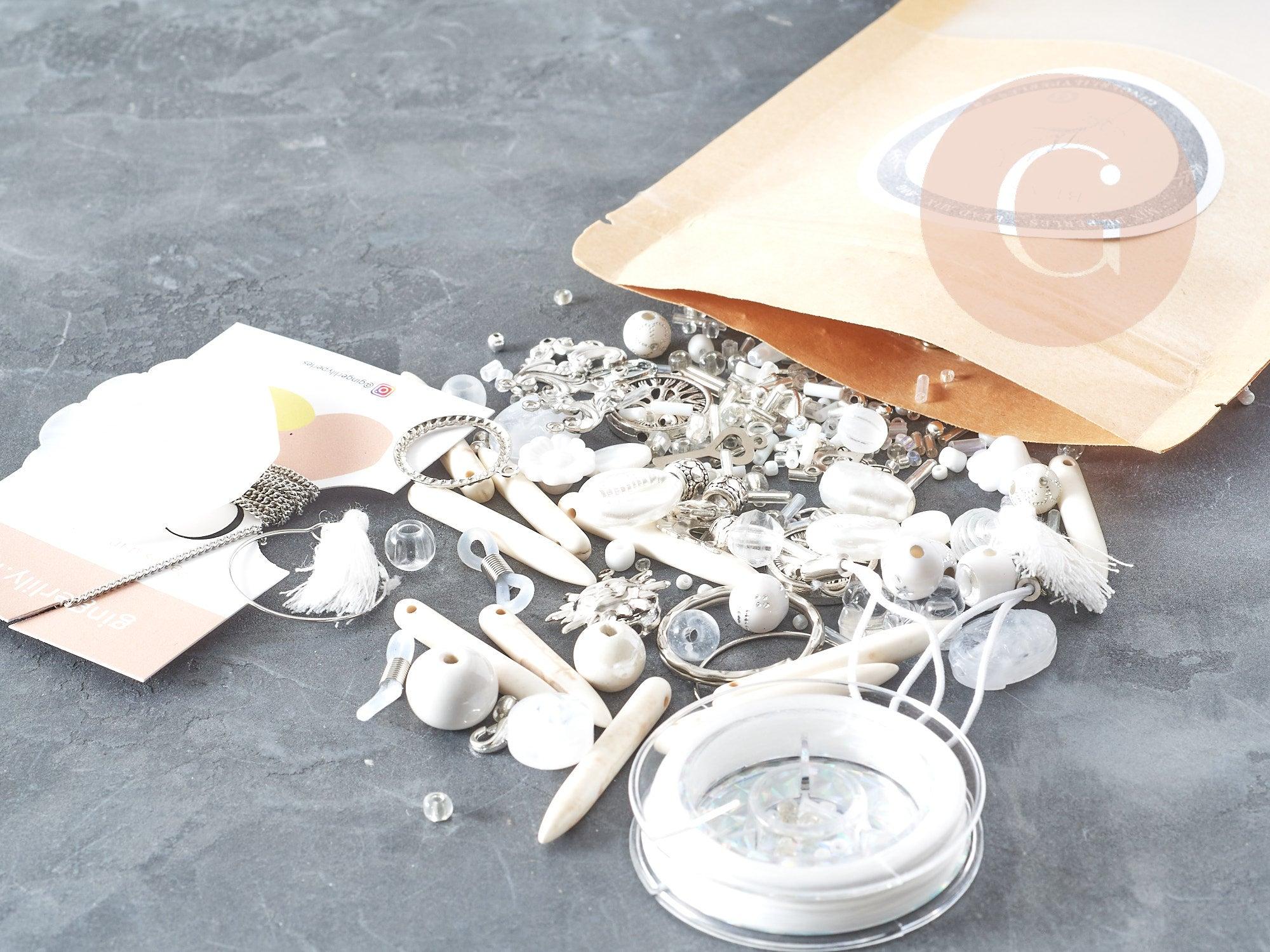 In this envelope, you will discover DIY supplies to make magnificent jewelry as well as various accessories . The flexible elastic thread spool will allow you to create several bracelets and necklaces, to keep or to give as a gift. You will also find elements to make eyeglass jewelry, phone jewelry and even key rings. Round plastic beads, beads in the shape of letters or messages, fancy beads...