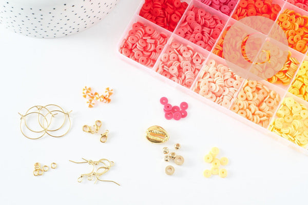 Gingerlily offers you this box of mixed heishi beads in red-orange to create your small jewelry and accessories.