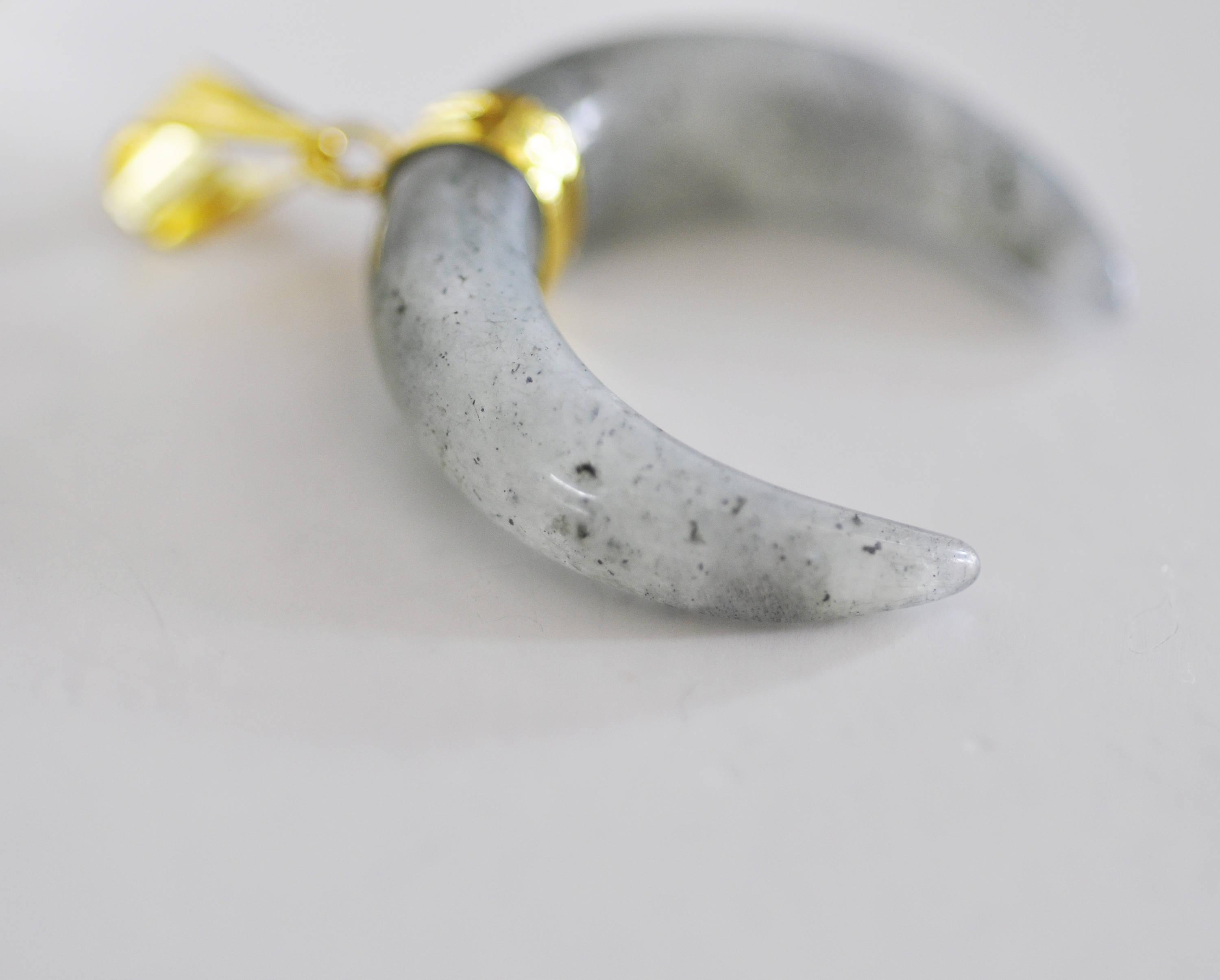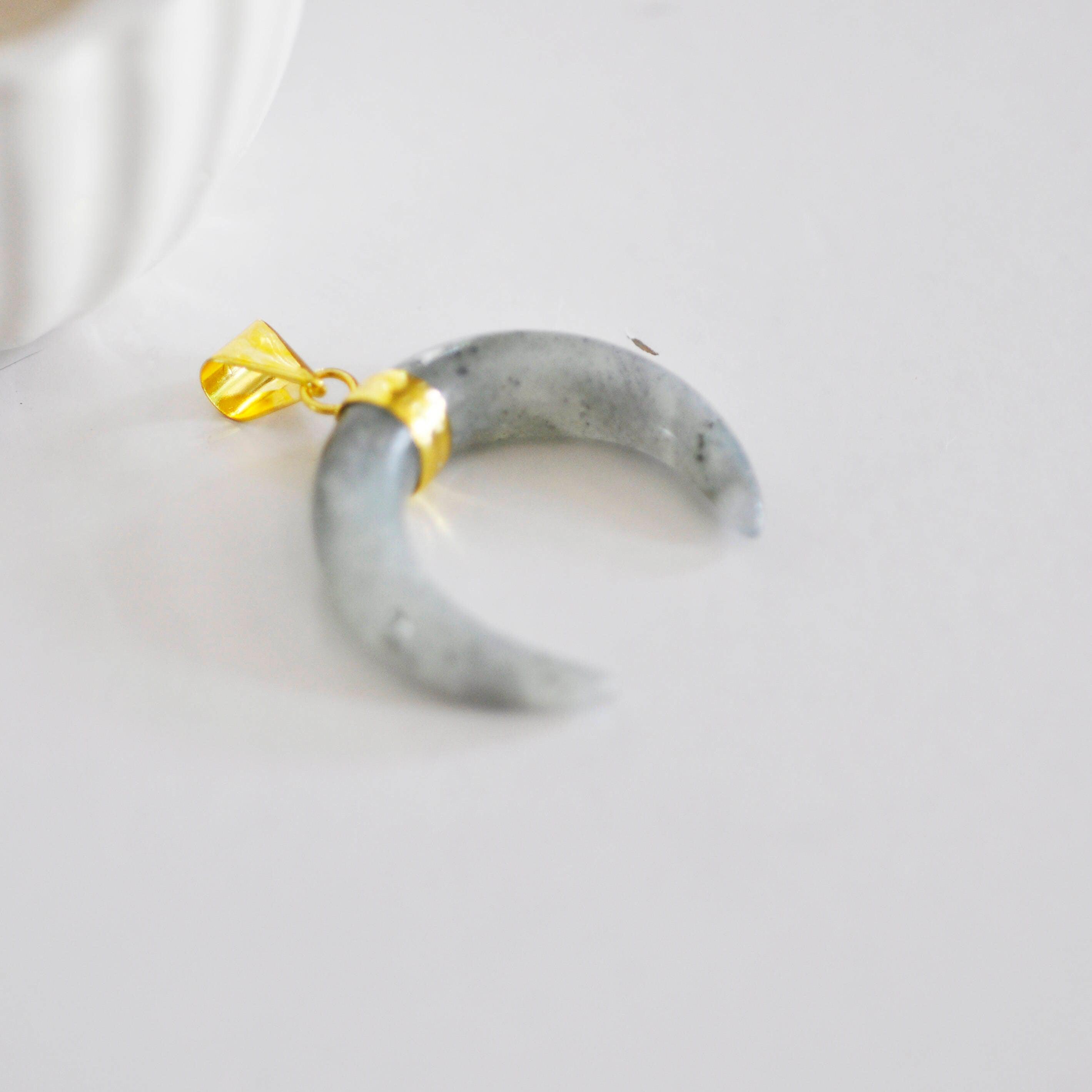 Labradorite Moon Pendant, Pendant for jewelry, stone pendant, natural stone, gray pendant Fall for this natural Labradorite moon to make very trendy bohemian chic jewelry. Width: 32mm Length 35mm Thickness: 10mm Hole: 4.5x8mm. Other pendants in other colors and materials...