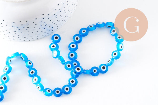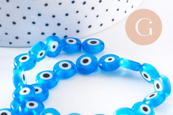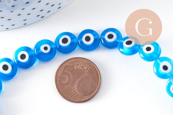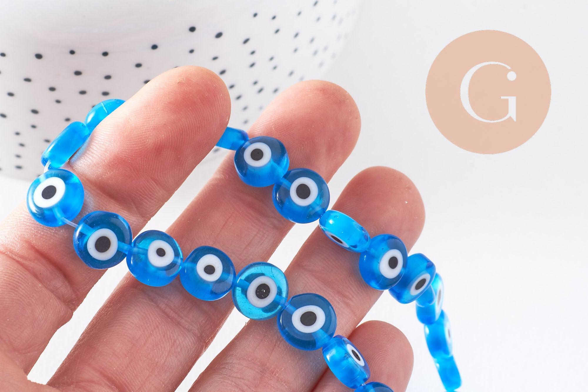 Greek Evil Eye disc bead blue glass, glass bead, lucky bead, artisanal glass bead, lucky bead, jewelry creation 10mm