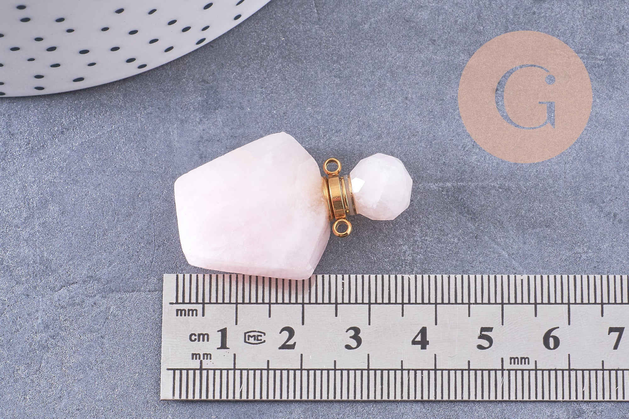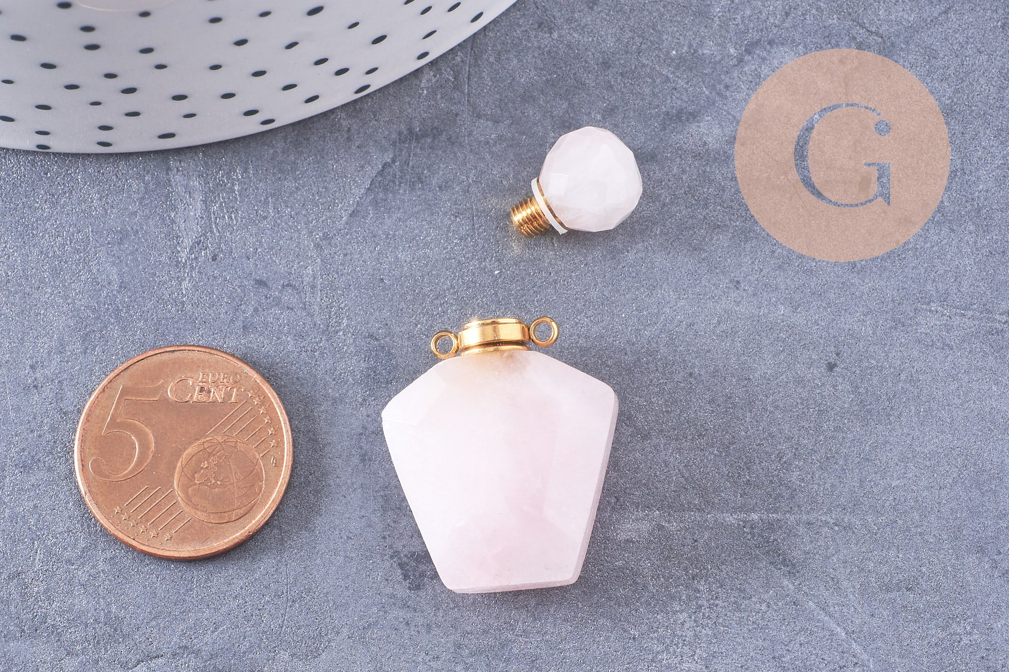 Add a poetic and sensory touch to your jewelry with this natural rose quartz bottle pendant . Elegant and delicate, this miniature bottle opens to hold a few drops of perfume, making it a piece of jewelry that is as practical as it is symbolic. Its 304 gold-plated stainless steel support ensures durability and strength, perfect for everyday use.
