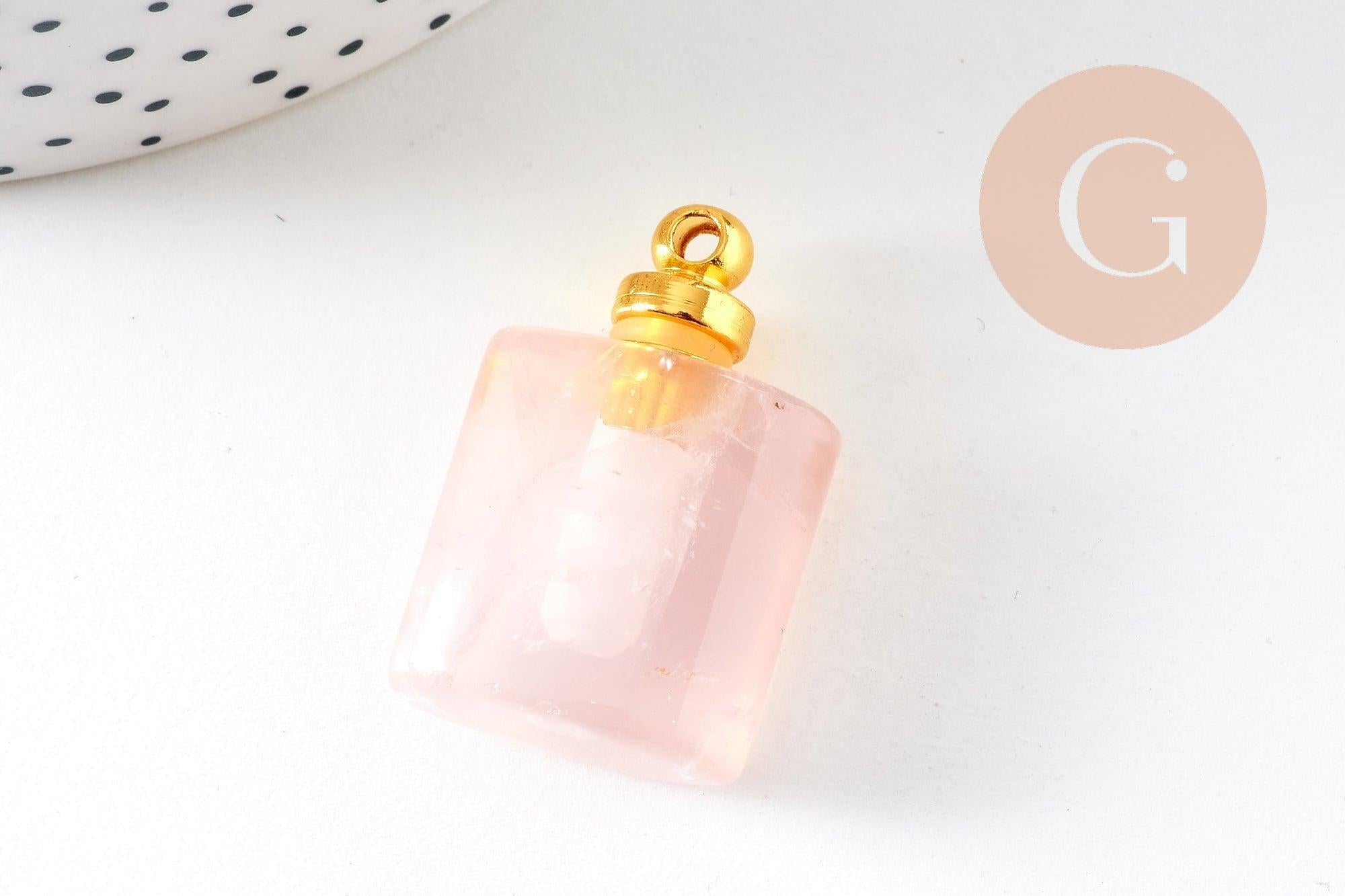 Rose quartz perfume bottle pendant, natural stone pendant, necklace pendant, natural quartz pendant, 33mm