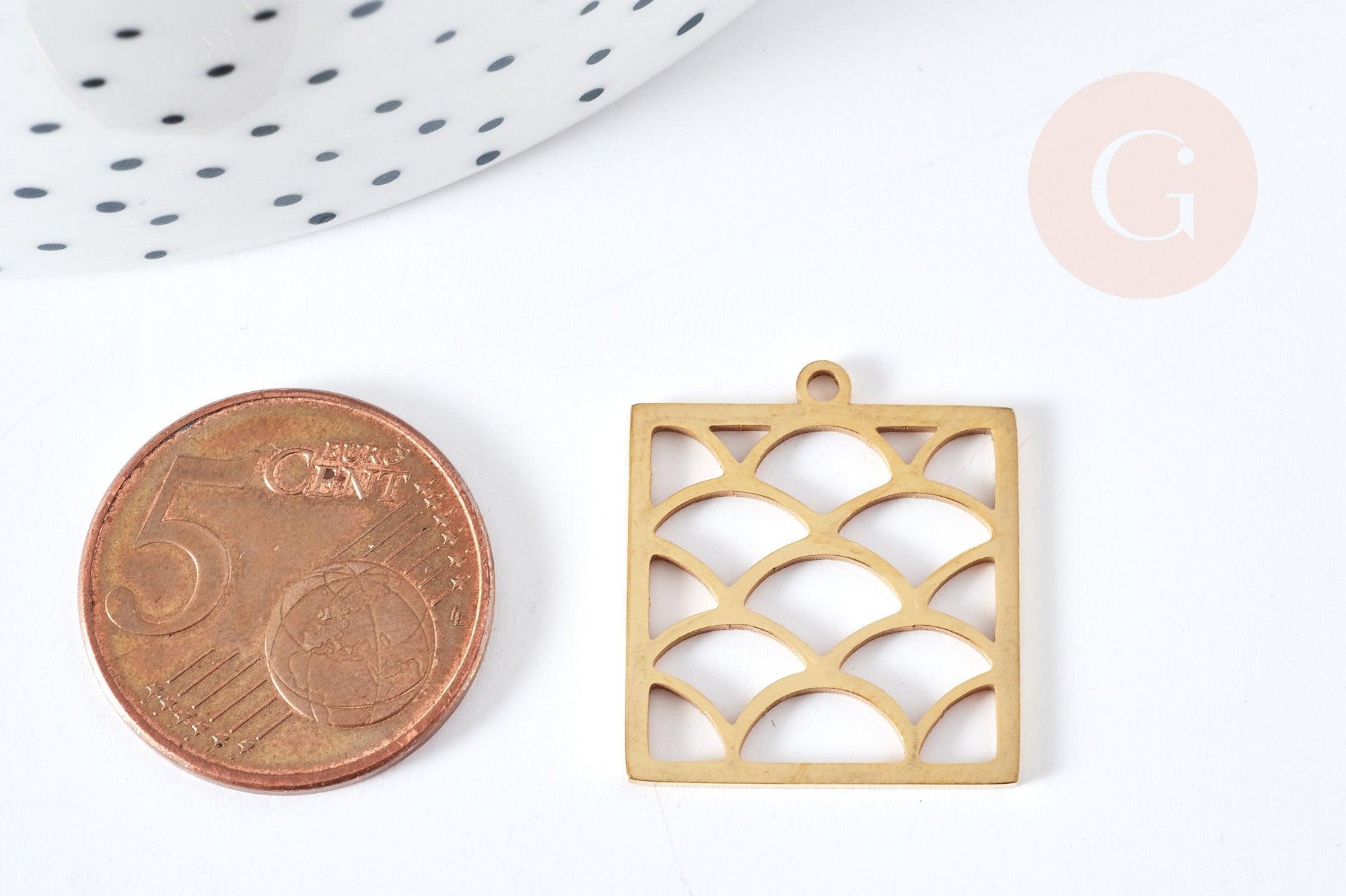 A square gold stainless steel pendant with a wave decoration . A perfect pendant for your DIY jewelry creations.