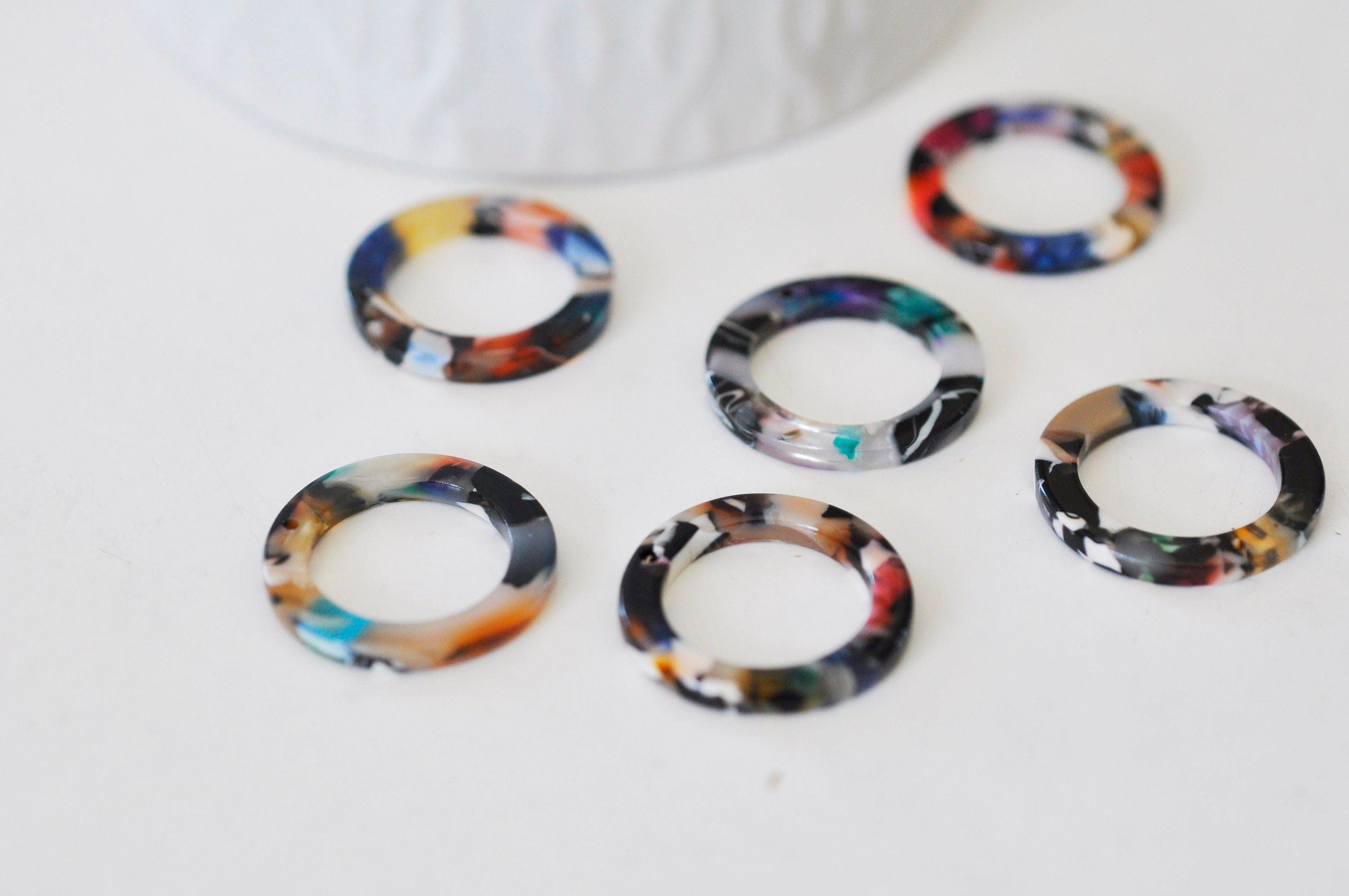 Acetate colored circle pendant, jewelry supply, acetate bead, jewelry creation, plastic beads, plastic connector, set of 2-10, 21.5mm