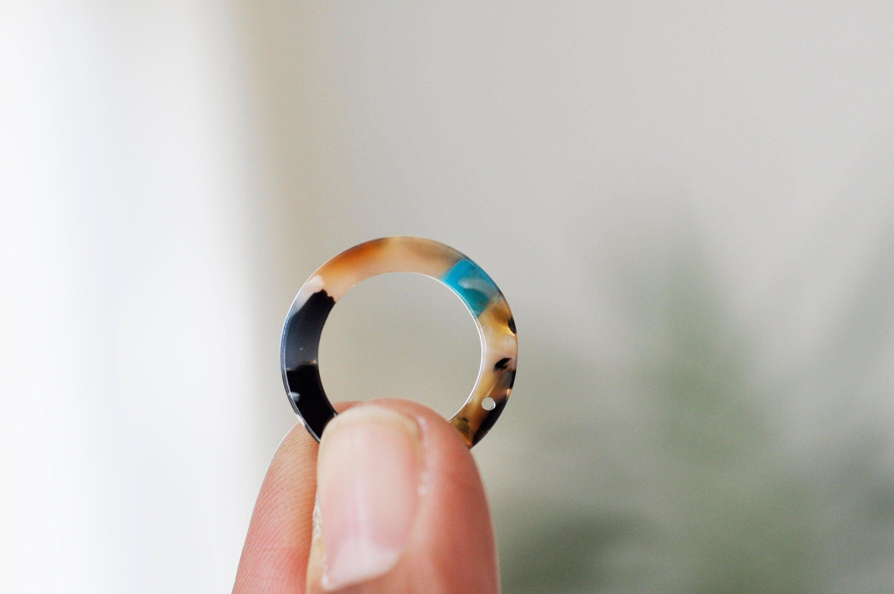 Circle pendant in multicolored tortoiseshell cellulose acetate to make modern and very trendy necklaces and earrings