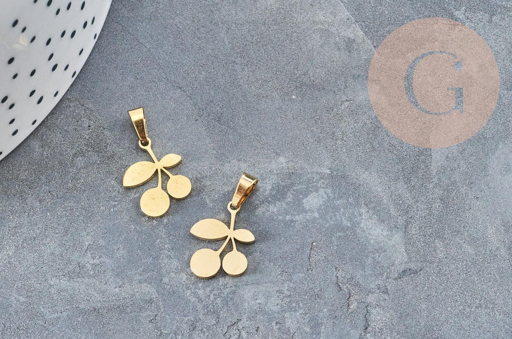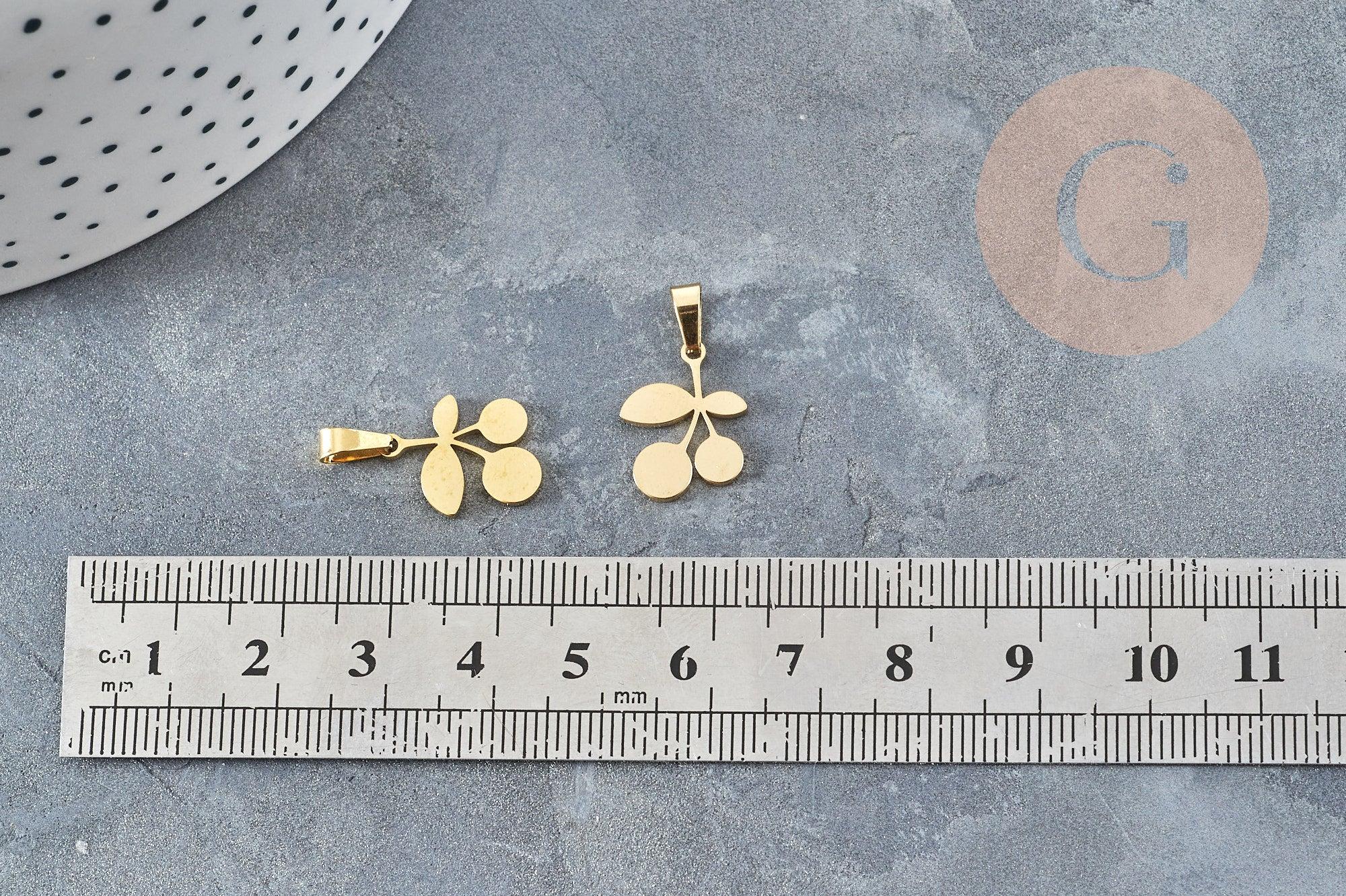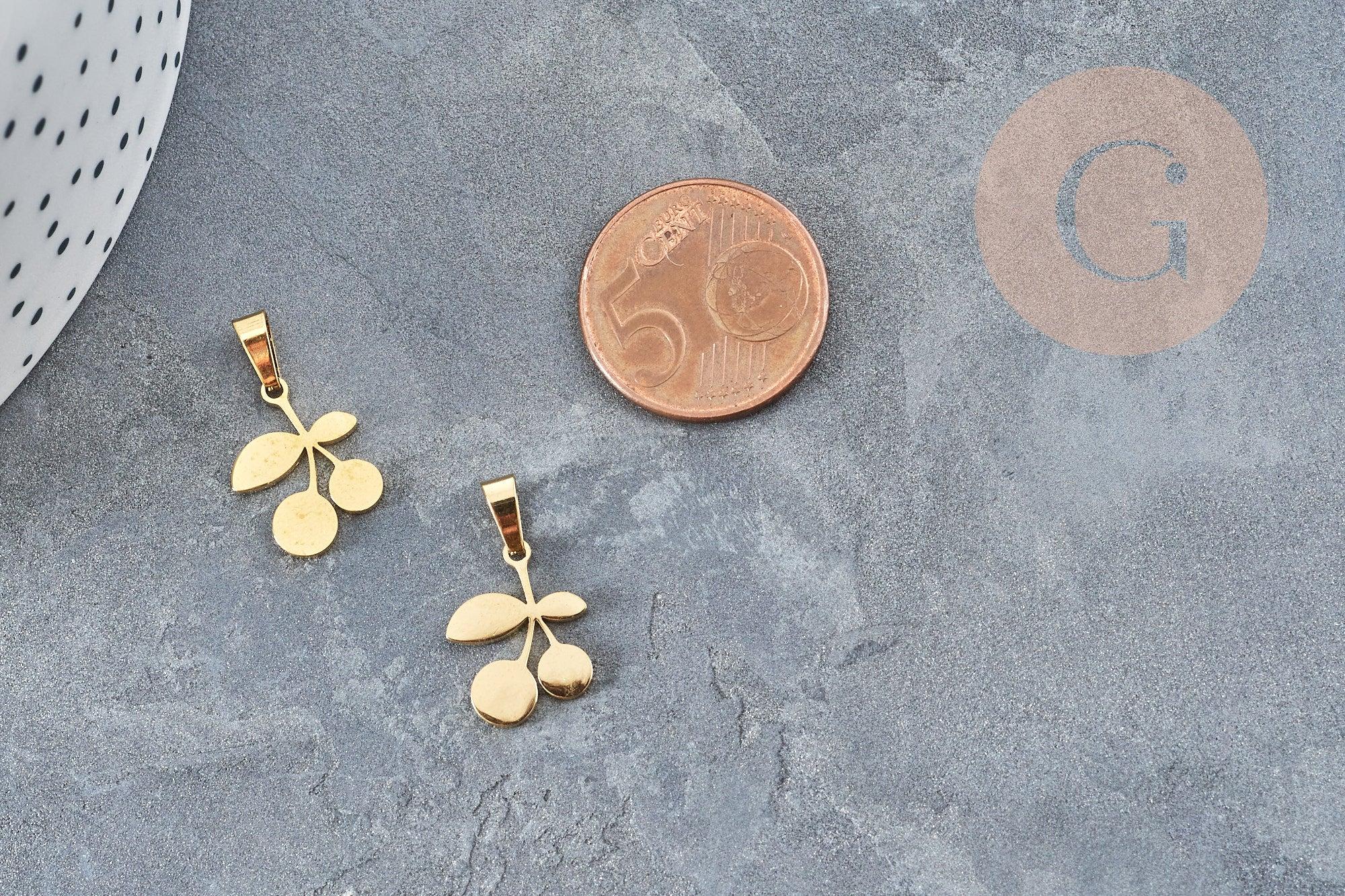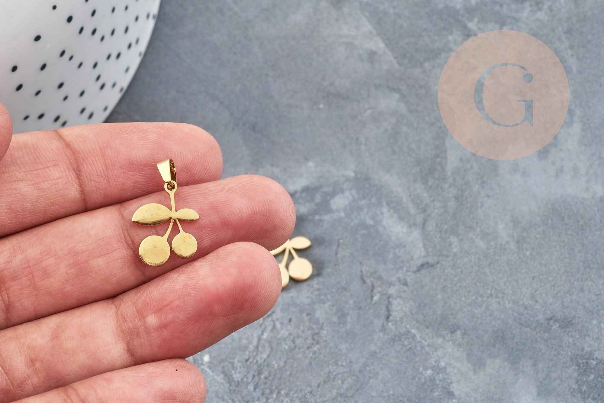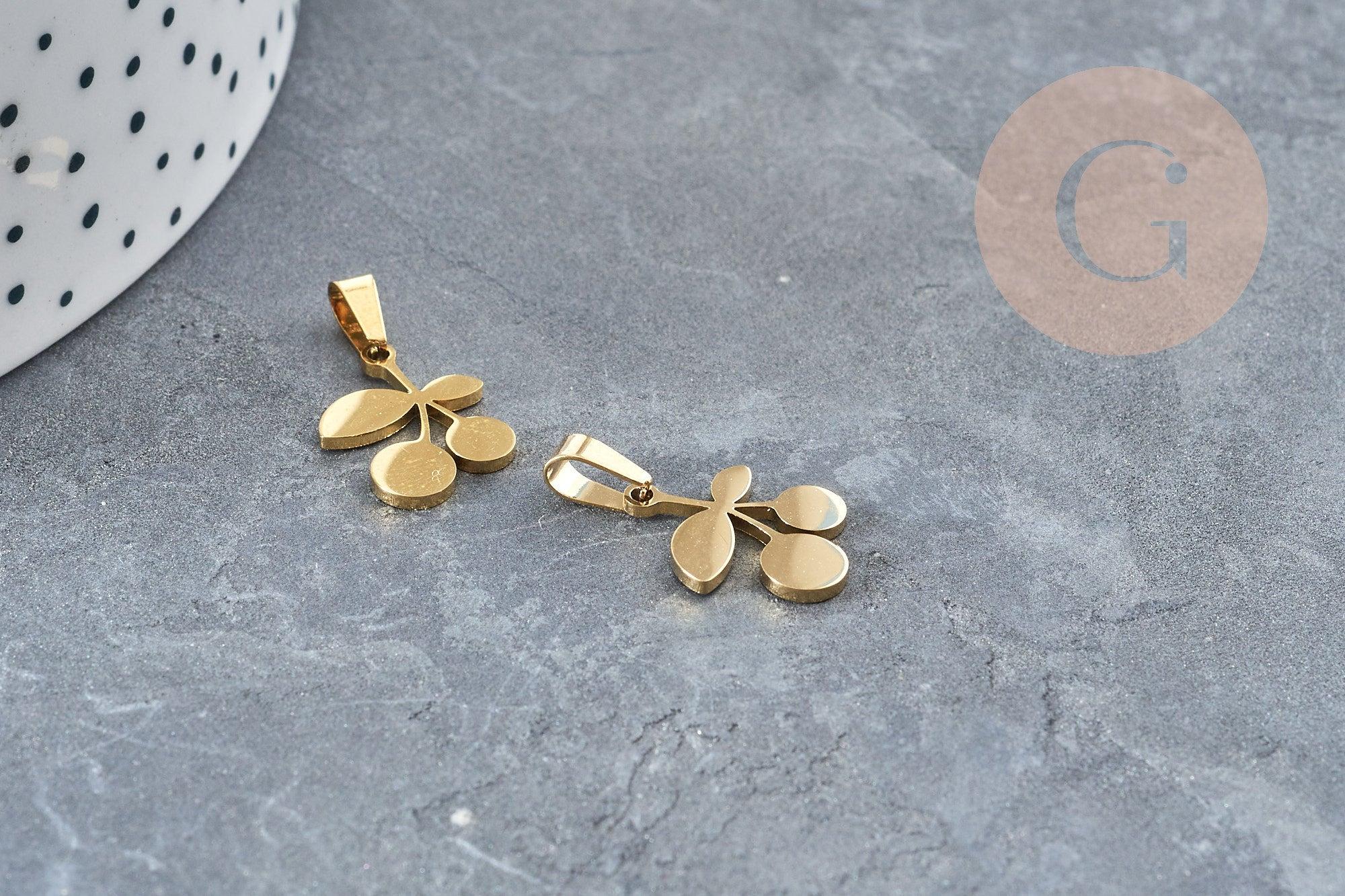 Add a sweet and summery touch to your creations with this 304 gold-plated stainless steel cherry pendant. Its delicate and fruity design makes it an ideal finding for sunny, fun and trendy jewelry — perfect for vibrant creations to wear all summer long.