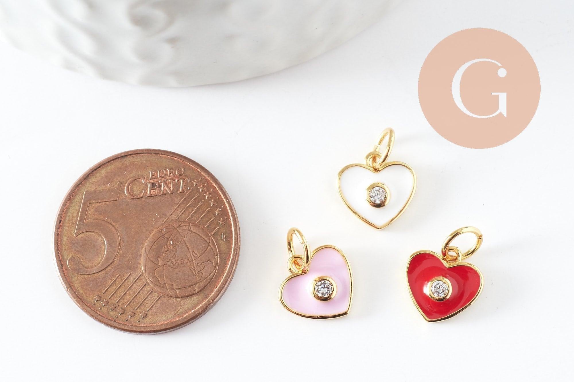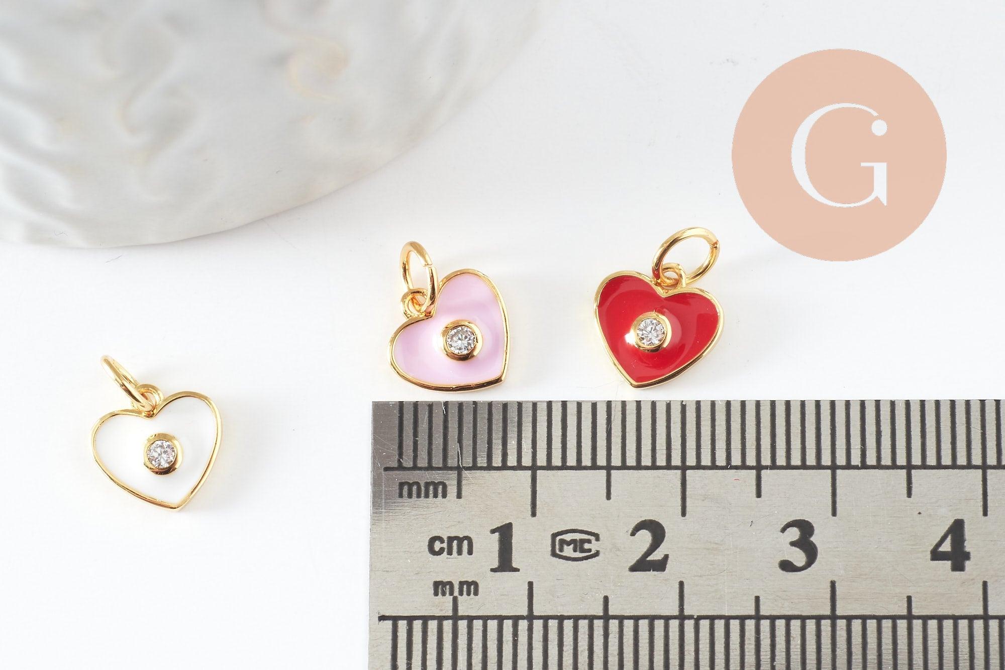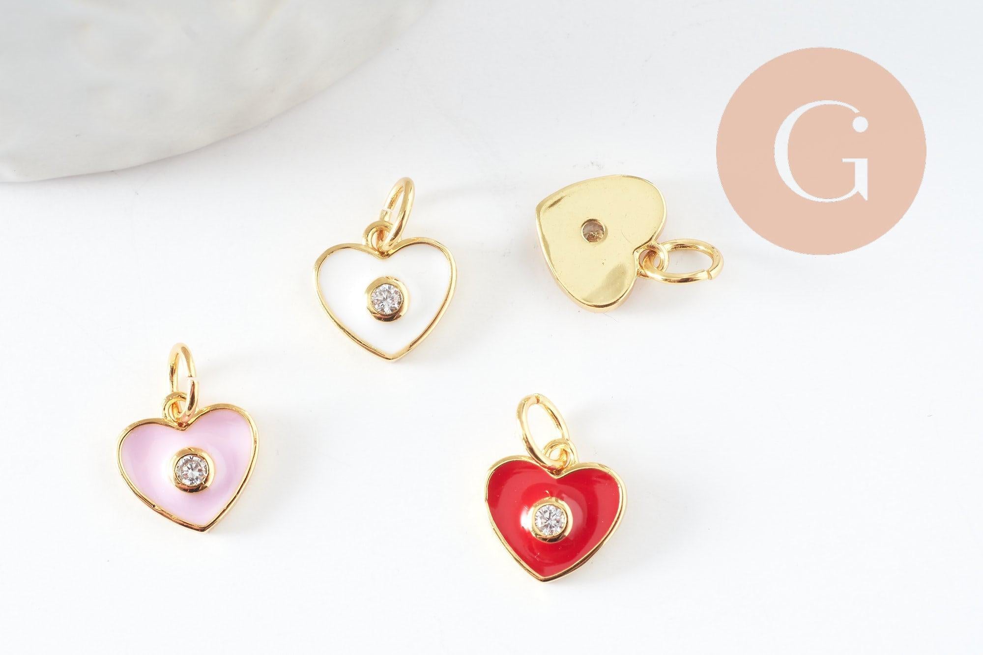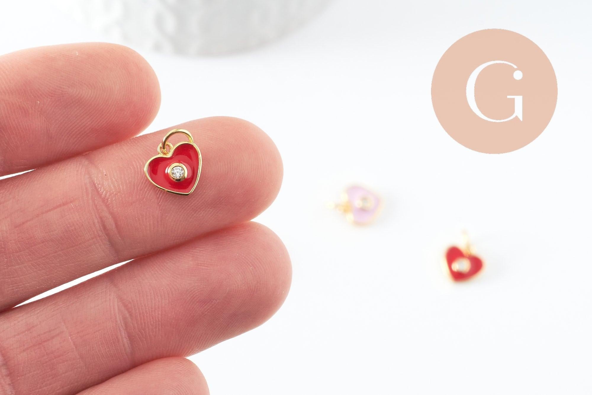 A small heart pendant in gold-plated brass and colored enamel with a pretty white zircon crystal in the center, findings to always have in your toolbox to make all your jewelry.