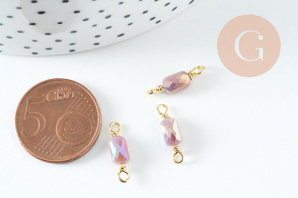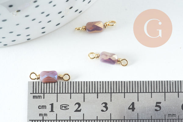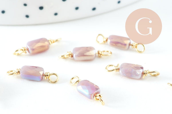 Pendentif connecteur rectangle verre facetté violet bleu irisé laiton doré 15.5mm, x5 (G10730)