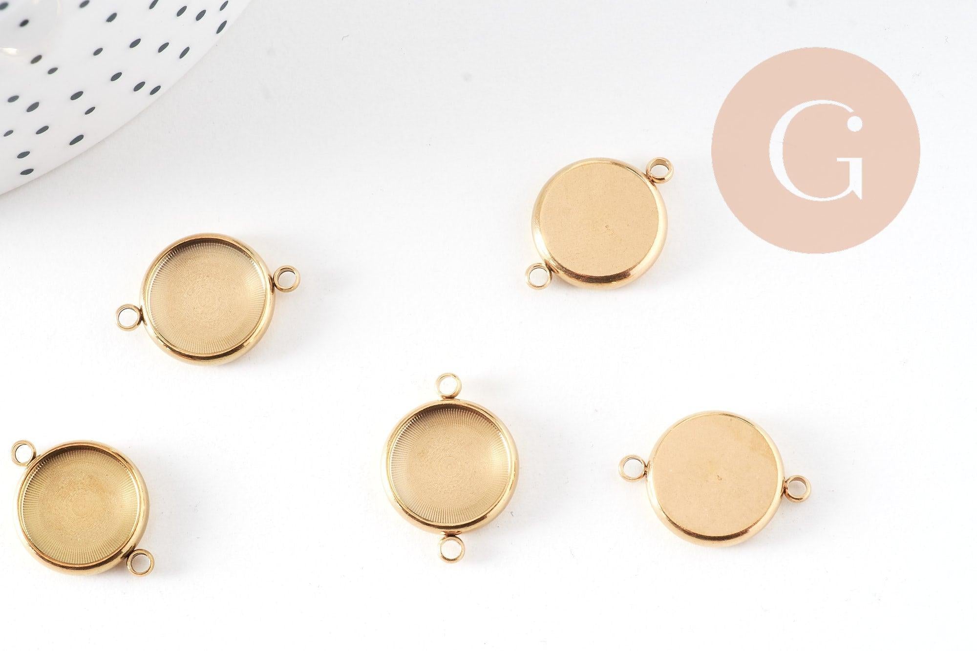 Bring elegance and durability to your creations with this round connector in IP gold 304 stainless steel , specially designed to accommodate a 12 mm cabochon . Its smooth and refined base highlights both natural stones and resin, glass or polymer clay cabochons.