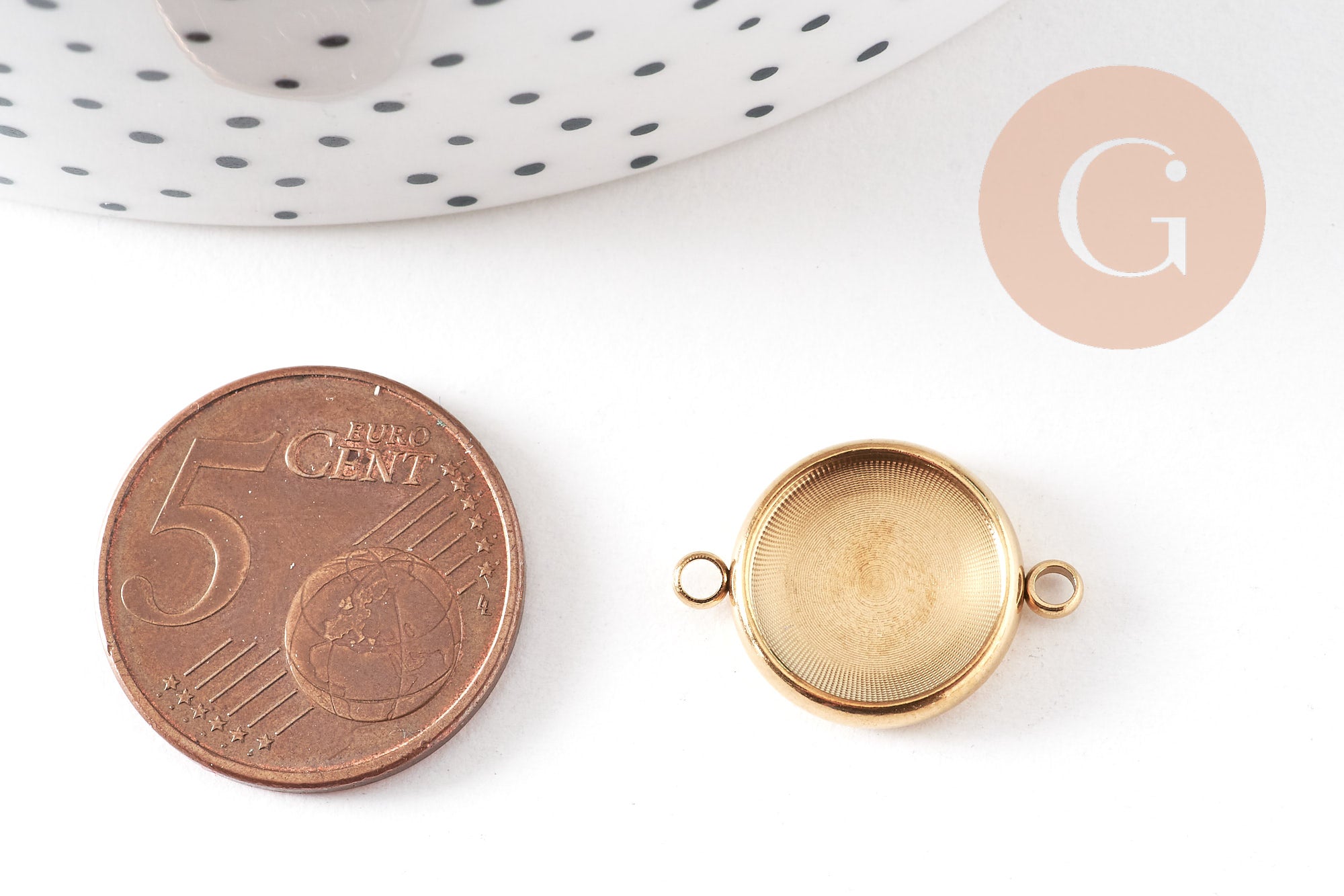 Pendentif connecteur rond support cabochon 12mm acier 304 inoxydable IP, x1 (G10803)