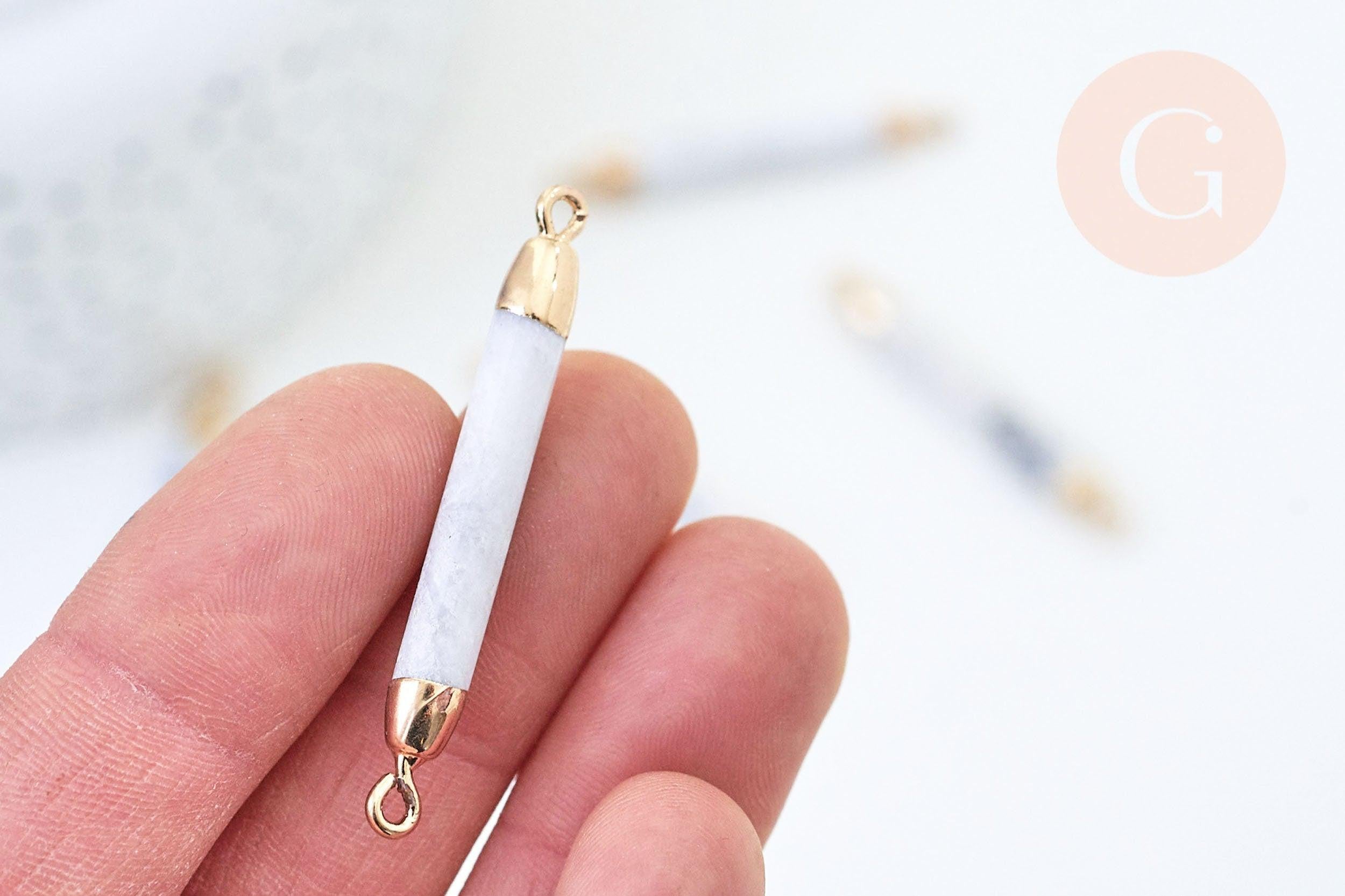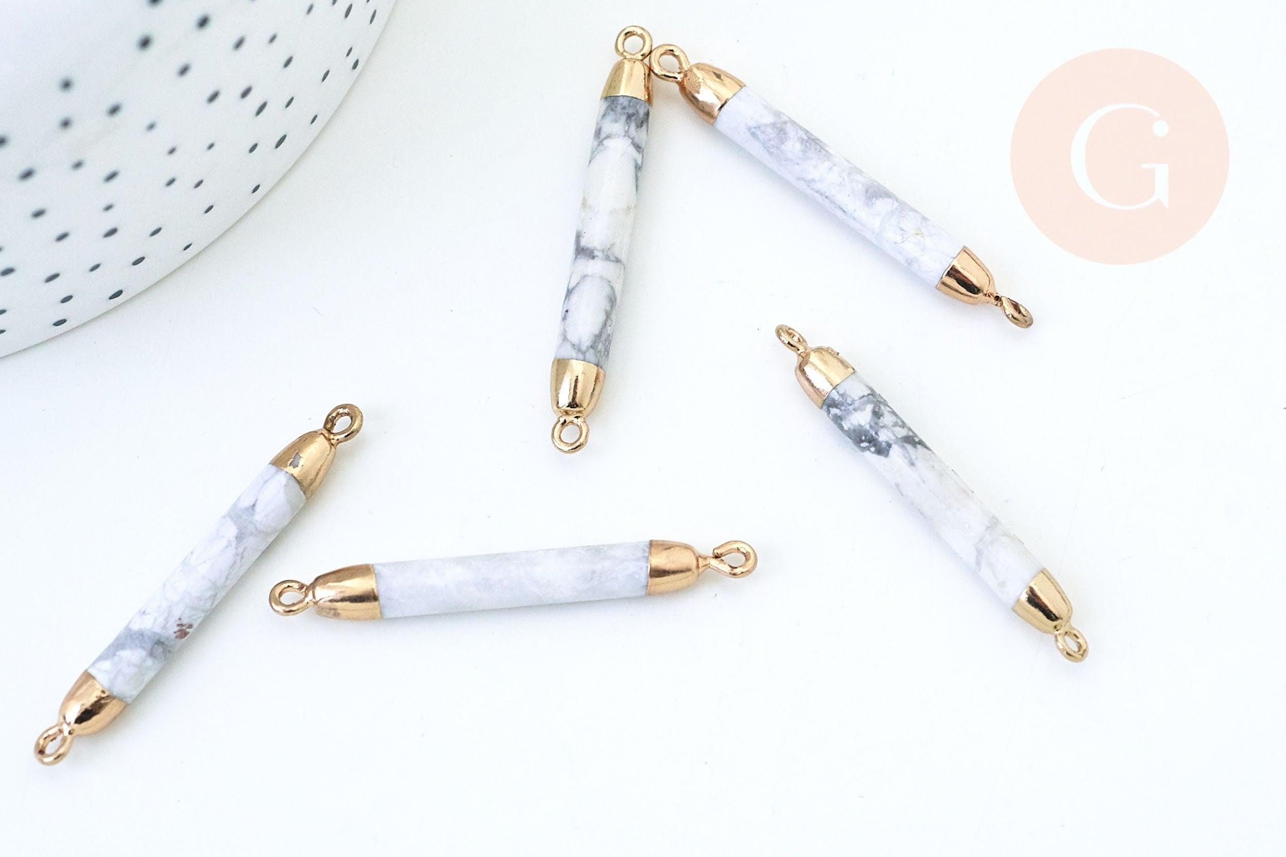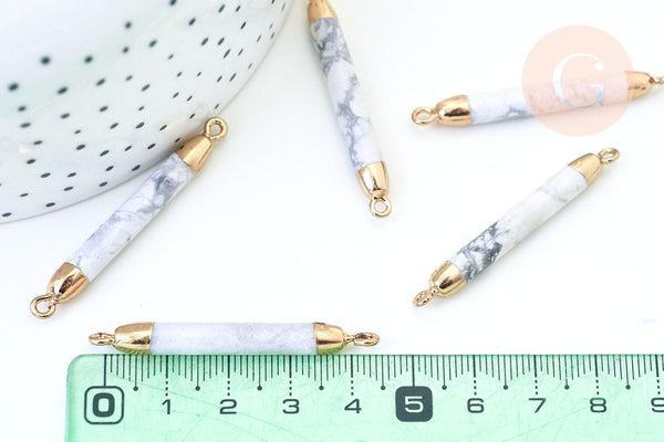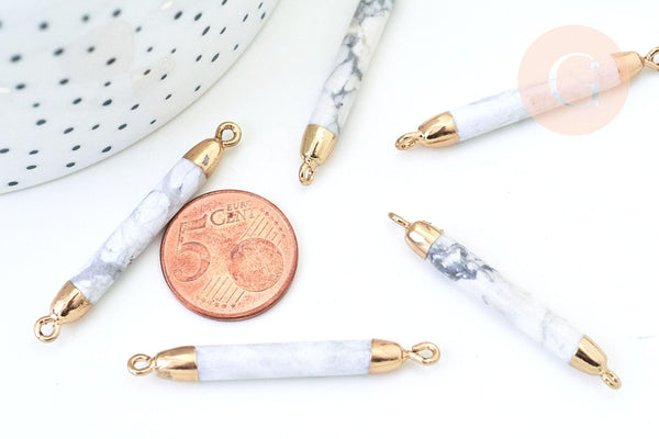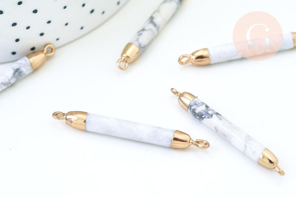 Opt for this long connector pendant in natural howlite with its golden tube-shaped support.