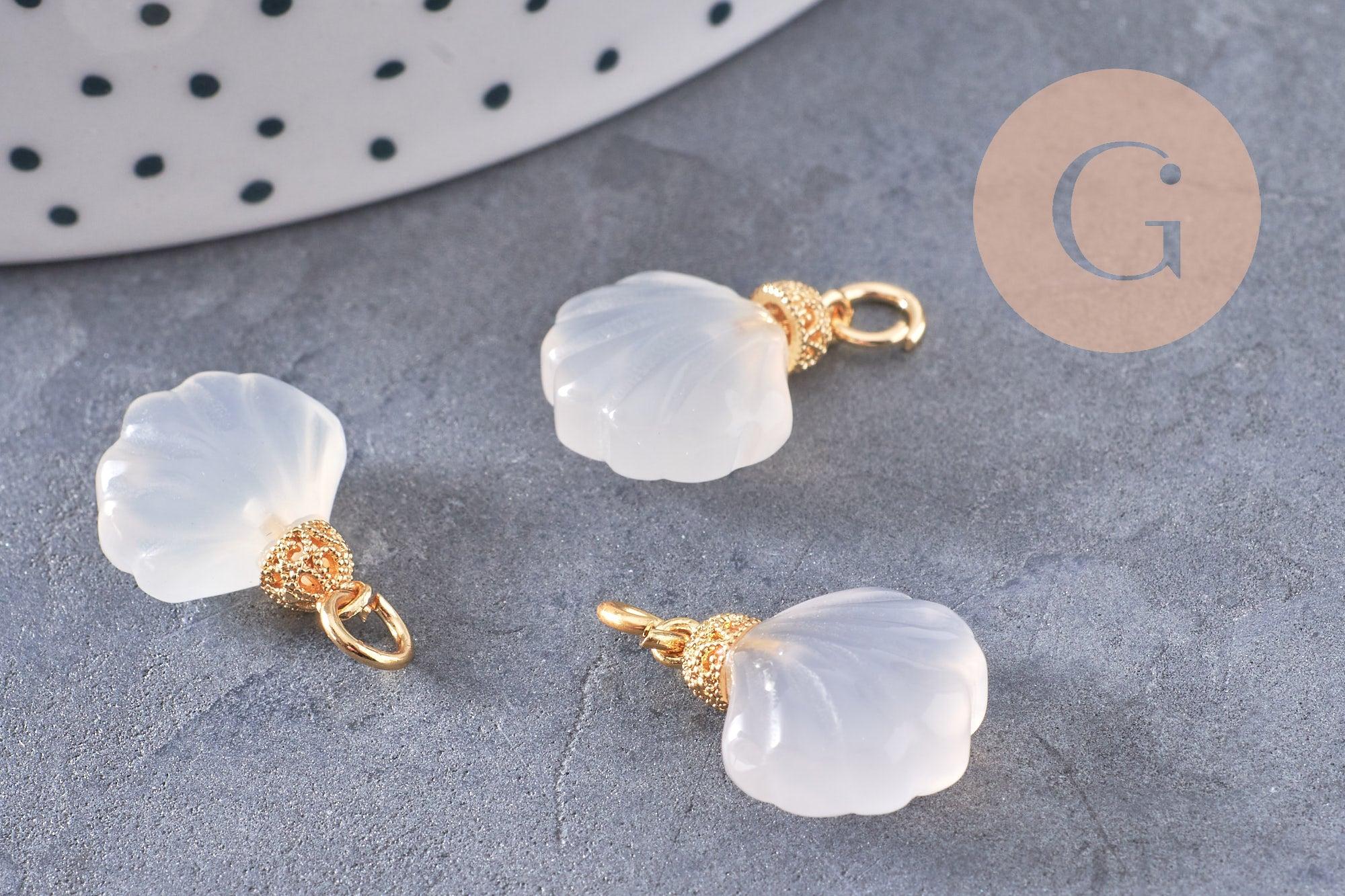 This white natural agate shell pendant , subtly 14K gold plated , is a refined and elegant piece of jewelry, perfect for adding a touch of light and naturalness to your DIY creations. Its shell shape, combined with the softness of the agate and the delicate gold, makes it an ideal choice for jewelry inspired by the sea or chic minimalism.