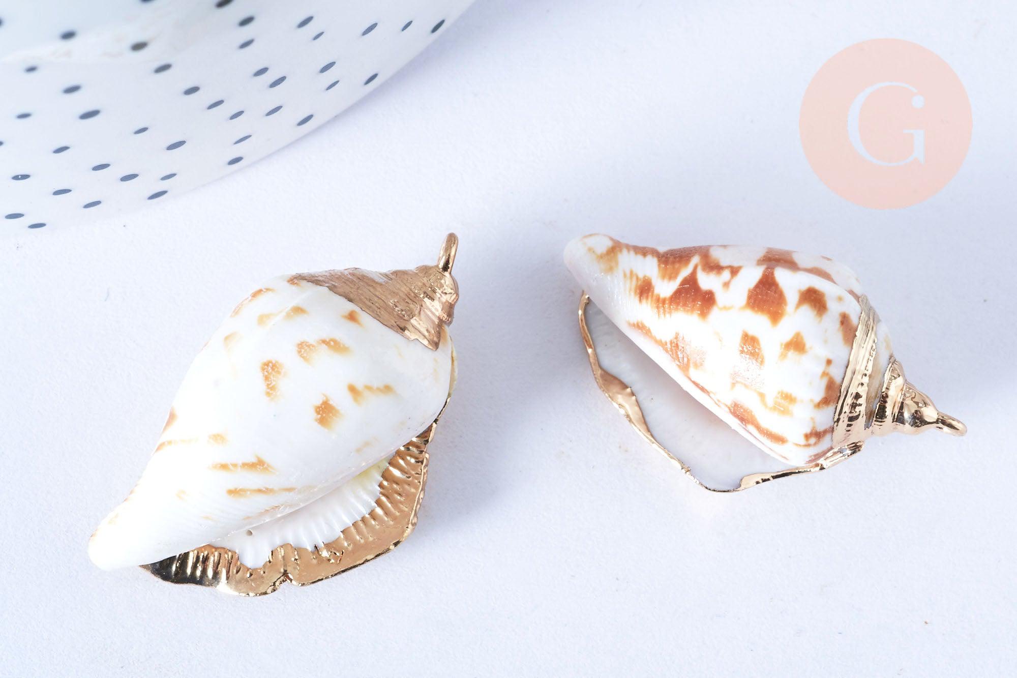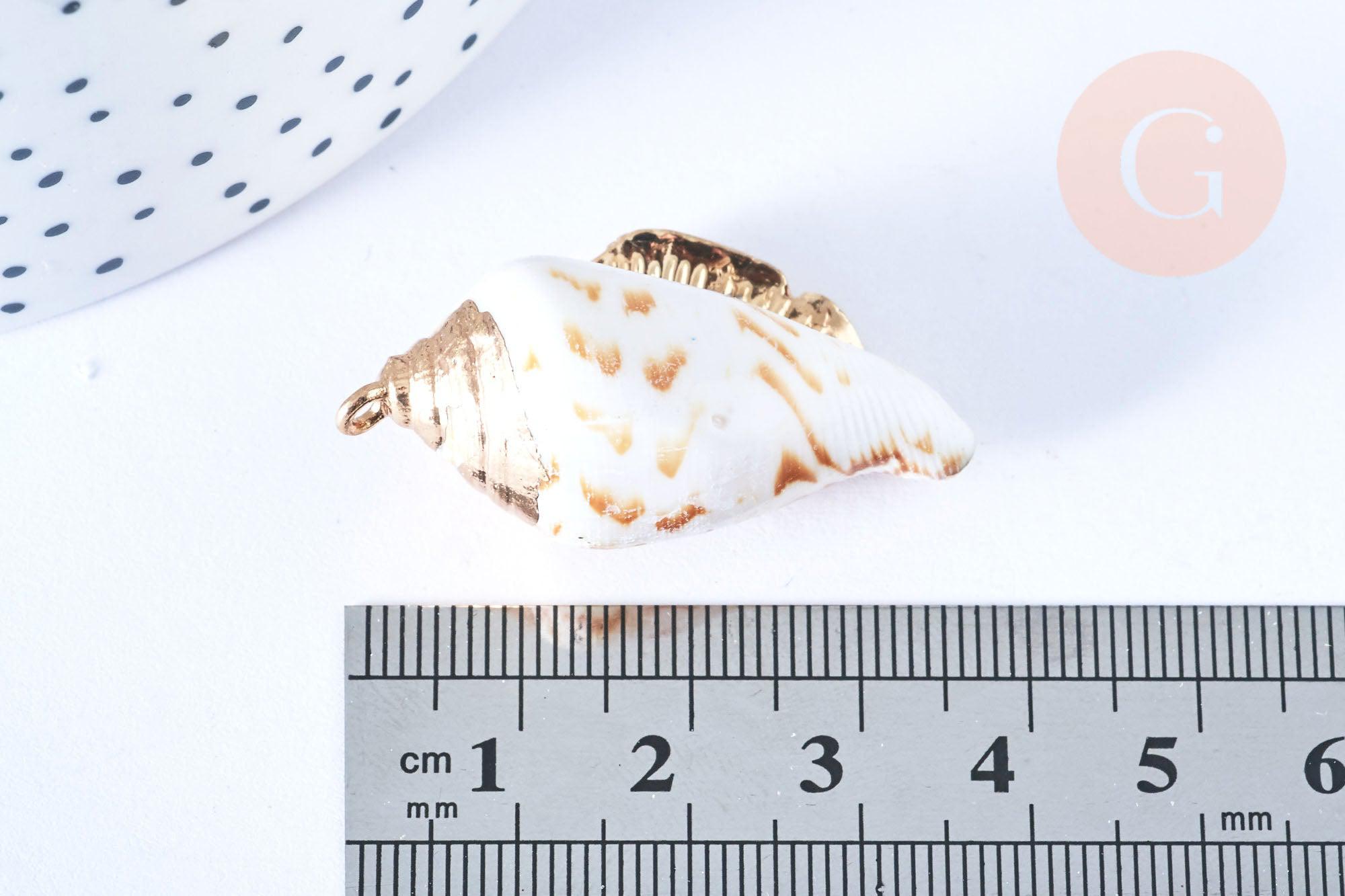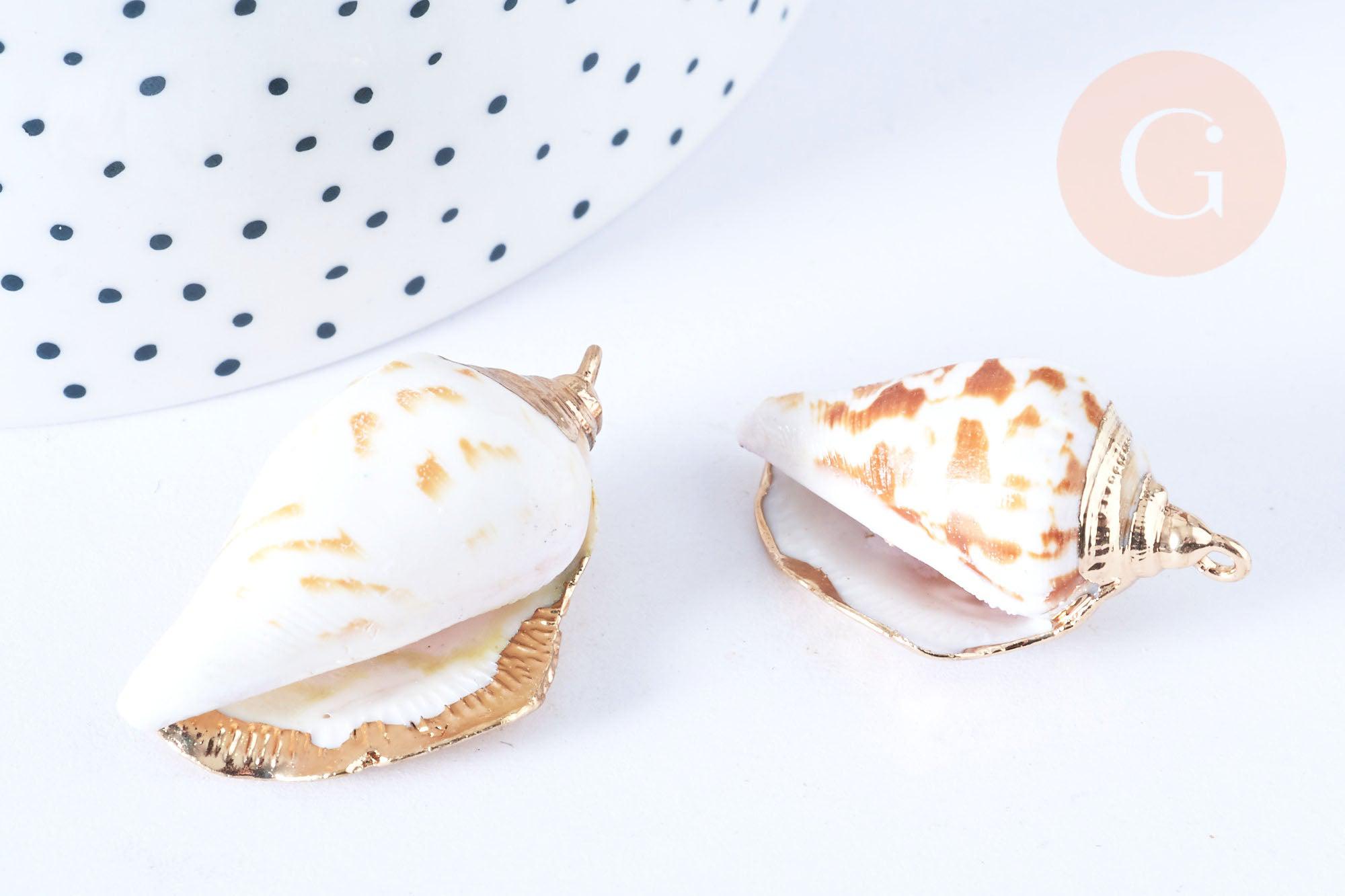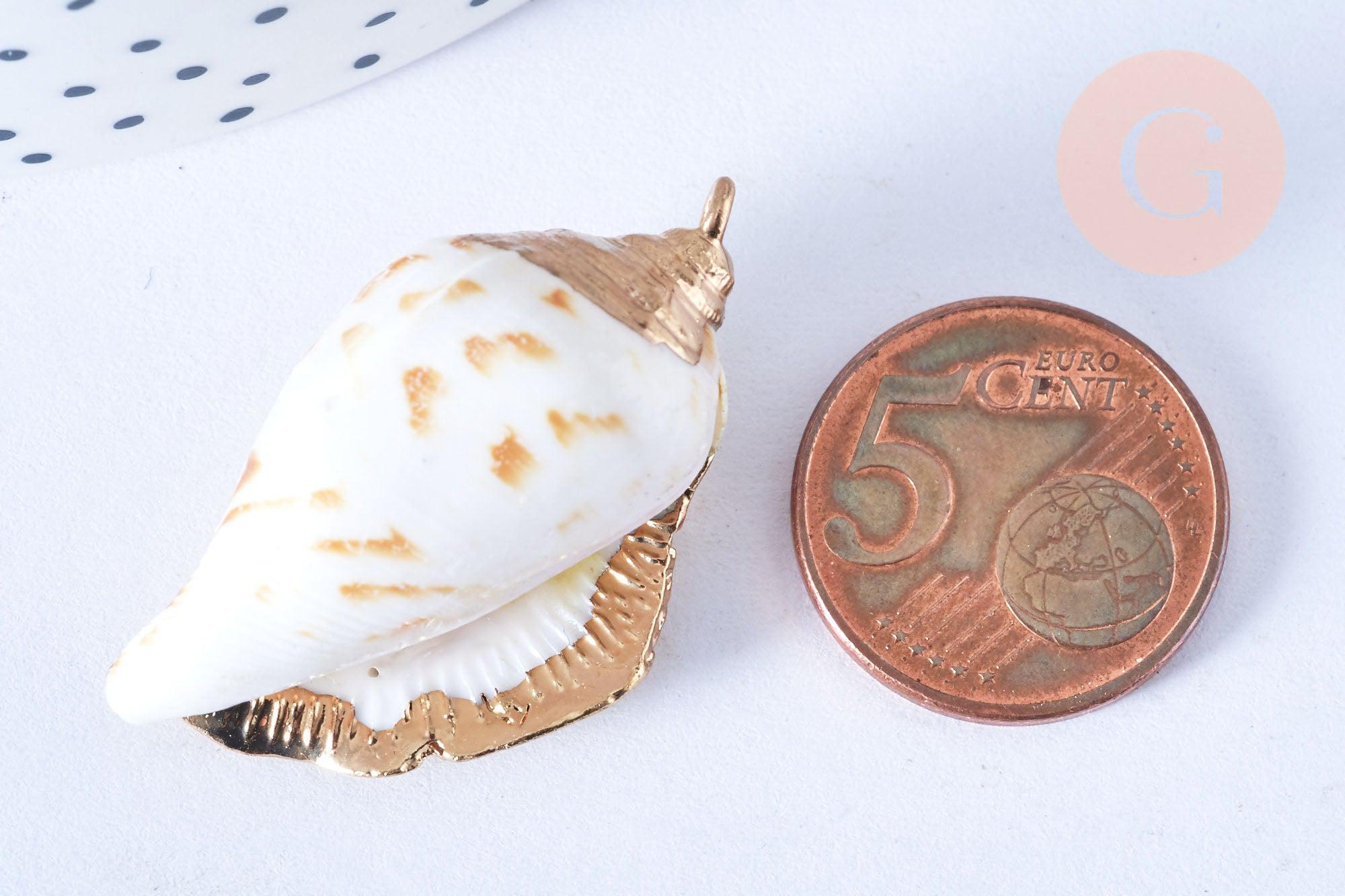 EP Natural shell pendant golden spiral 33-47mm, shell jewelry creation pendant, x1 G7161