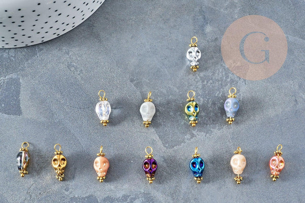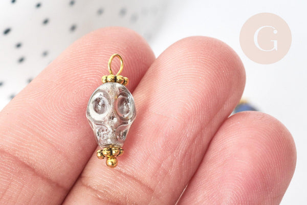 Adopt this glass skull pendant . . In addition, it is mounted on a loop in zamac gold with a daisy cap. This one will allow you to hang it wherever you want!