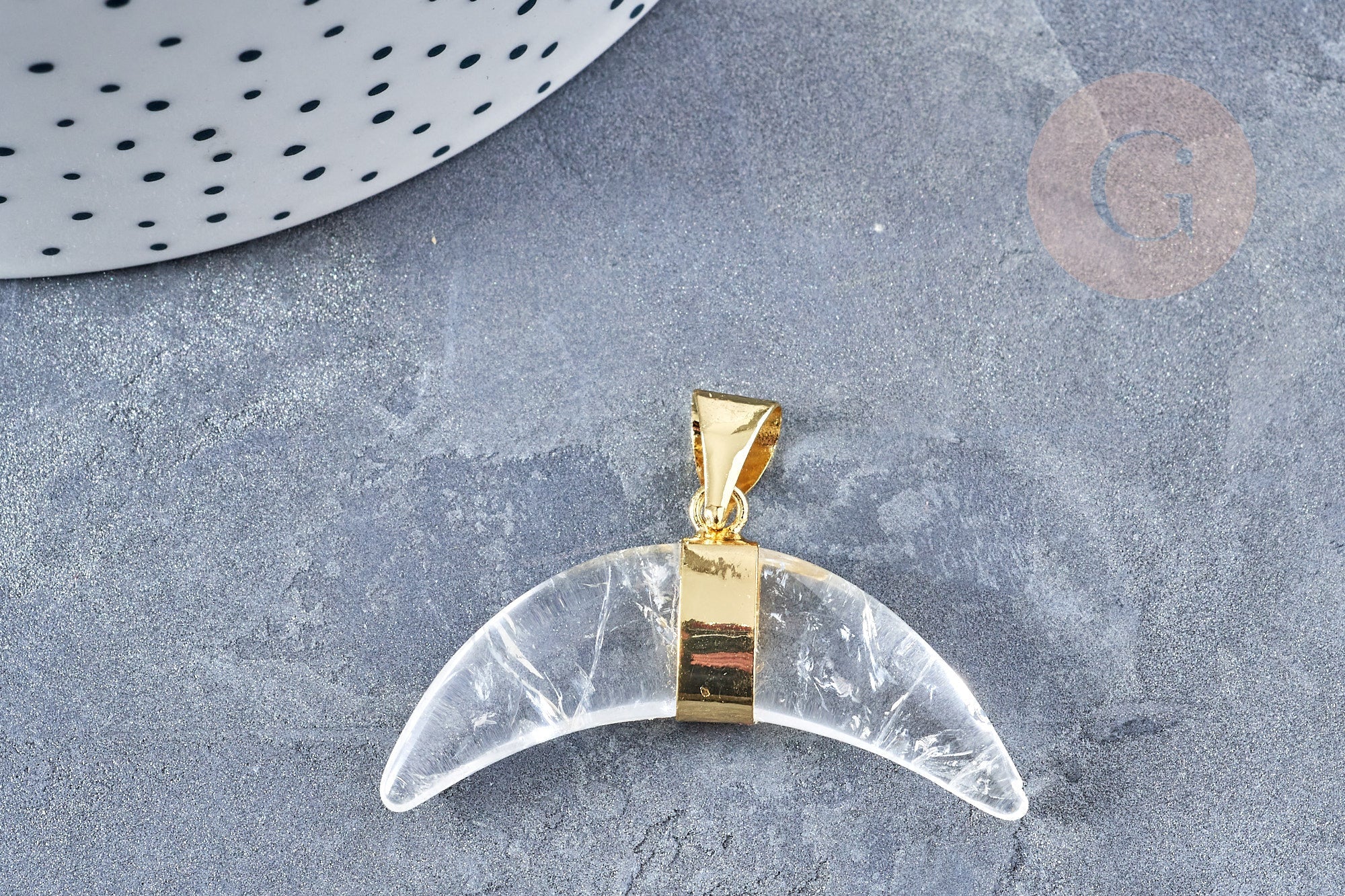 The rock crystal crescent moon pendant is a true natural gem that will allow you to personalize your jewelry creations . Mounted on a premium gold-plated brass base, this pendant is elegant and refined. Rock crystal is a powerful stone,...