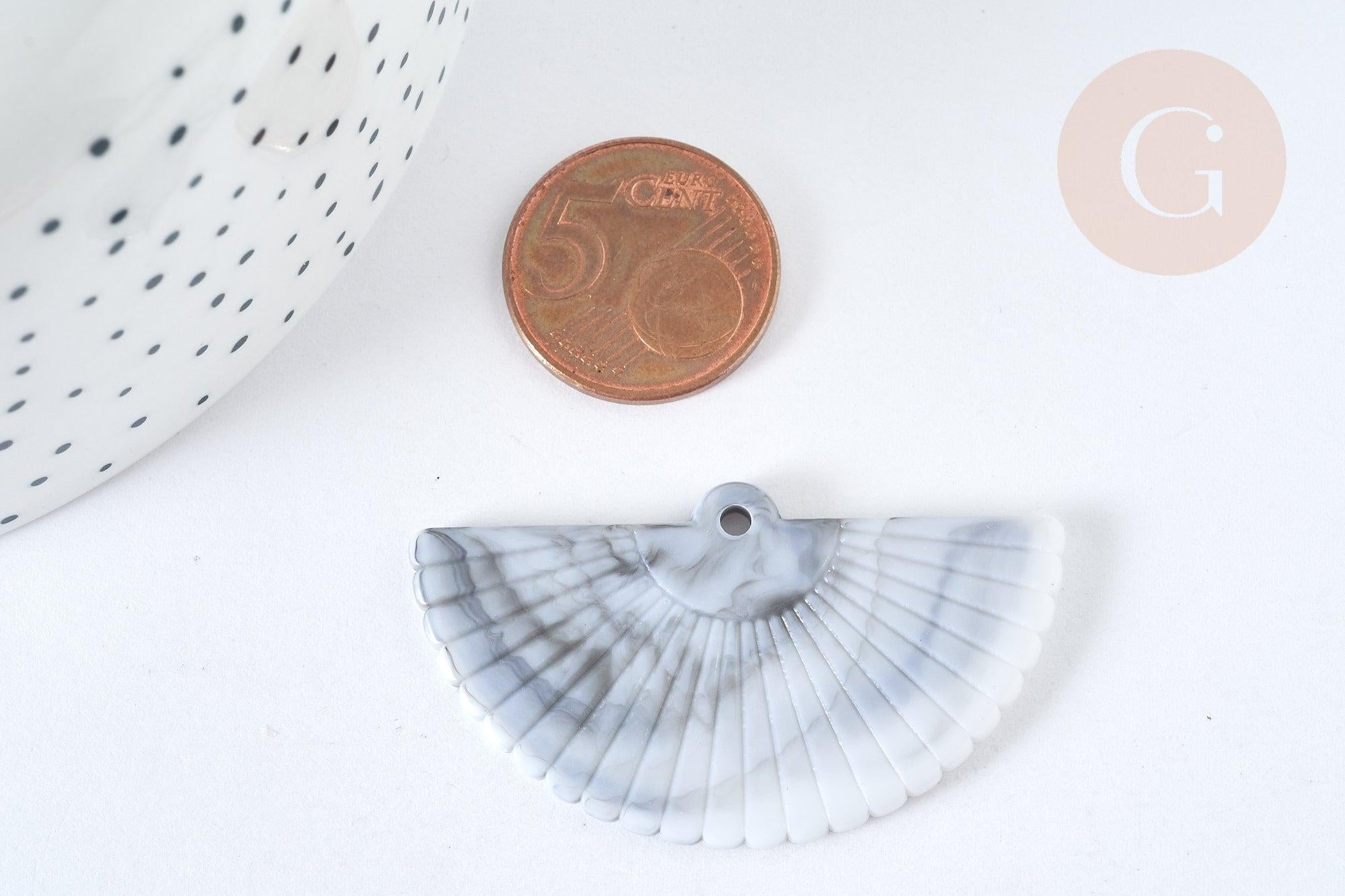 Lovely natural stone-style fan-shaped acrylic plastic pendant.
