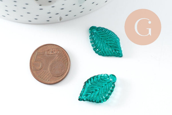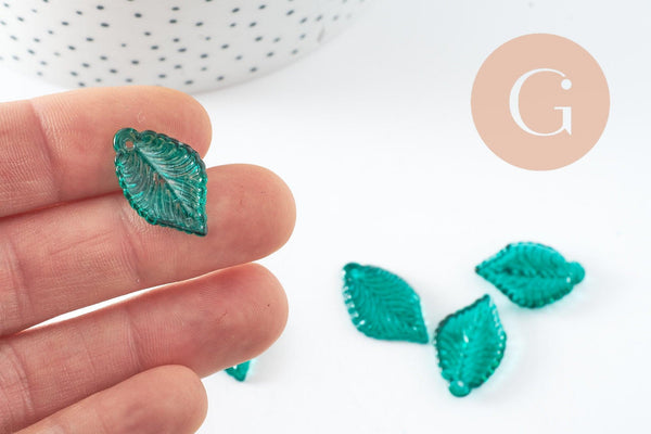Adorable transparent glass pendants in the shape of leaves, painted green