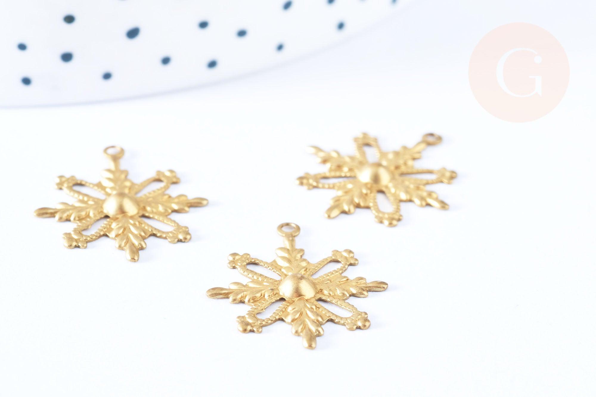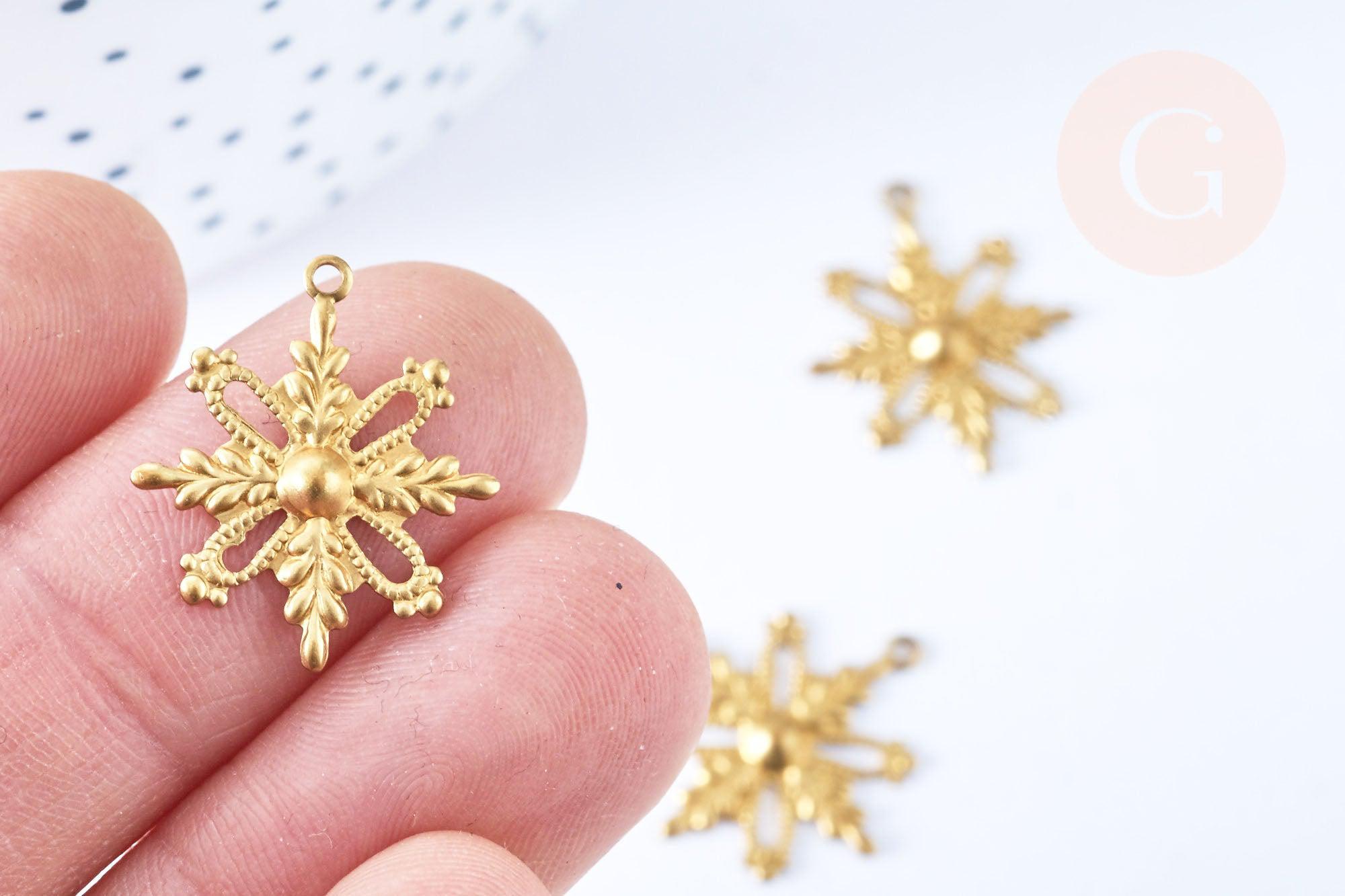 Adopt this snowflake pendant in raw brass , nickel-free. This can be gilded by a supplier either in gilded brass 3 microns , or platinum silver plated . You will make magnificent necklaces , earrings and bracelets, adopt these little...