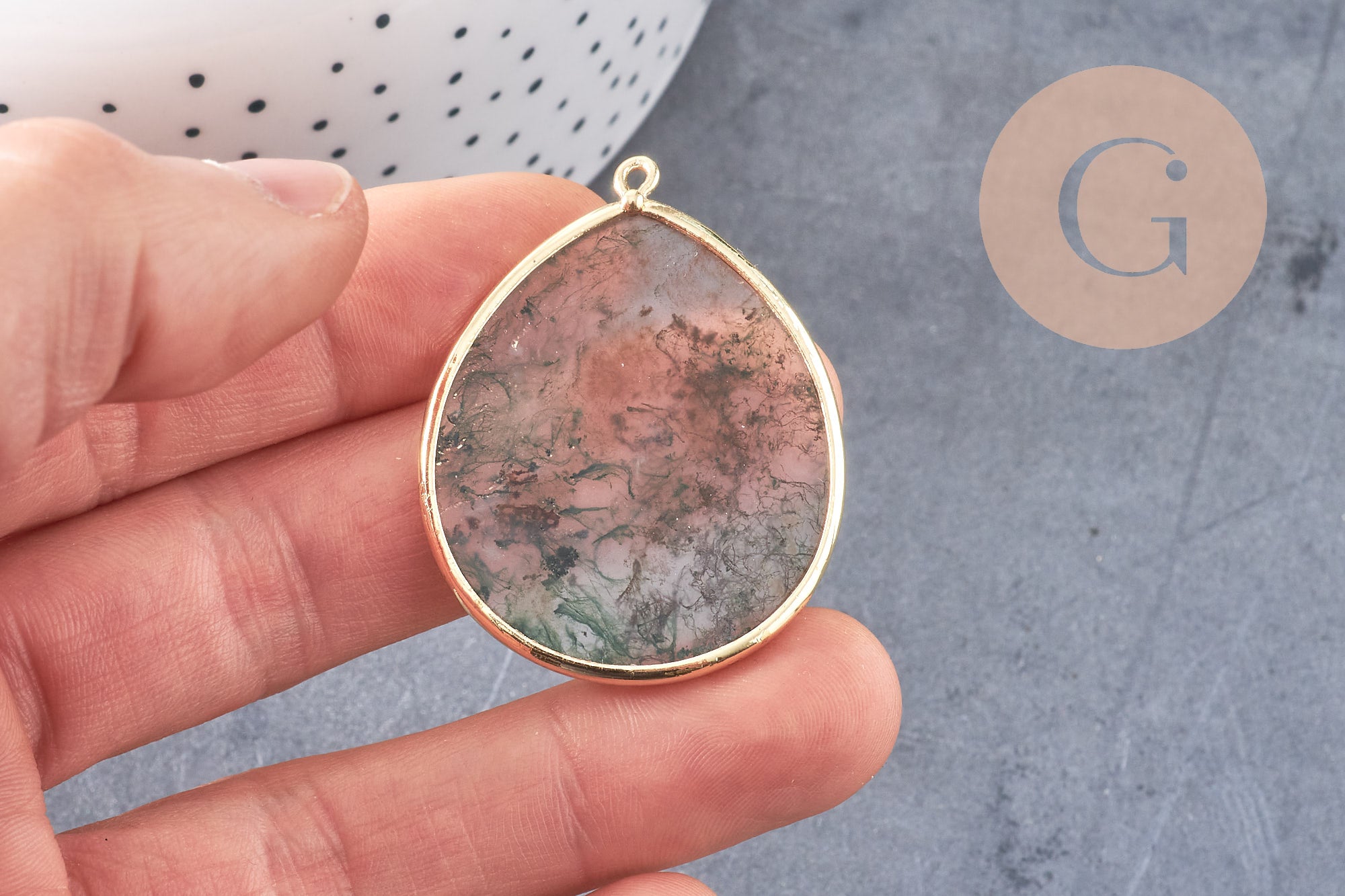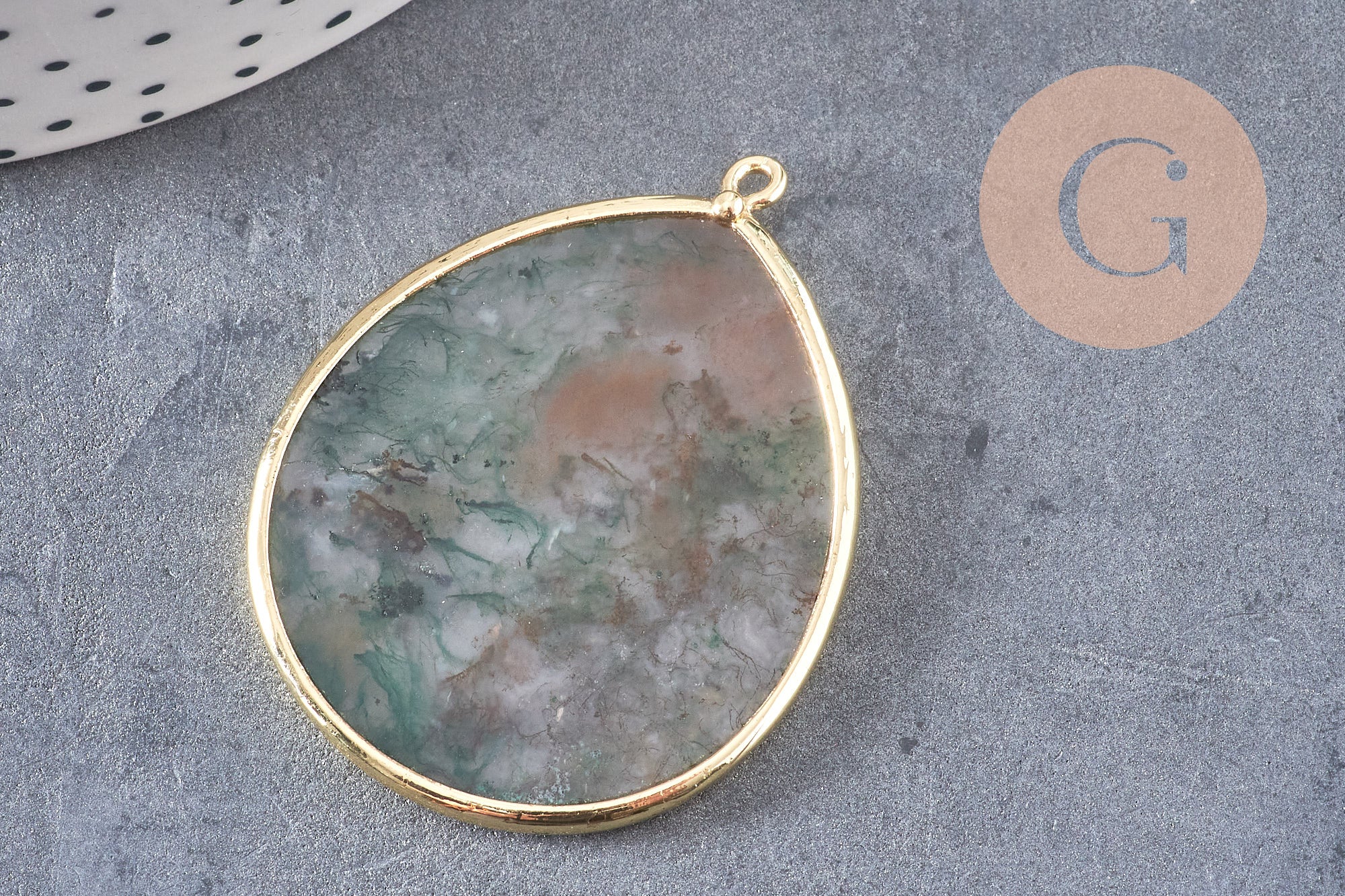 With this drop pendant in natural green moss agate , ideal for creating many DIY costume jewelry .