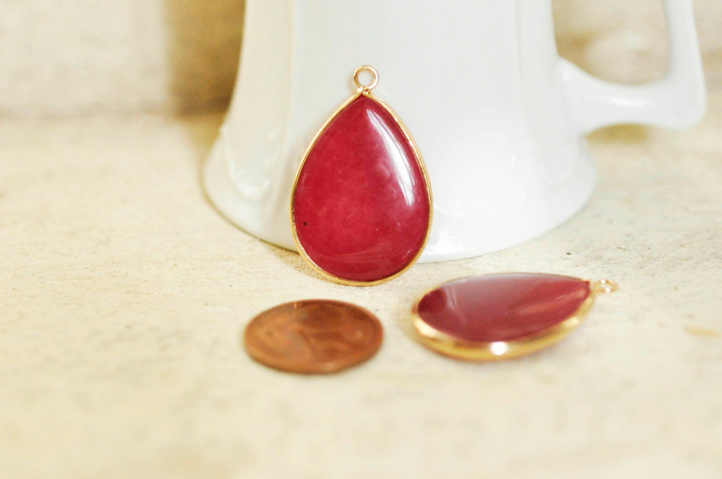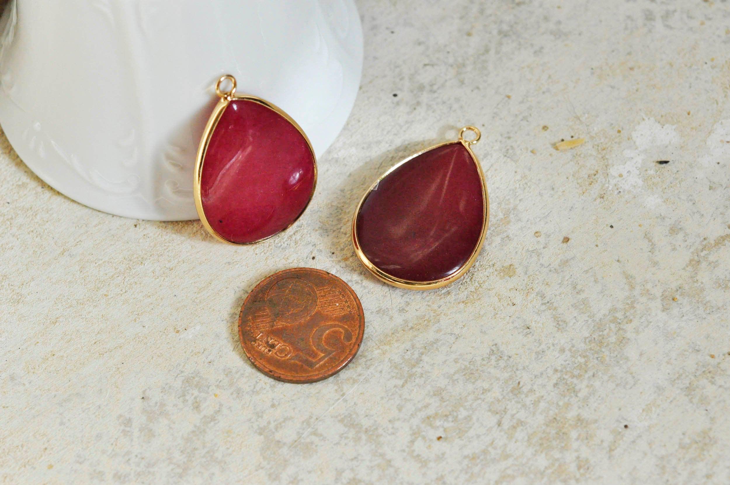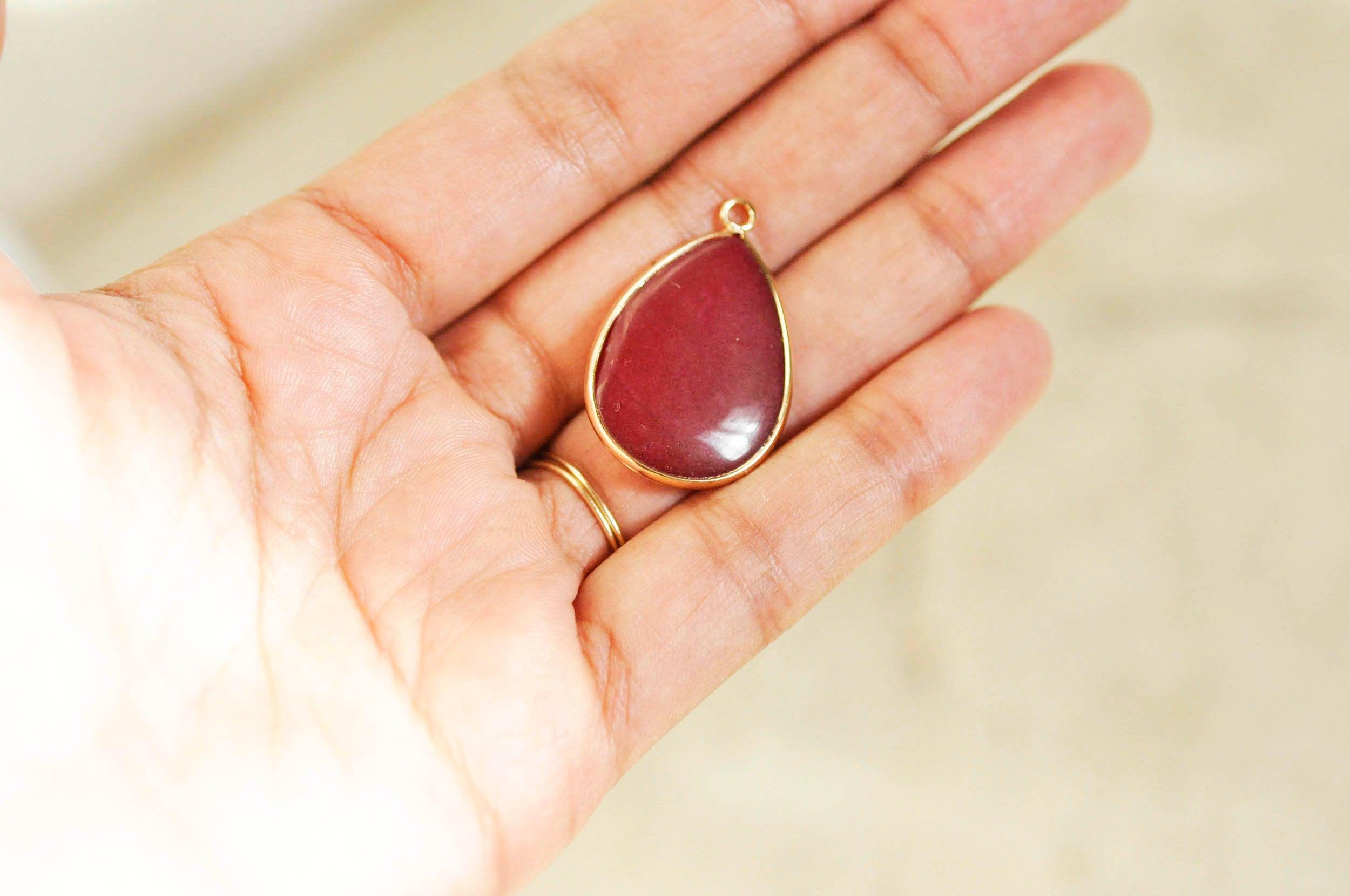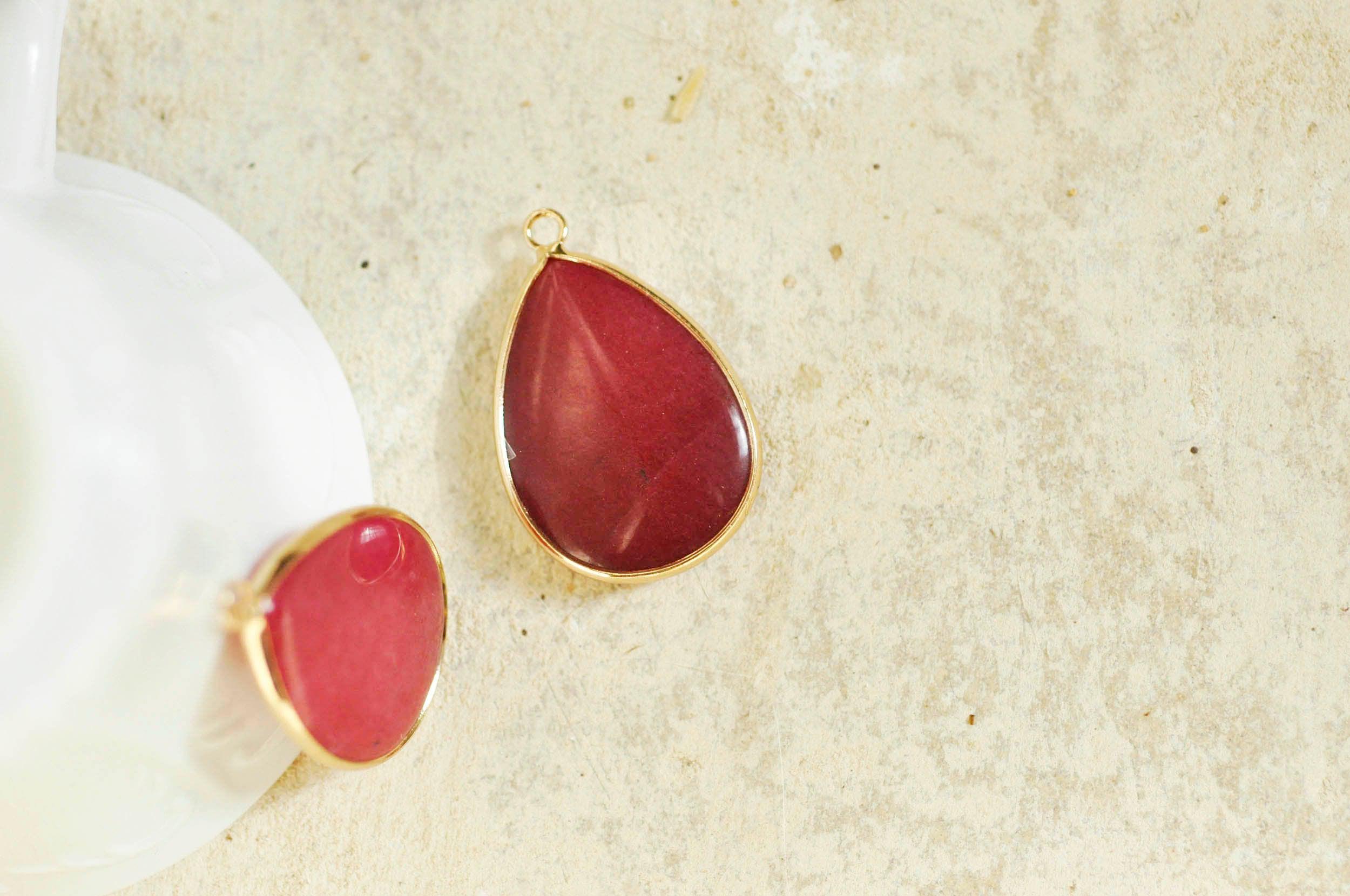 Golden burgundy jade drop pendant, creative supplies, jade pendant, stone pendant, natural jade, jade pendant, 35mm Fall for this natural jade pendant tinted in burgundy with its golden support. You can create magnificent necklaces using this very trendy pendant. The...