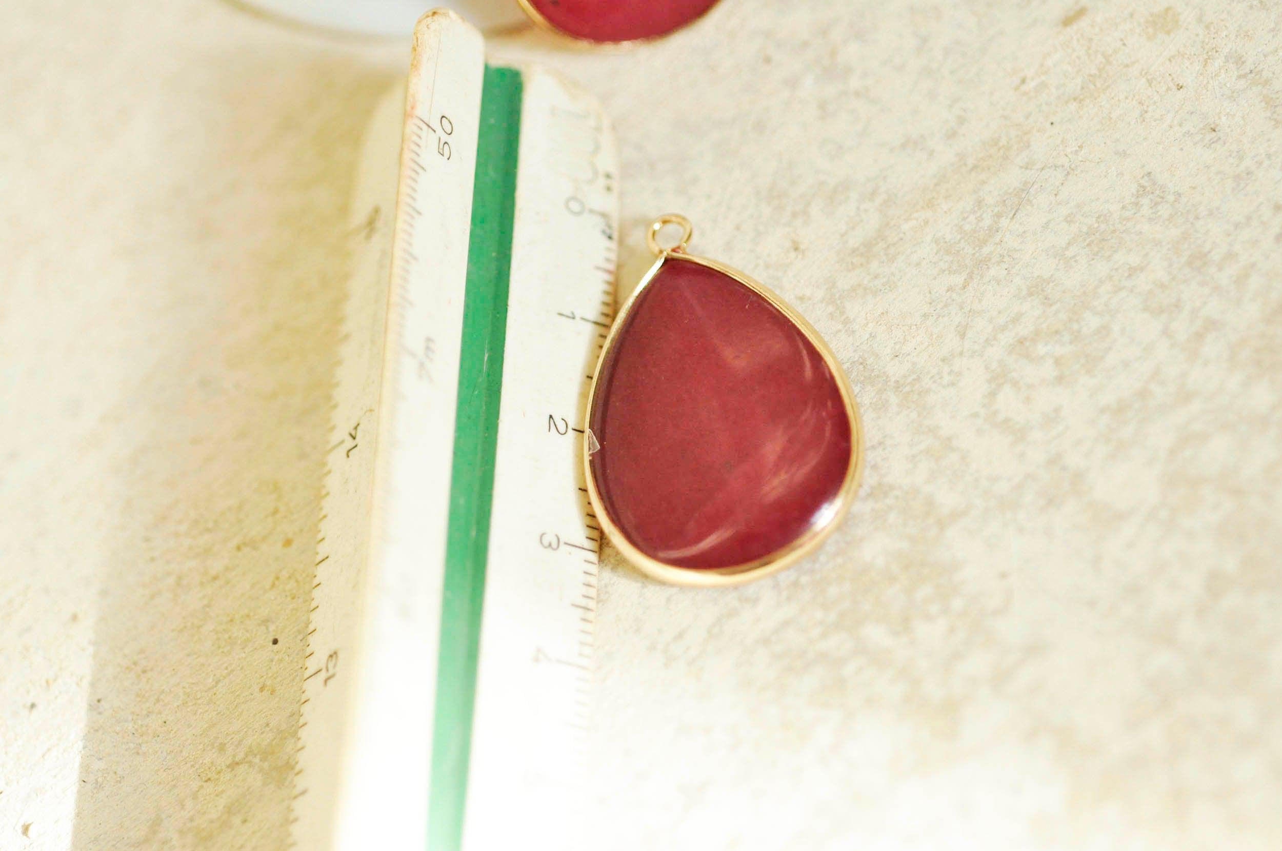 EP Natural jade drop pendant burgundy gold 35mm G1349