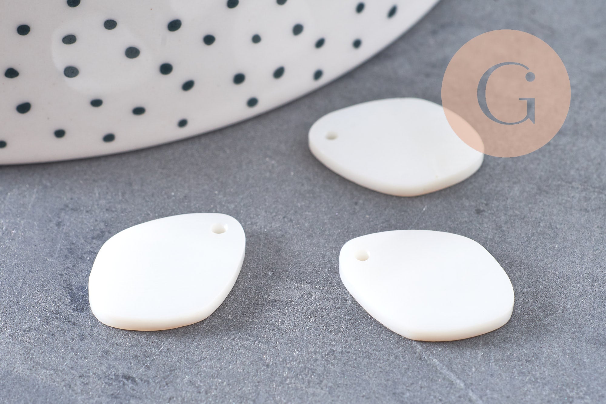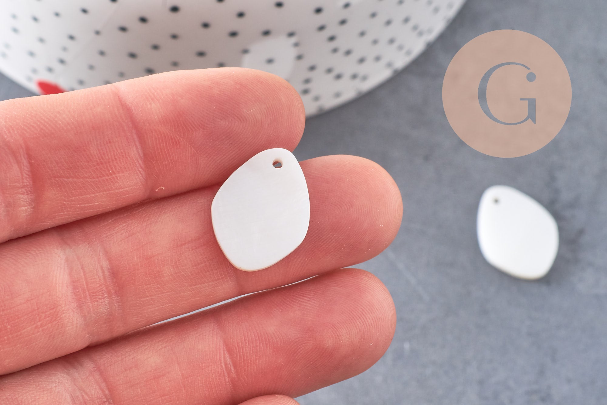 EP-Natural 15mm white mother-of-pearl oval drop pendant, x 10 G5902