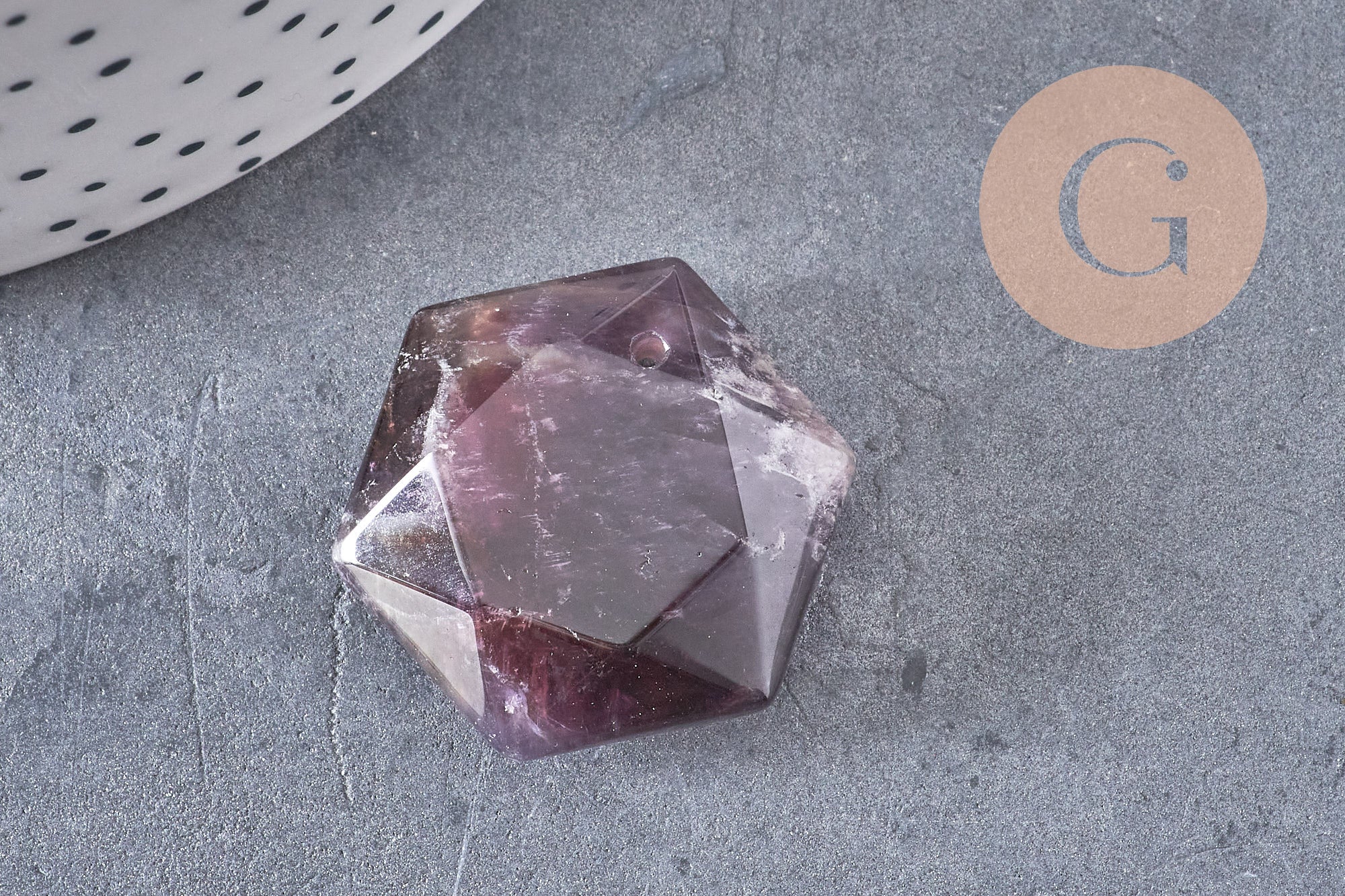 Pendentif hexagone améthyste violette, pendentif pierre, améthyste naturelle, 29mm x1 (G0587)