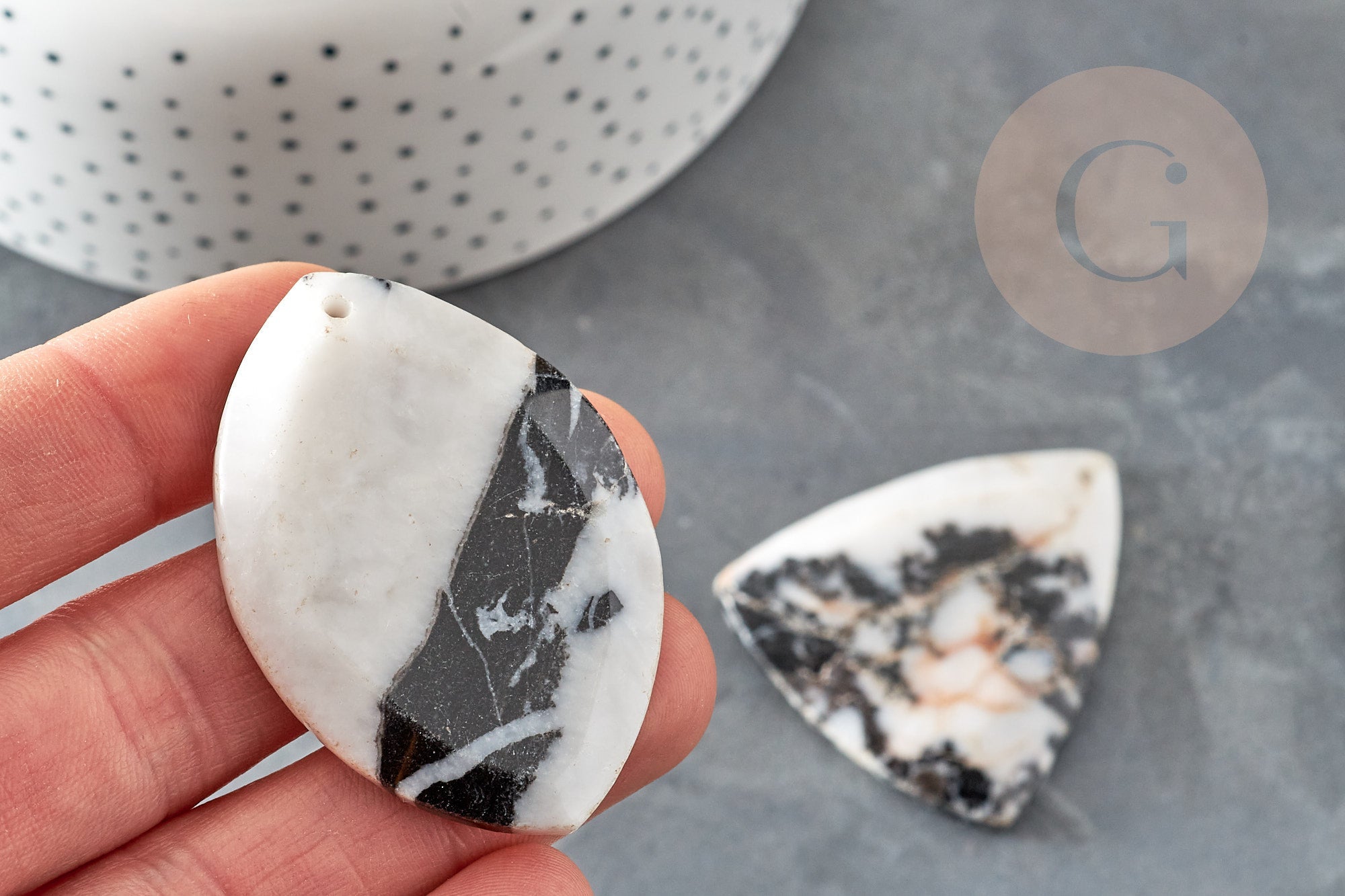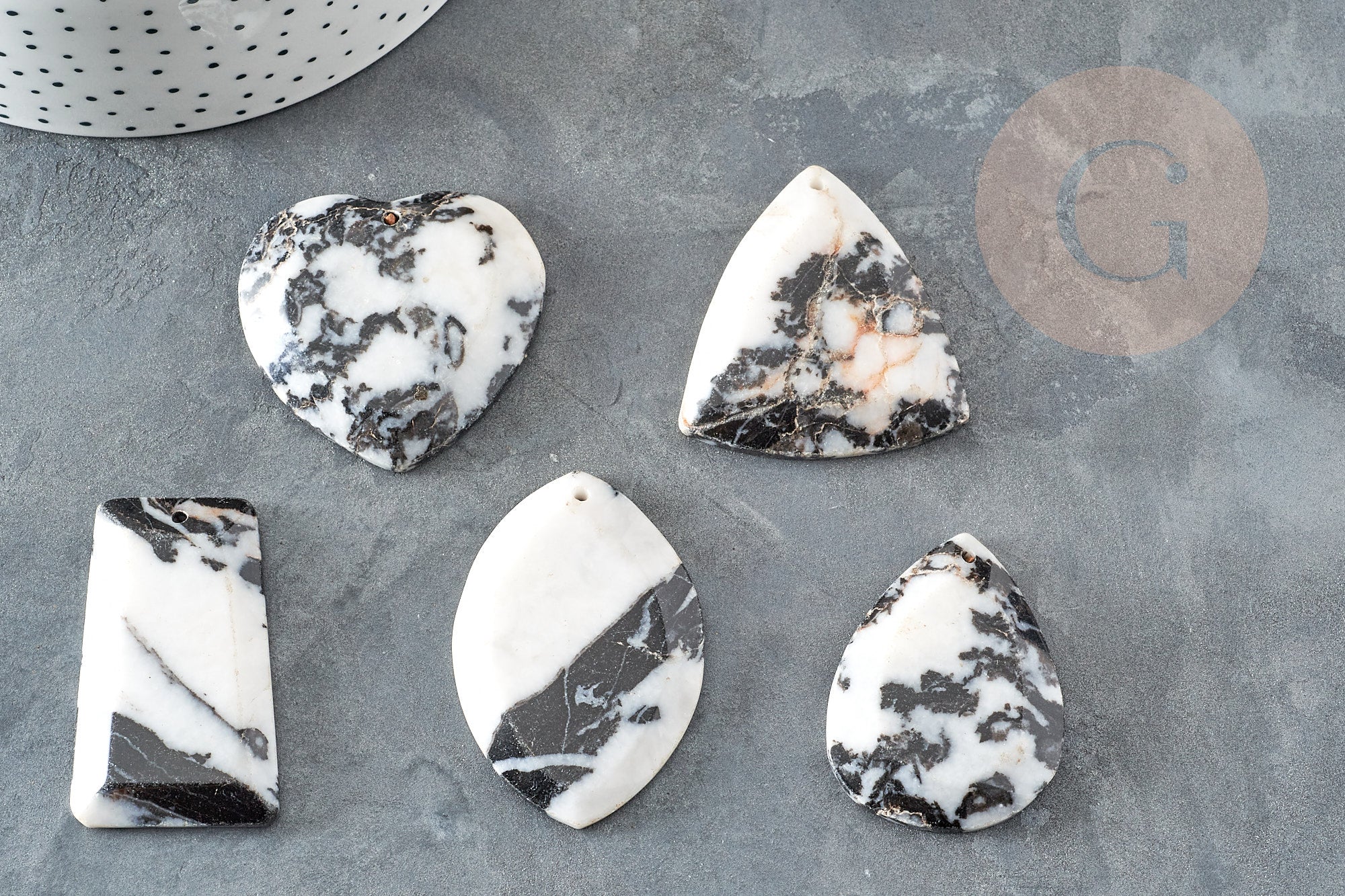 Fall for one of these natural gray and white zebra jasper pendants