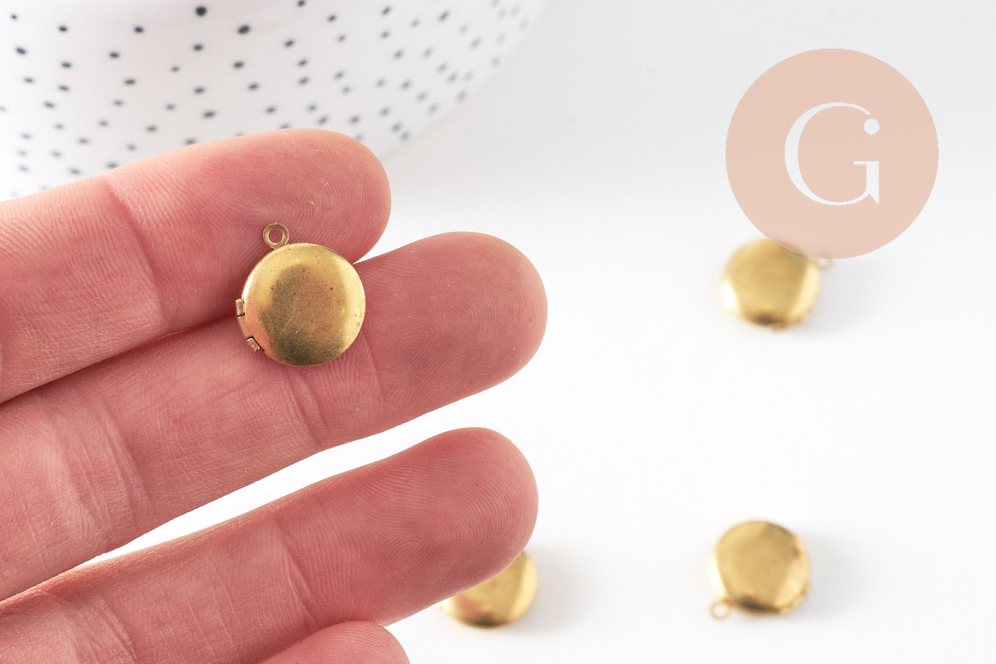 Round locket pendant raw brass medallion, creative supplies, Vintage medallion, necklace creation, raw brass supplies, 12mm, lot 2