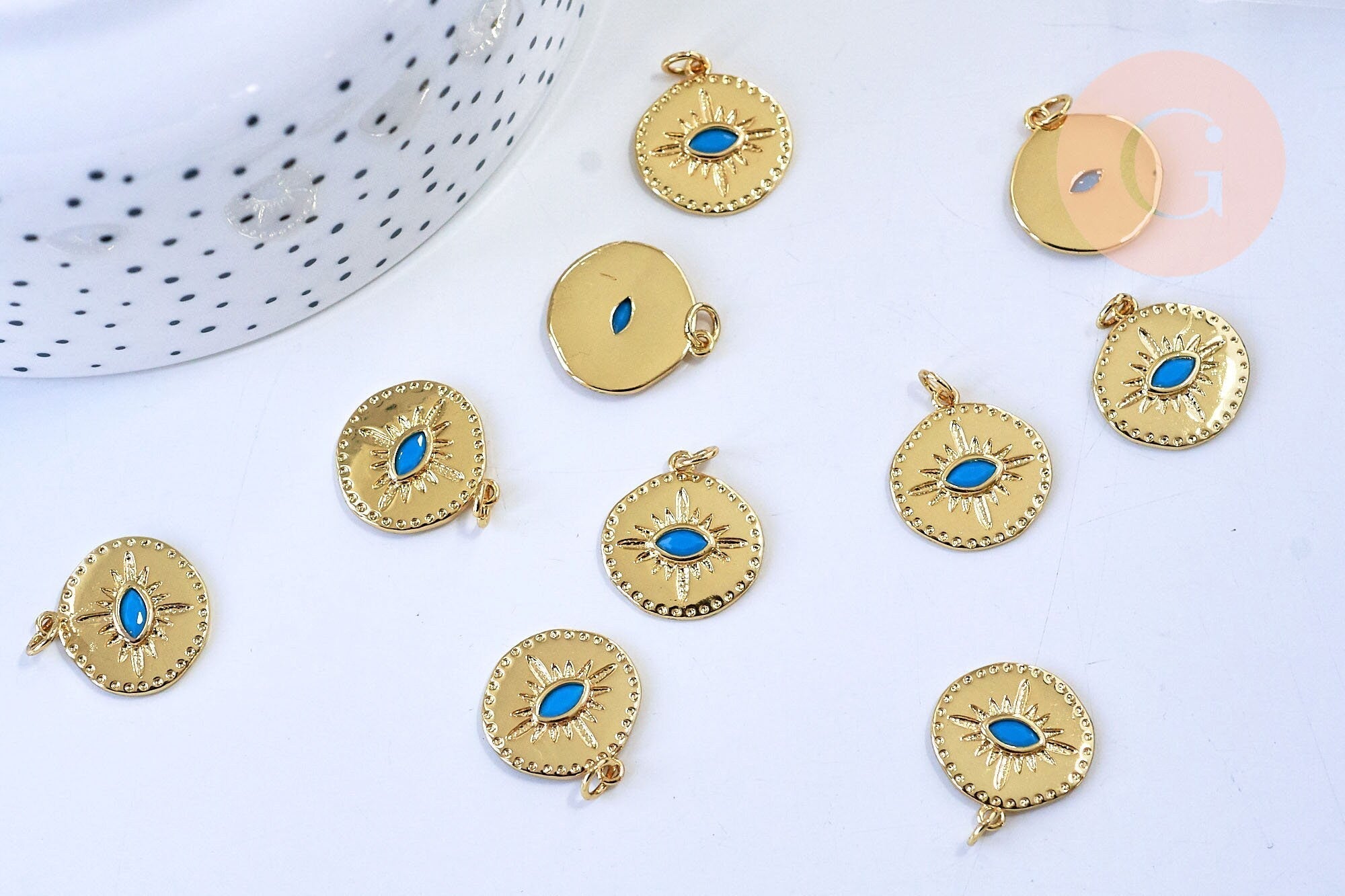 Use this golden sun medal pendant against the evil eye, gilded and enameled with colored resin for your DIY jewelry creations.
