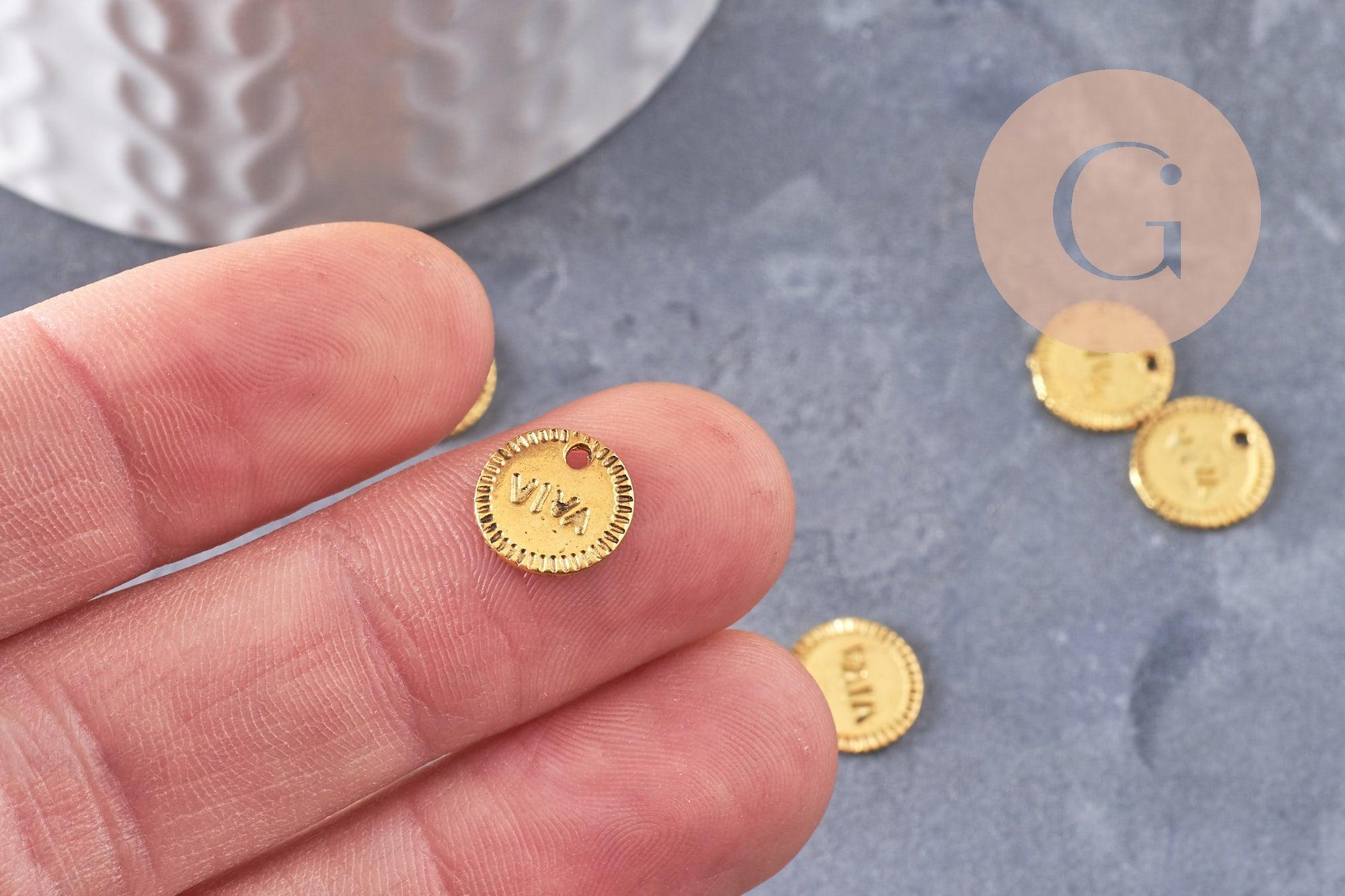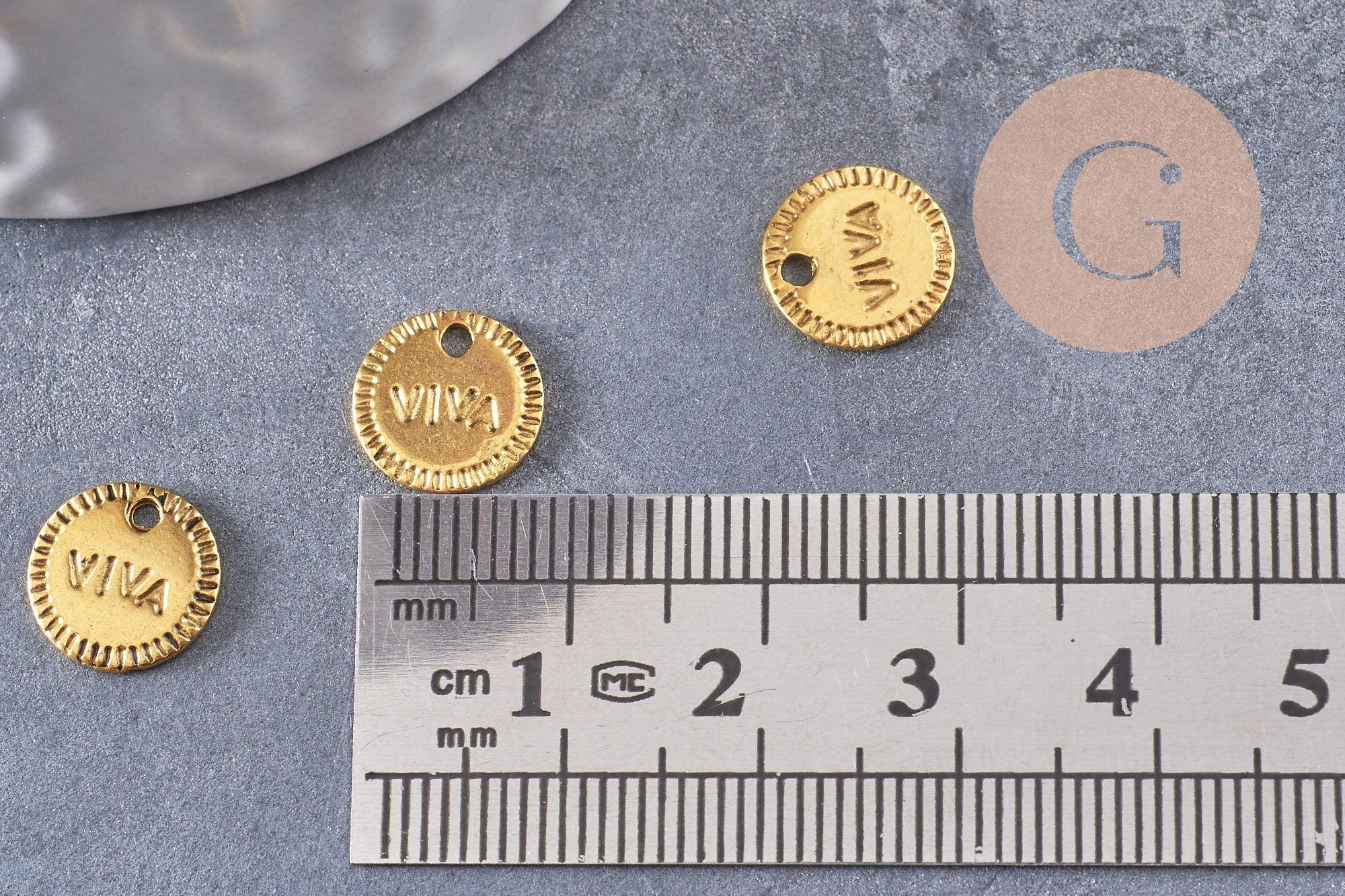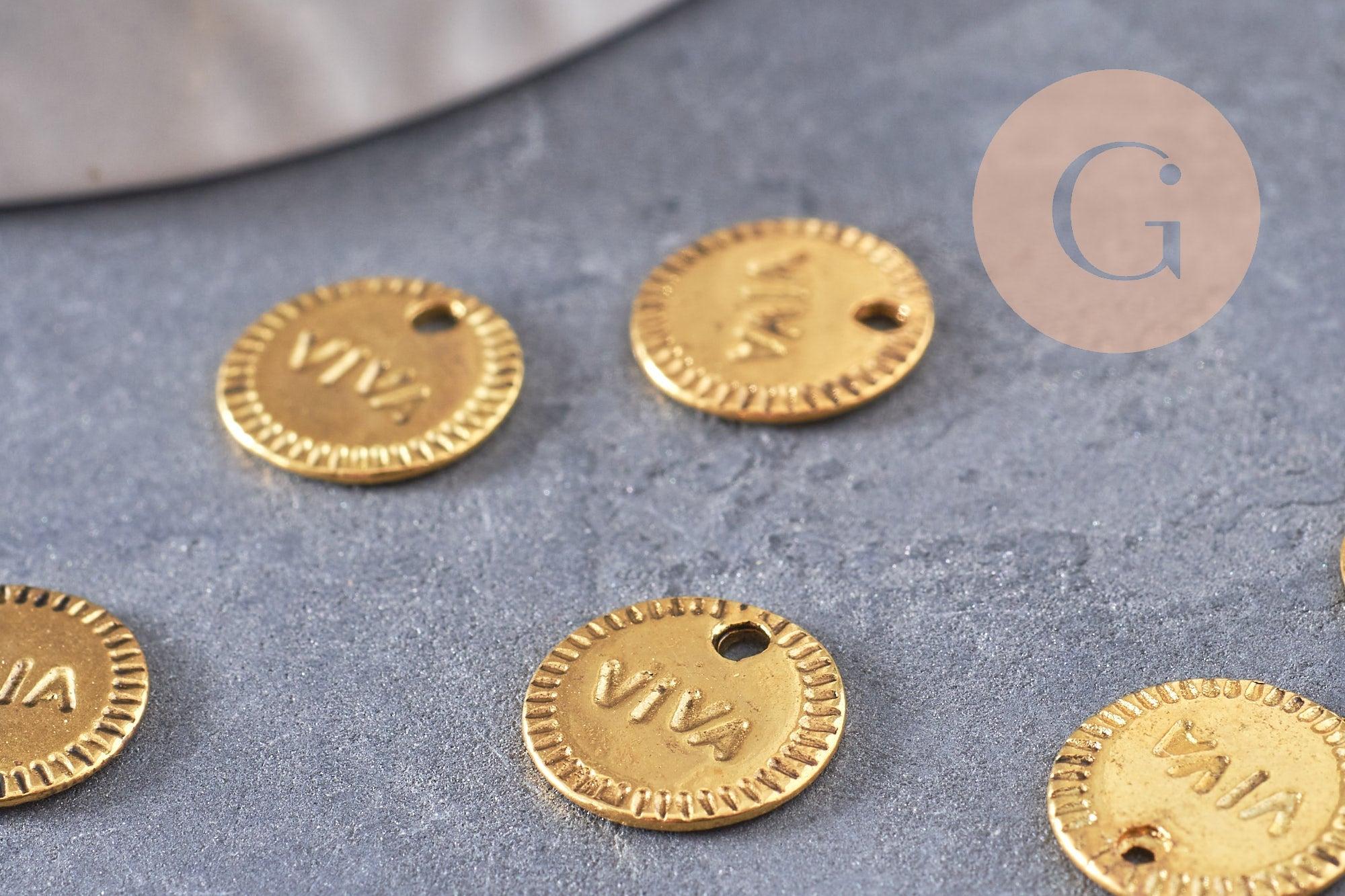Add a symbolic and positive touch to your creations with this round "Viva" medal pendant in gold-plated zamac . Perfect for personalizing your jewelry or accessories, this charming little medal will breathe energy into your DIY creations!