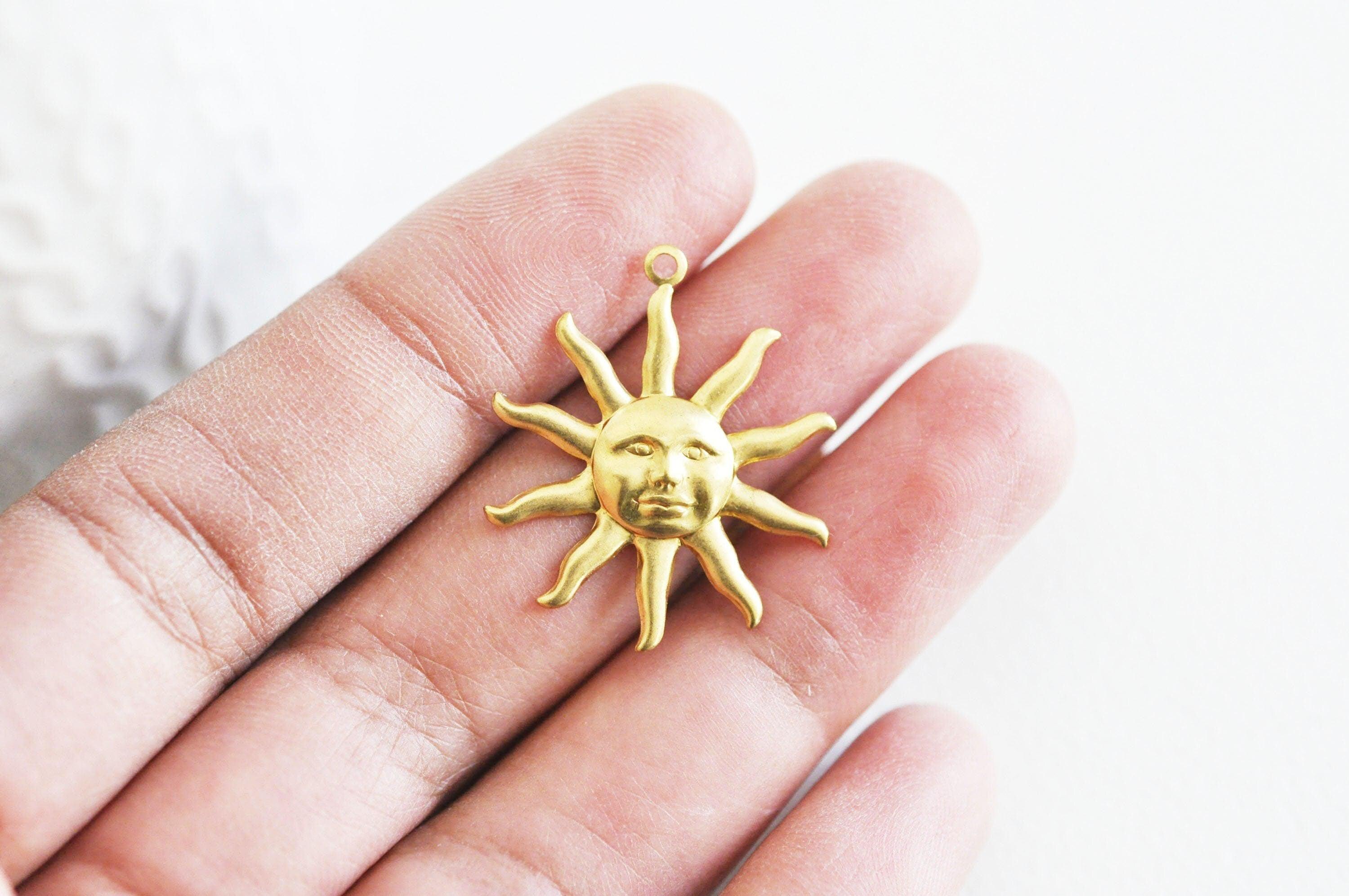 A raw brass sun pendant, ideal for making your earrings, necklaces and collars Dimension: 24mm Sold in packs of 2 A short brass cleaning guide will be provided to you with the purchase of this product. A product that you...
