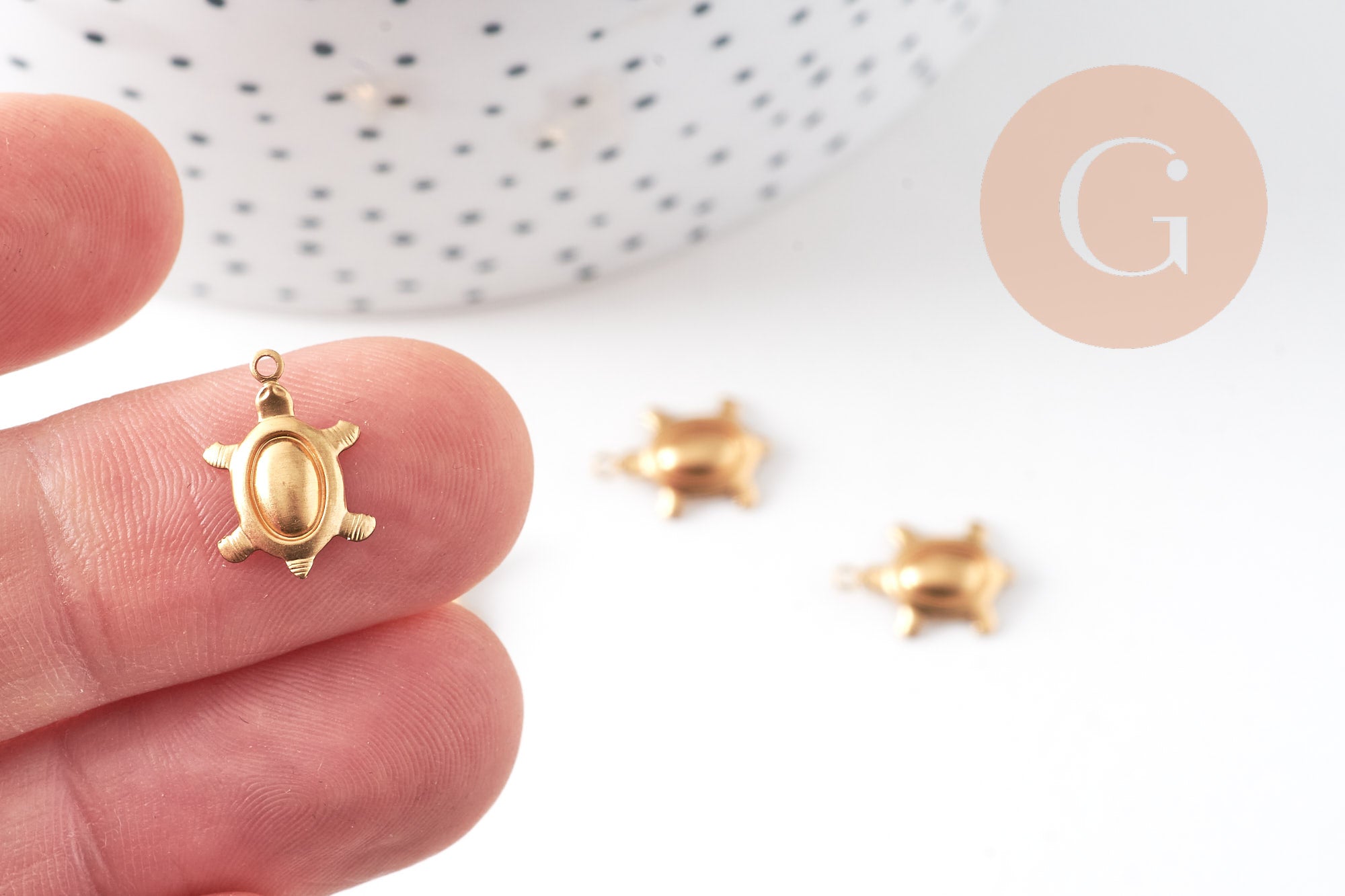 Pendentif petite tortue laiton brut, sans nickel, pendentif tortue, apprêt laiton,1.3mm, x1 G1916