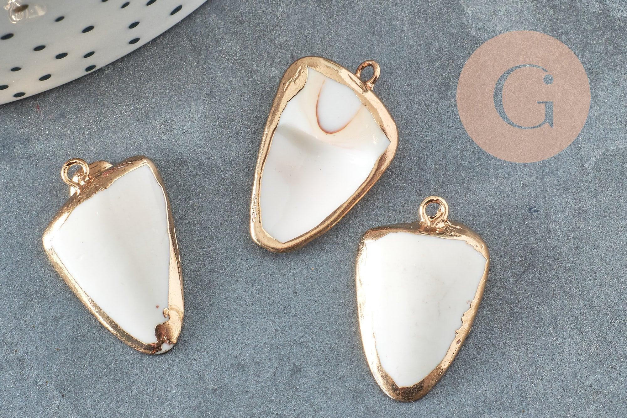 White shell tip pendant in gold-plated brass 30-40mm, x1 (G7096)