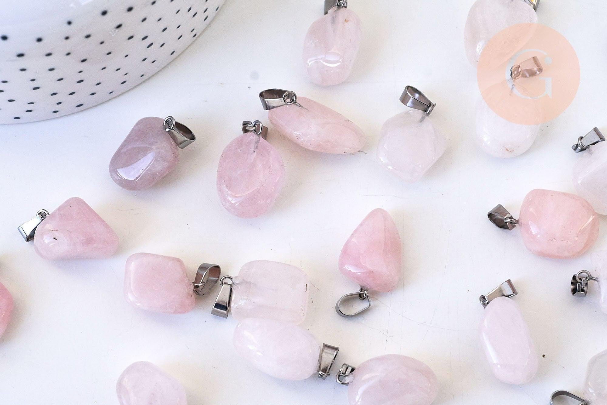 With this magnificent tumbled rose quartz pendant , mounted on a platinum stainless steel support, add a touch of softness and tenderness to your look