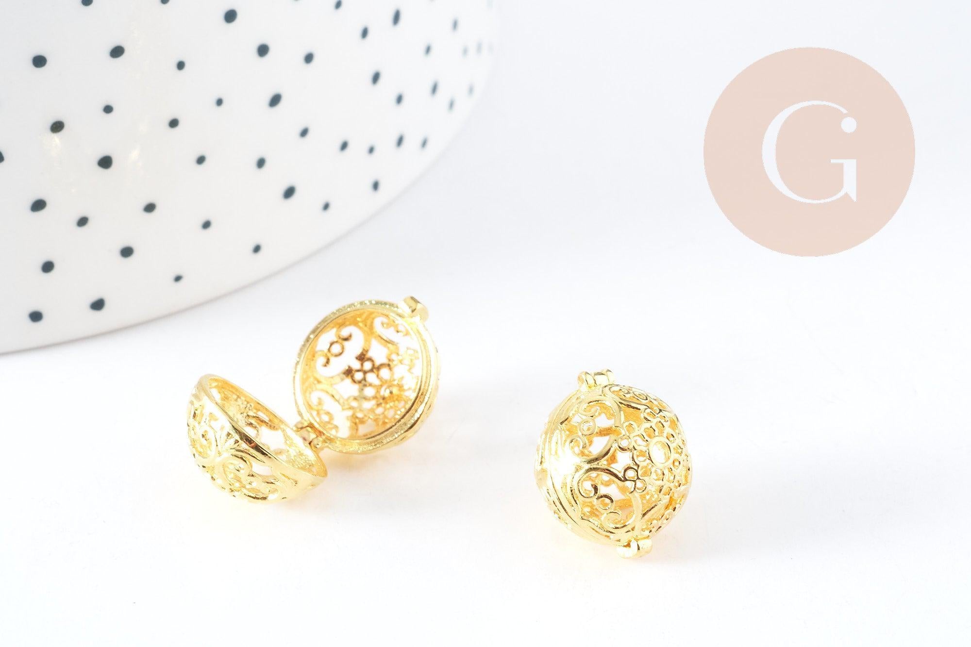 Adopt this Bola Cage Pendant in filigree gilded brass . This one will be the ideal element for the creation of several costume jewelry .