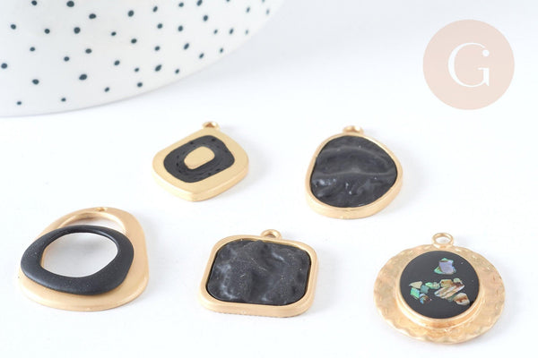 Make beautiful costume jewelry with this geometric pendant which is made of gold metal and black enamel.