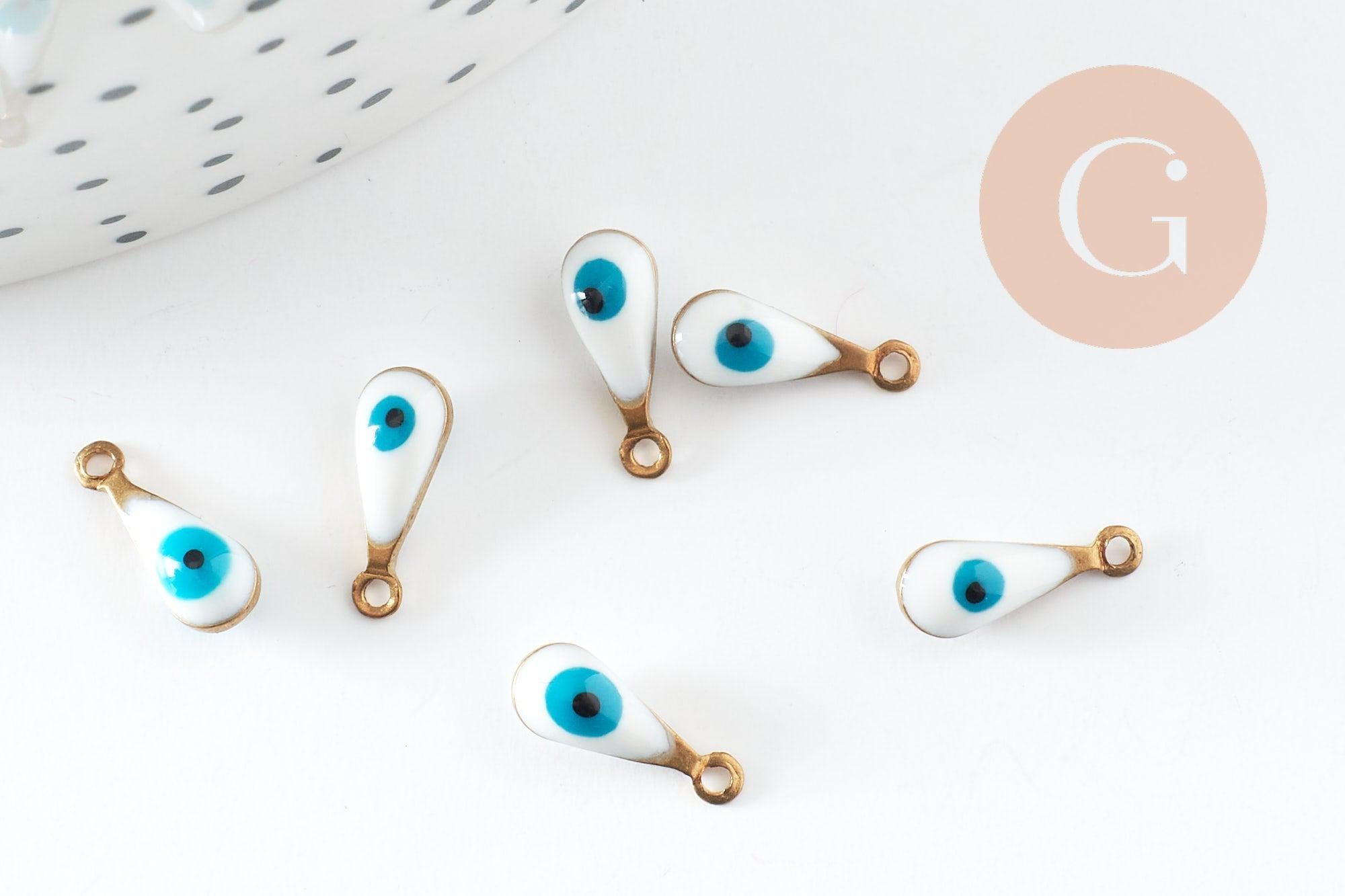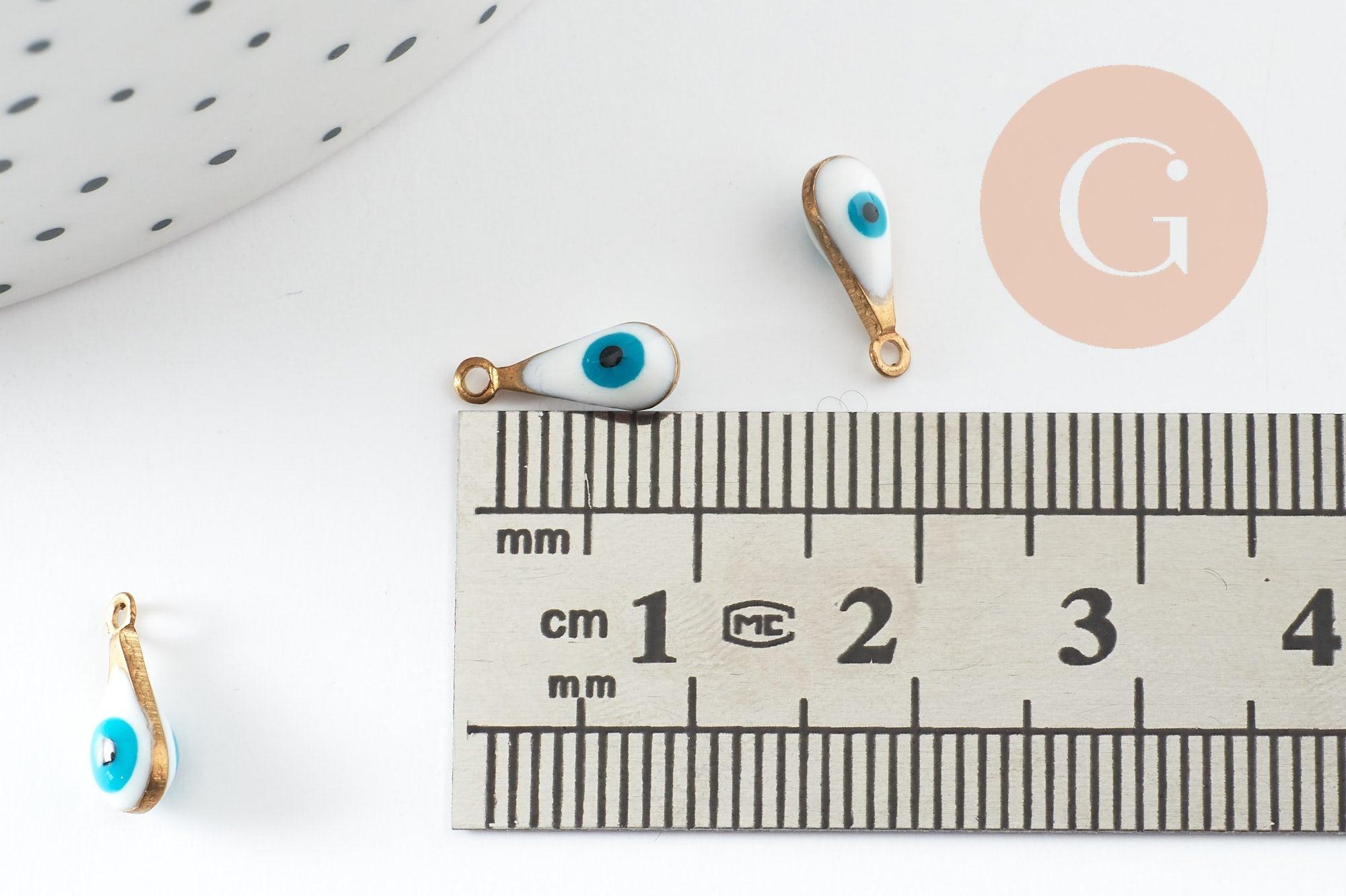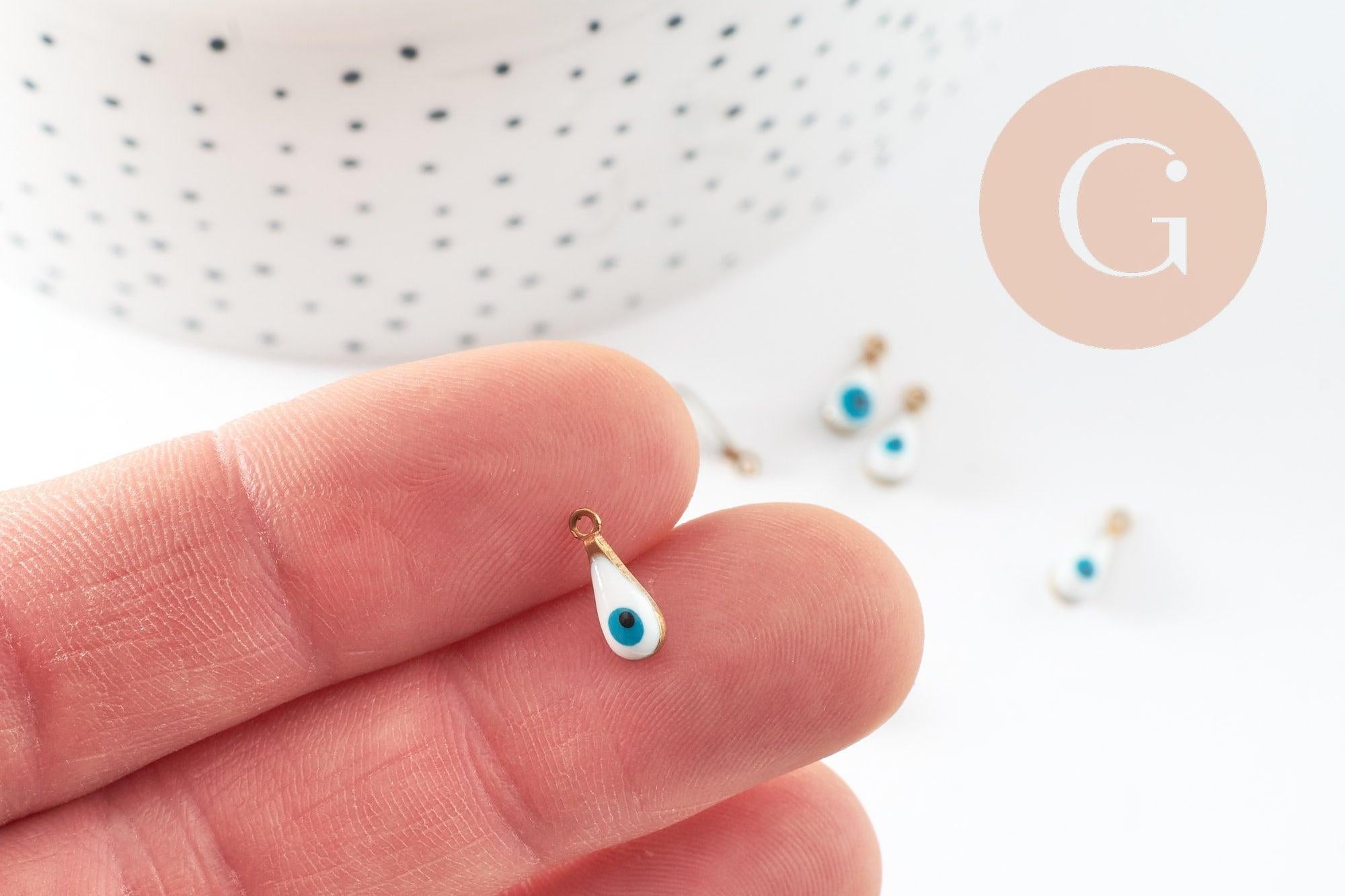 Gold pendants, white enamel drop, evil eye, gold-plated brass, lucky pendant, jewelry creation, 9mm, x10 G3330