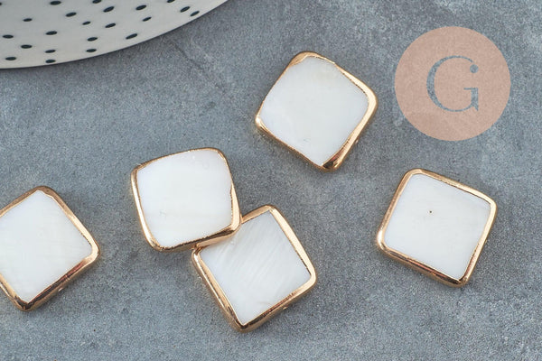 Add a natural and luminous touch to your creations with these square white mother-of-pearl beads mounted on a gold-plated base. Their elegant shape and refined finish make them ideal for delicate and sophisticated jewelry.