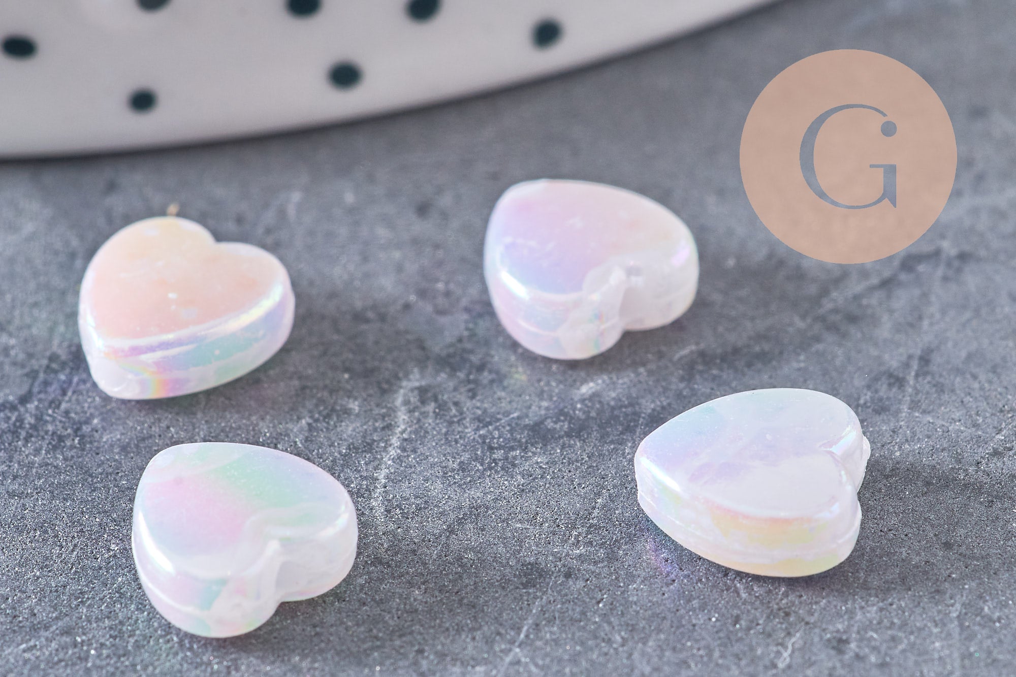 Add a soft and romantic touch to your creations with these iridescent white acrylic heart-shaped beads . Their pearly, rainbow-hued reflections catch the light and enhance your DIY jewelry with a tender and delicate note.