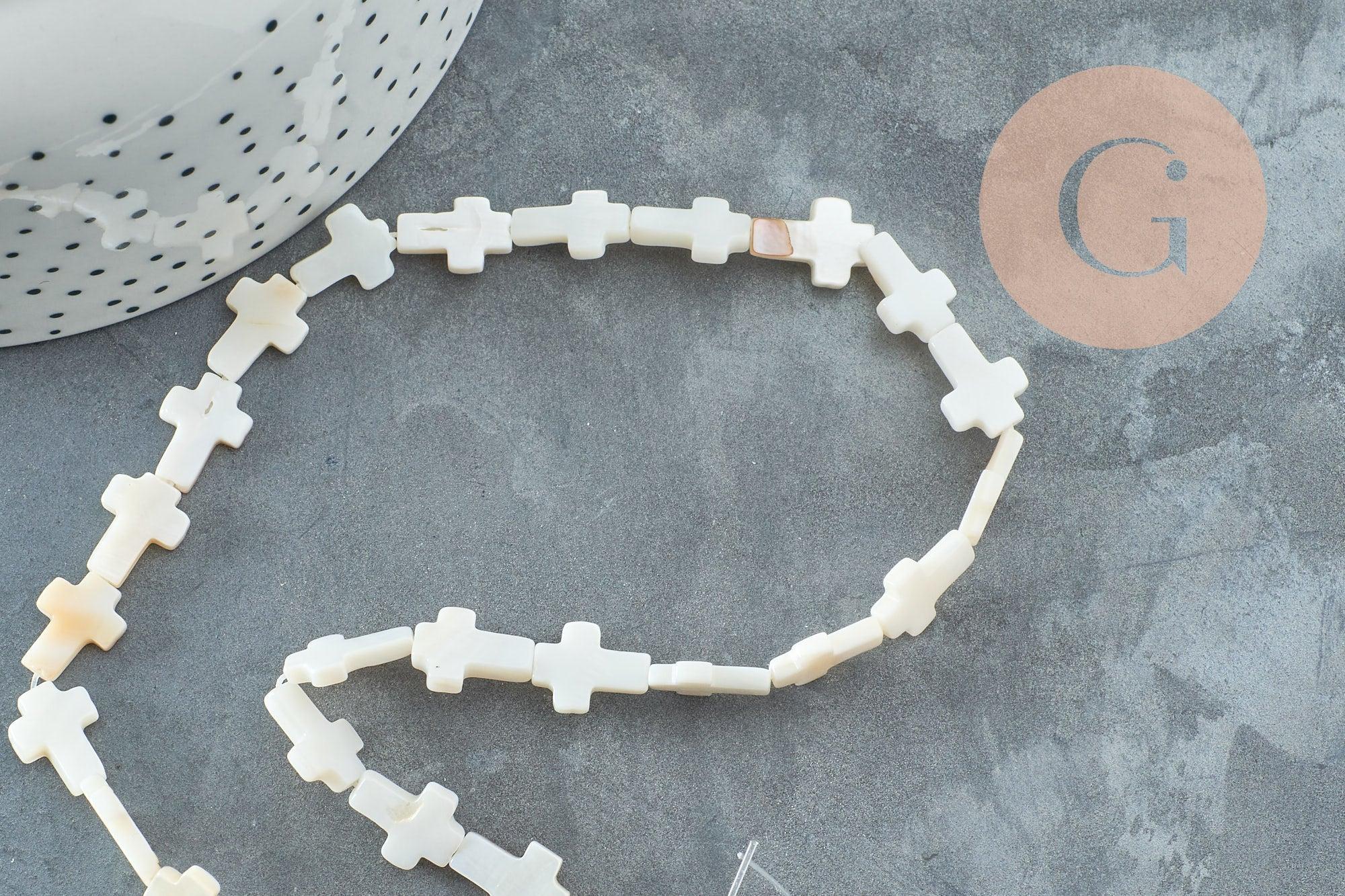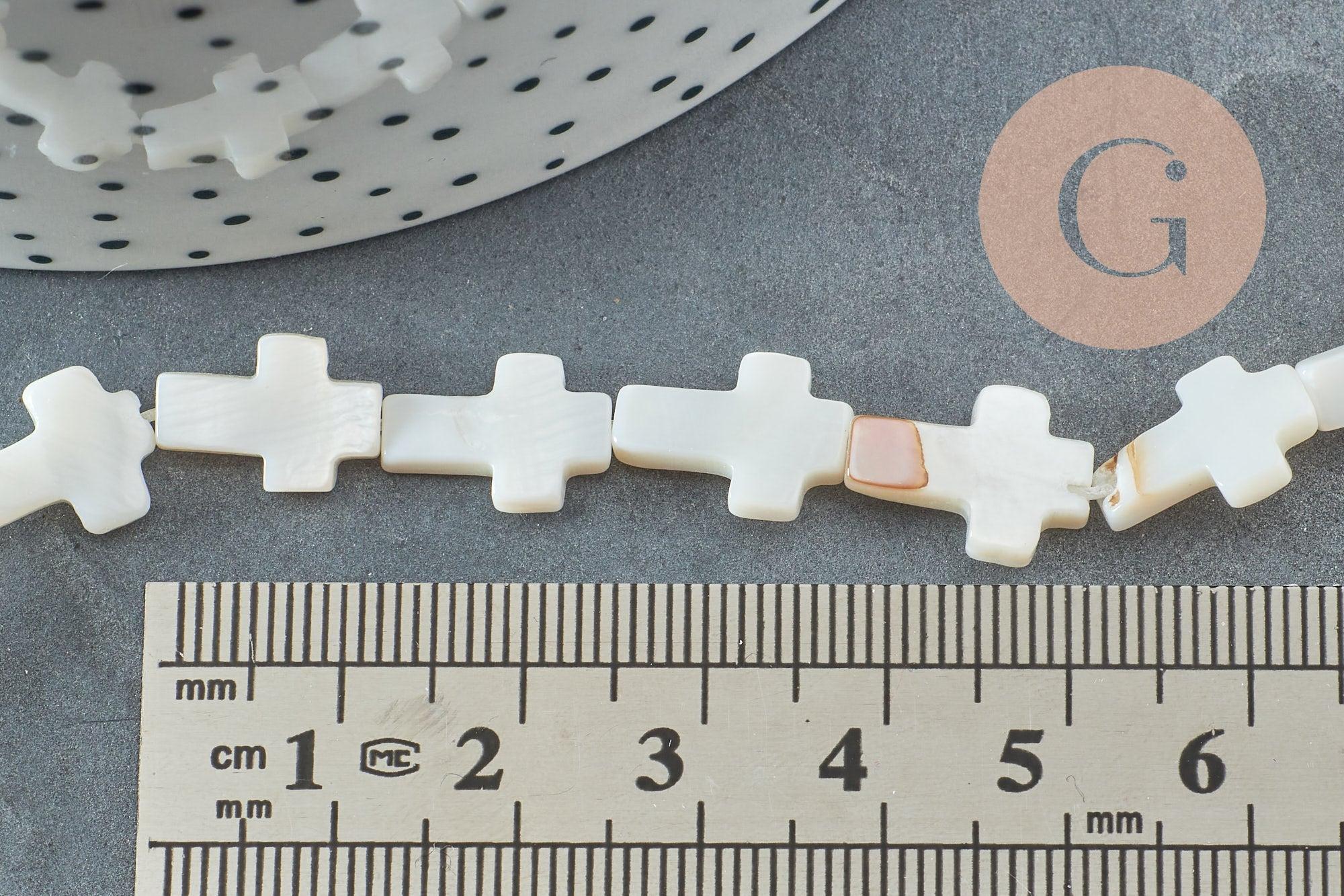 Natural white mother-of-pearl cross pearl, cross pearl, white shell, jewelry creation, 12mm, thread of 25 pearls
