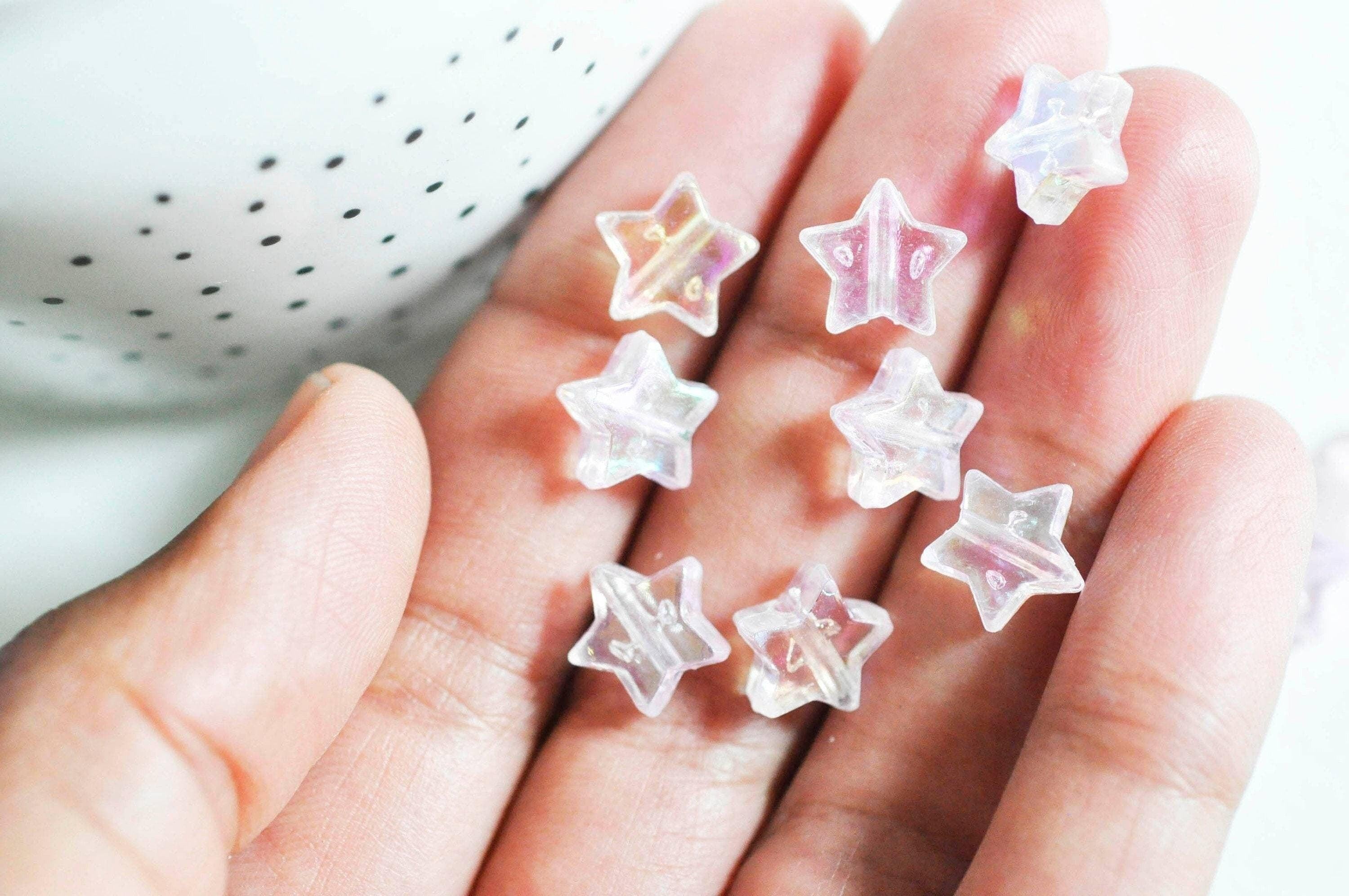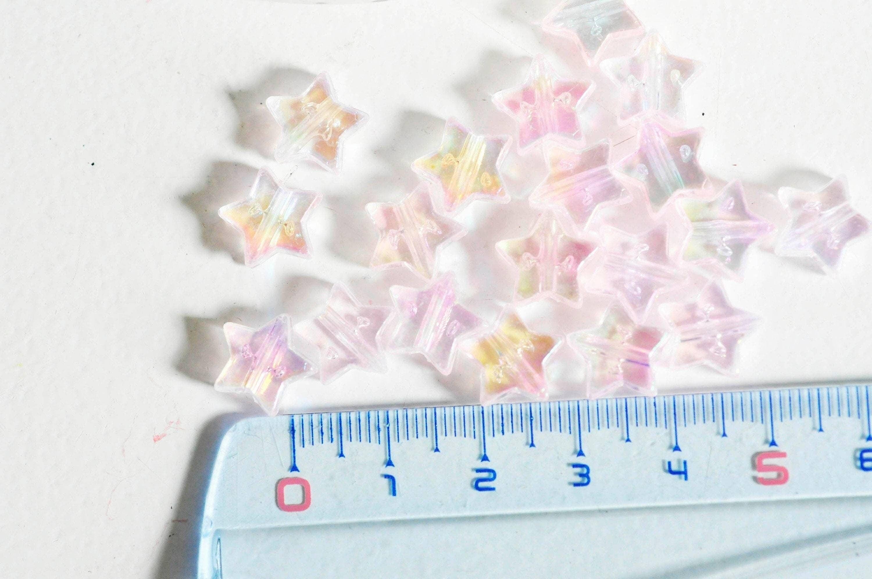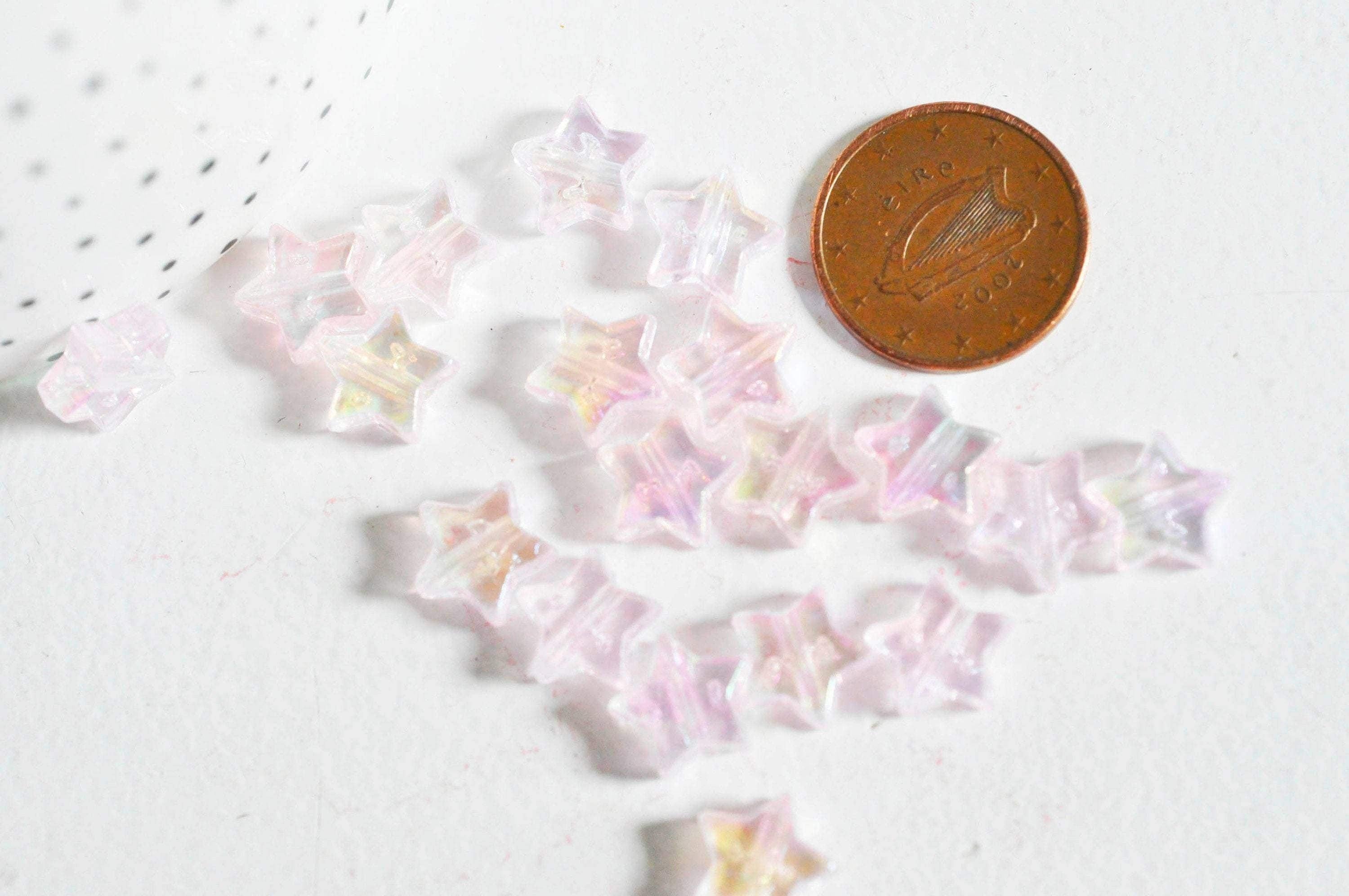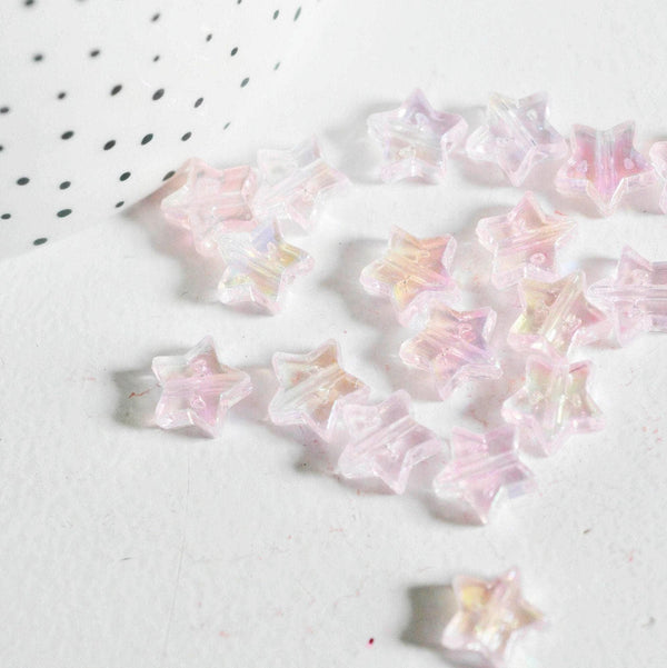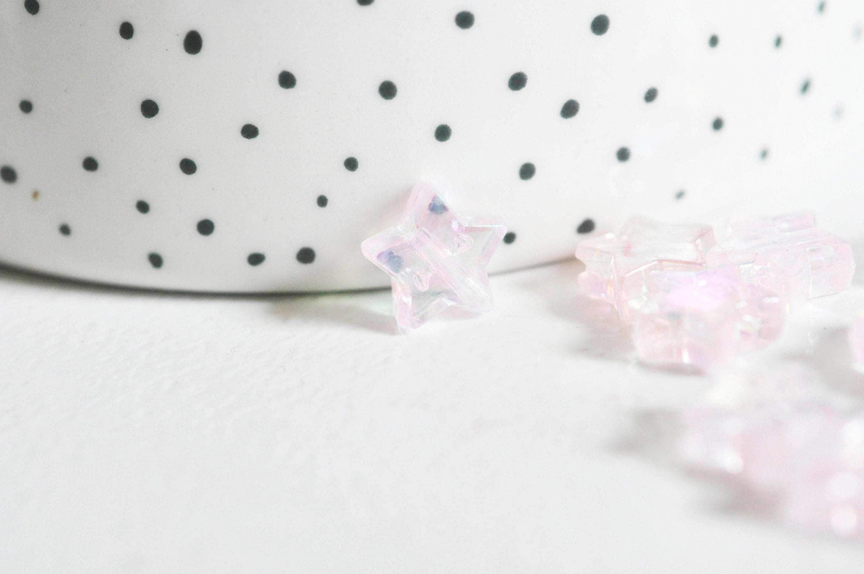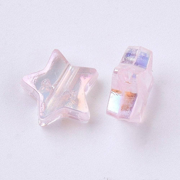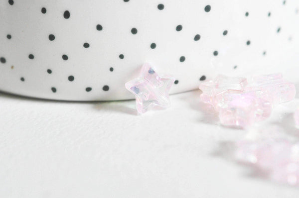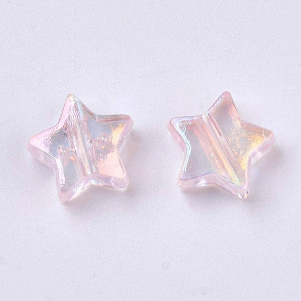 Fall for this set of star-shaped beads in transparent pink plastic, with iridescent reflections