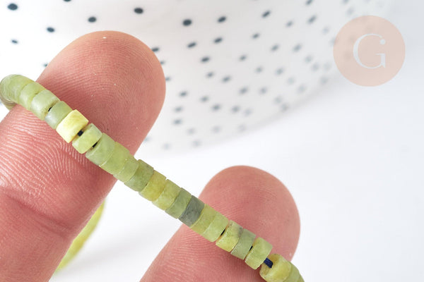 Perle Heishi jade vert 4mm, bijou en pierre naturelle,jade vert naturel, perle en pierre, fil de 44cm, x1 (G7225)