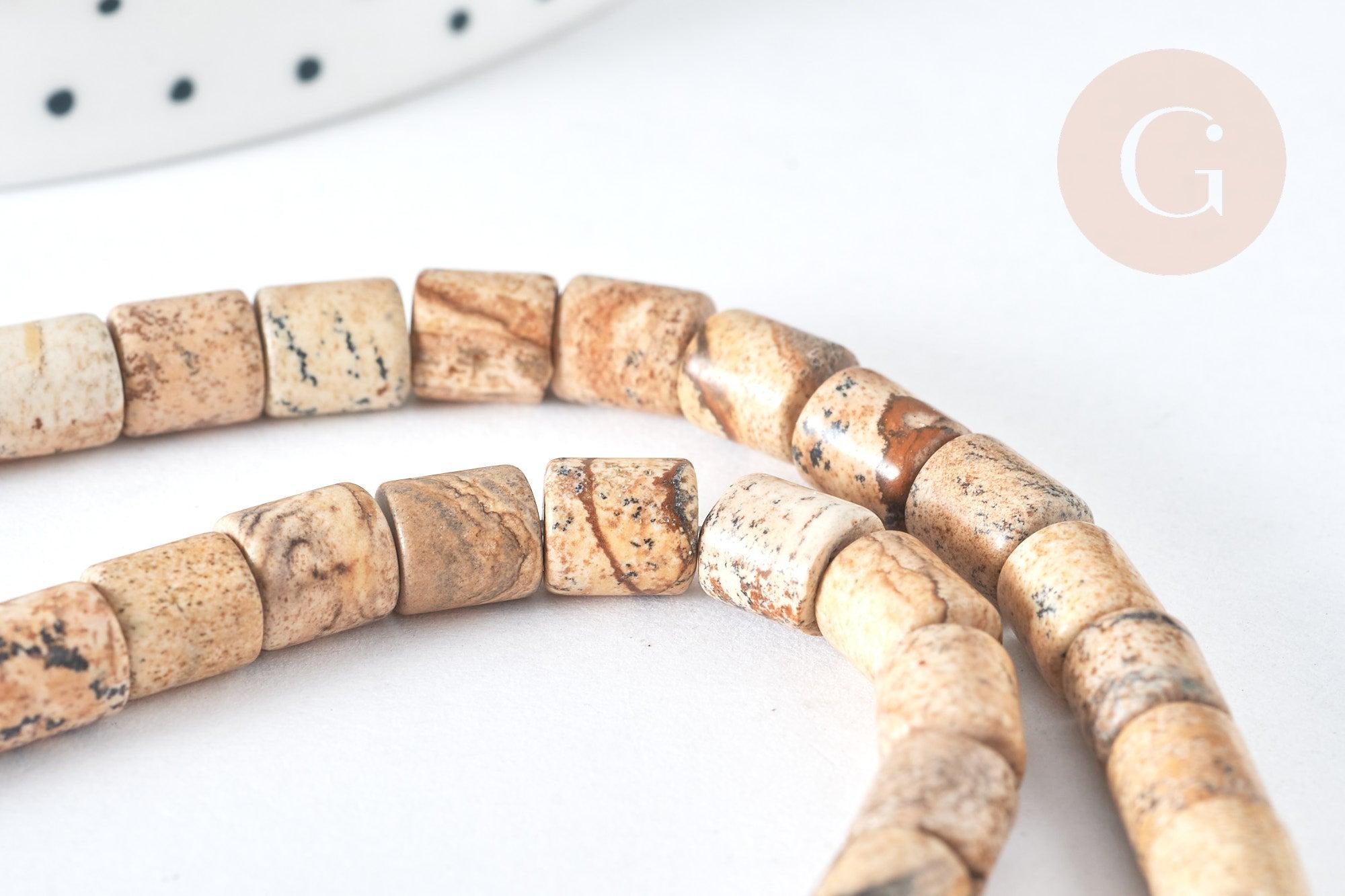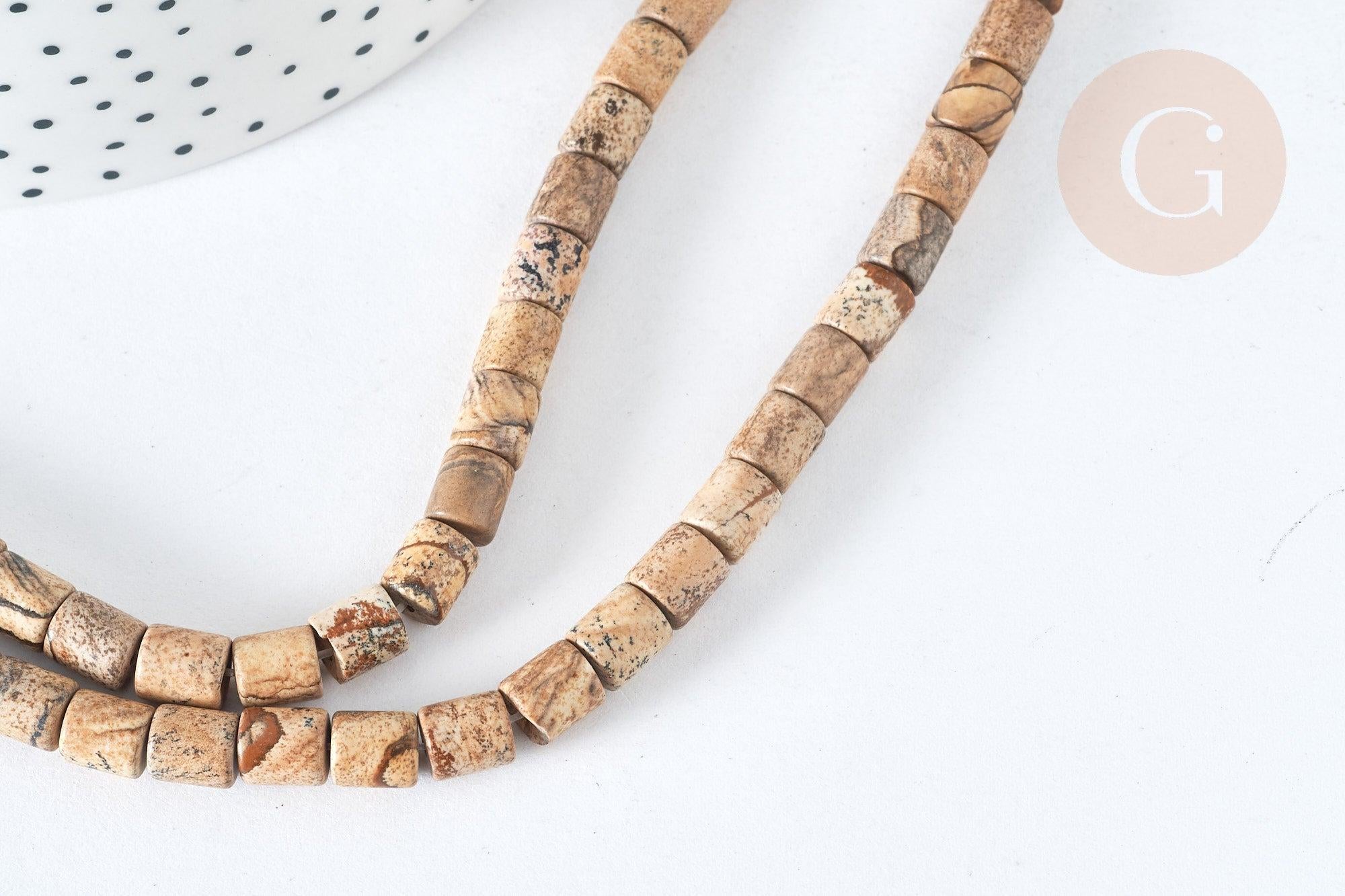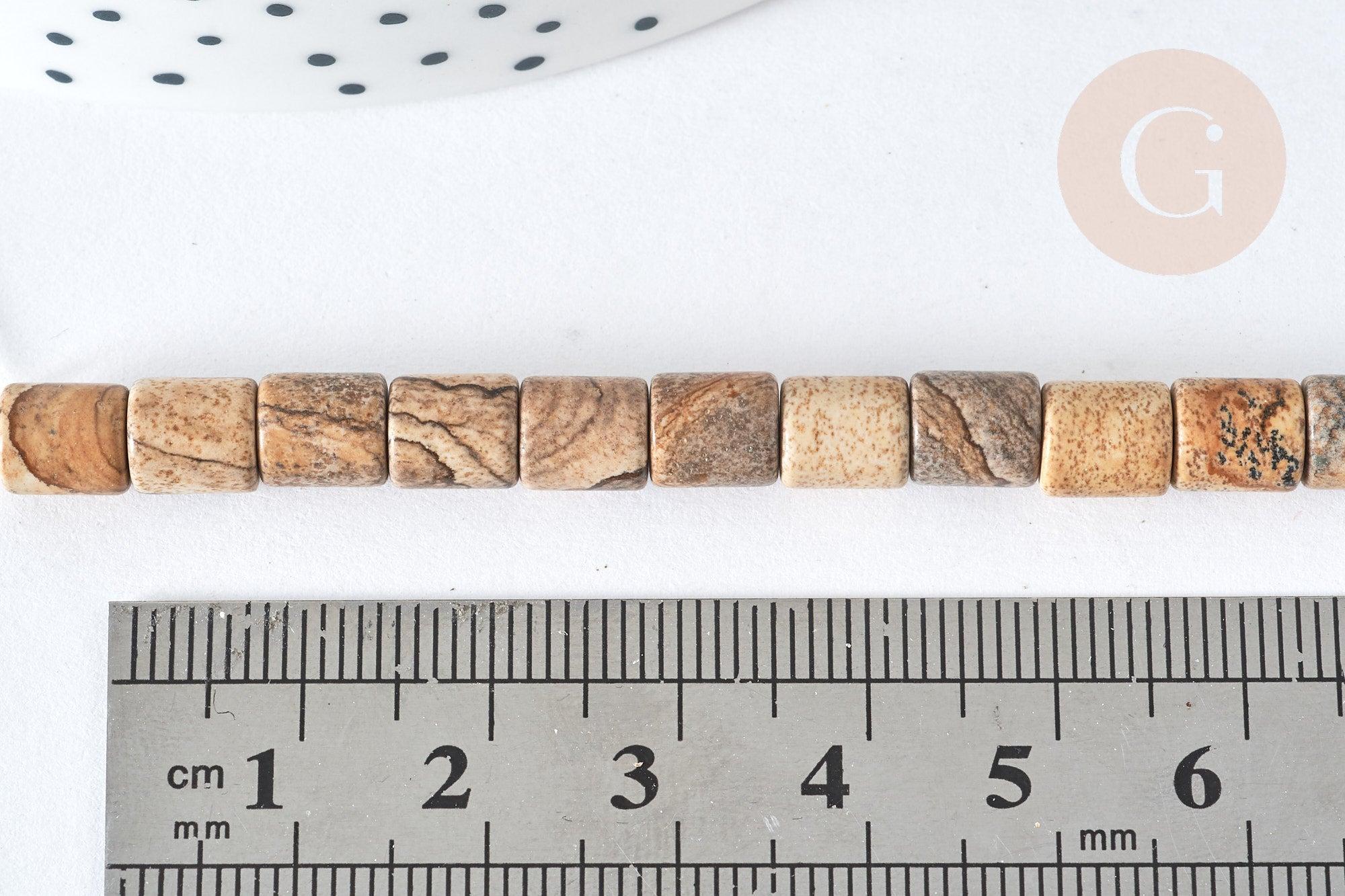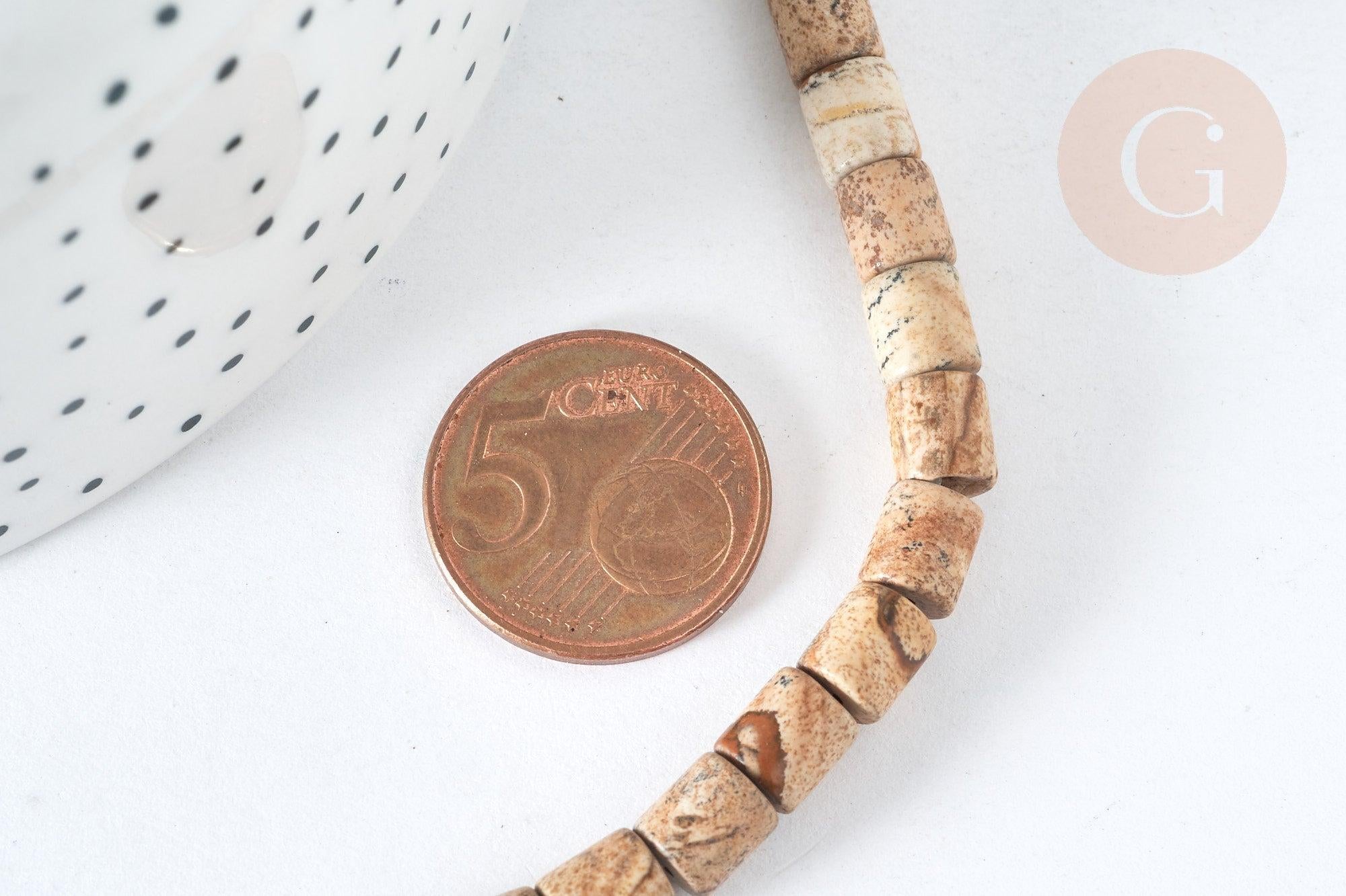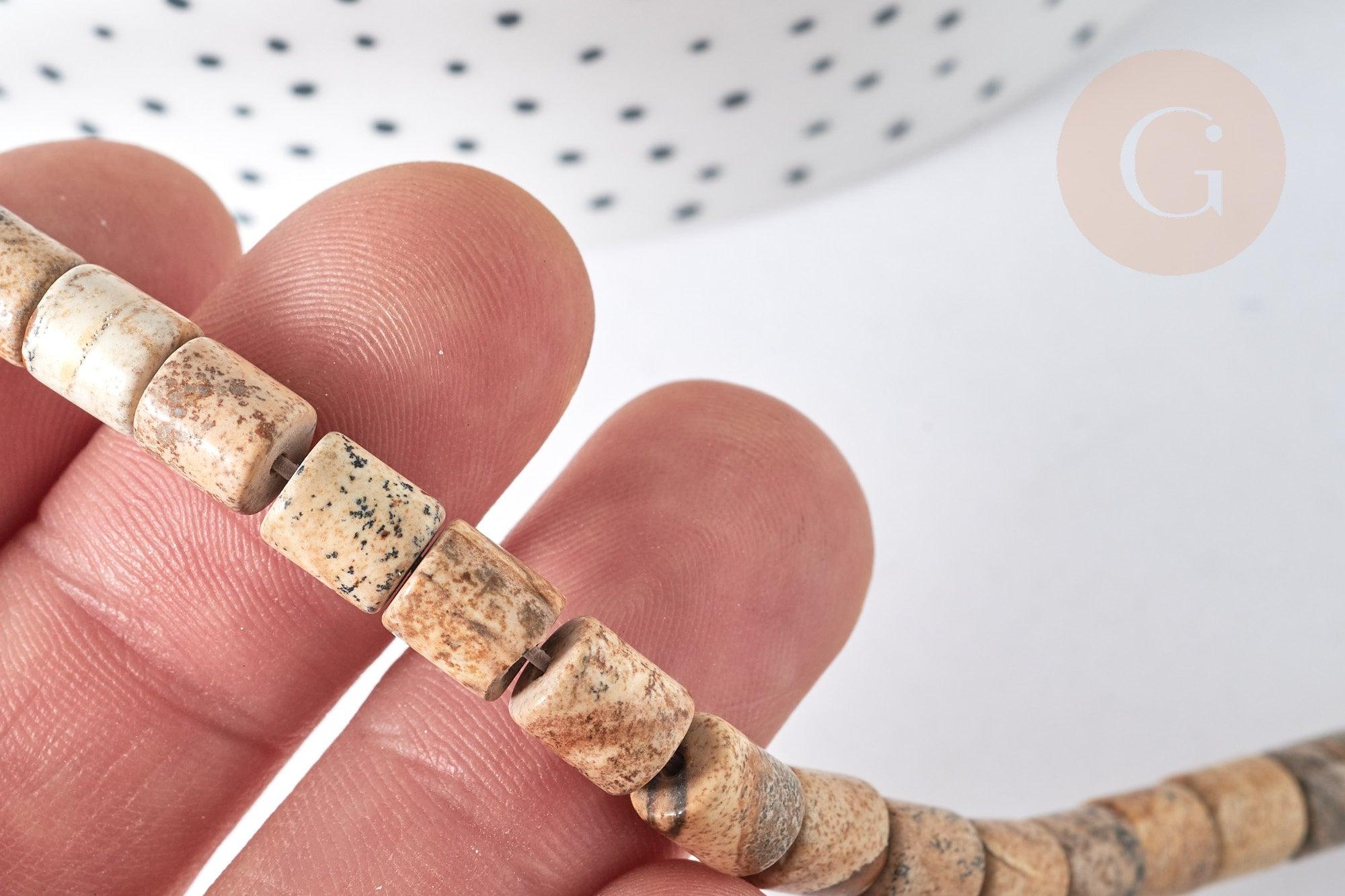 Perle heishi tube Jaspe paysage naturelle 6x6mm,x1 fil de 39.8cm (G7541)