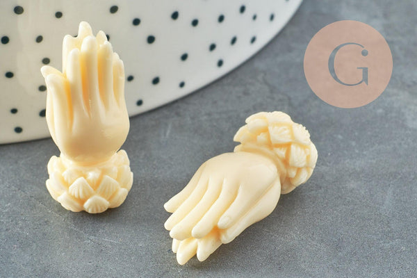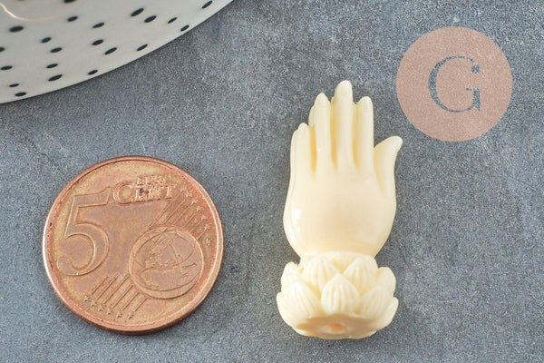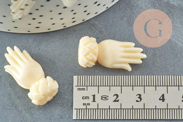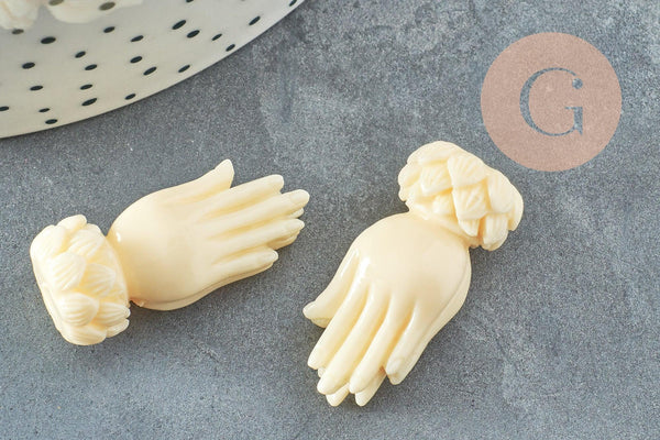 Perle main résine écru 26.5mm,perle imitation corail , x2 (G3666)
