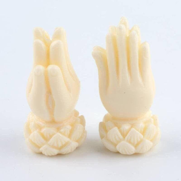 beads in imitation coral (resin) tinted on the theme of the shakra (Lotus prayer)