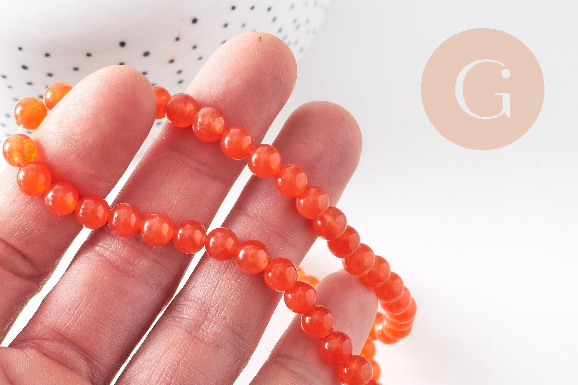 The 6mm round orange natural jade beads are perfect elements for creating stone jewelry. This set includes ten orange colored jade beads, offering multiple possibilities for your creations.