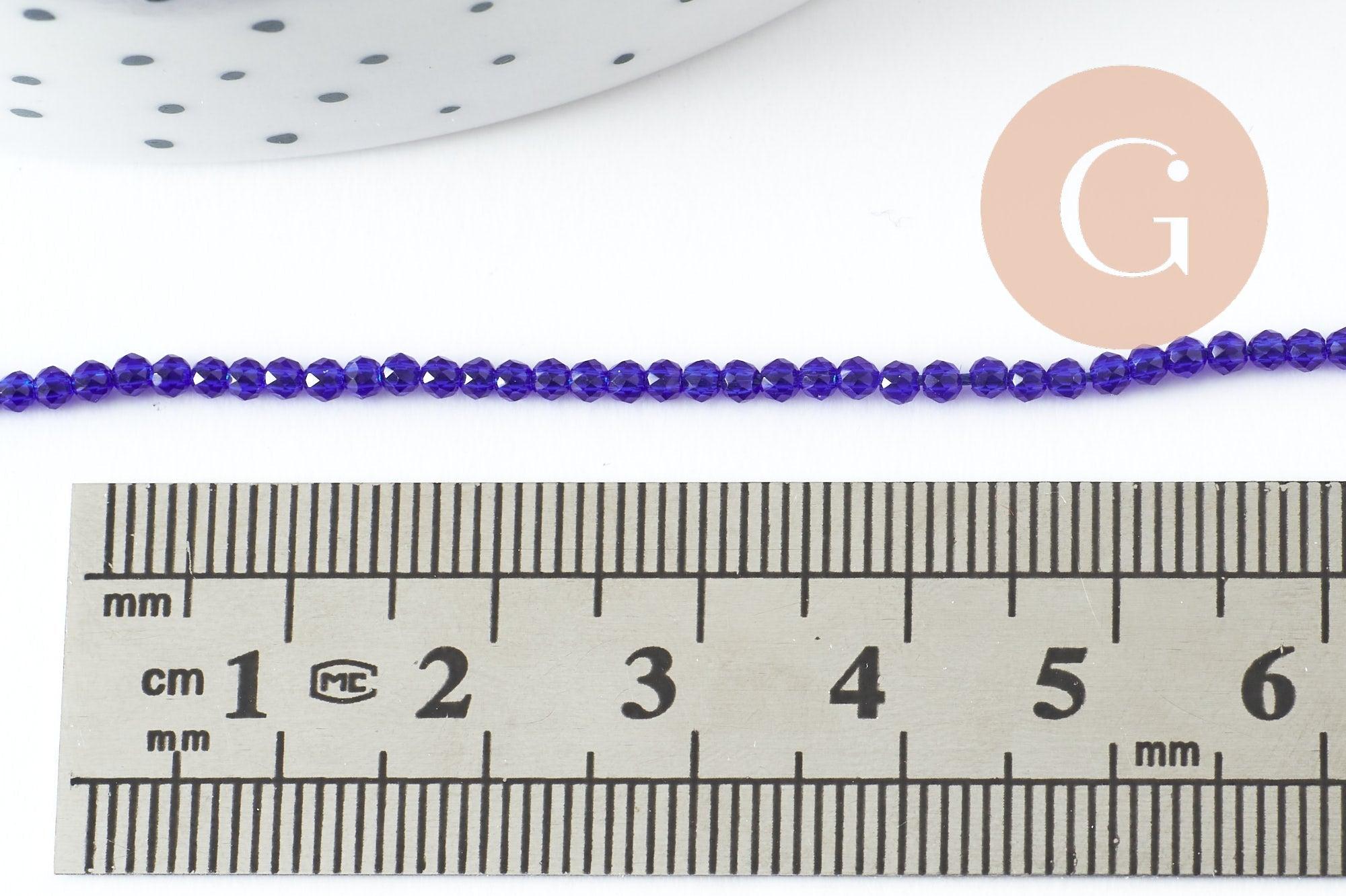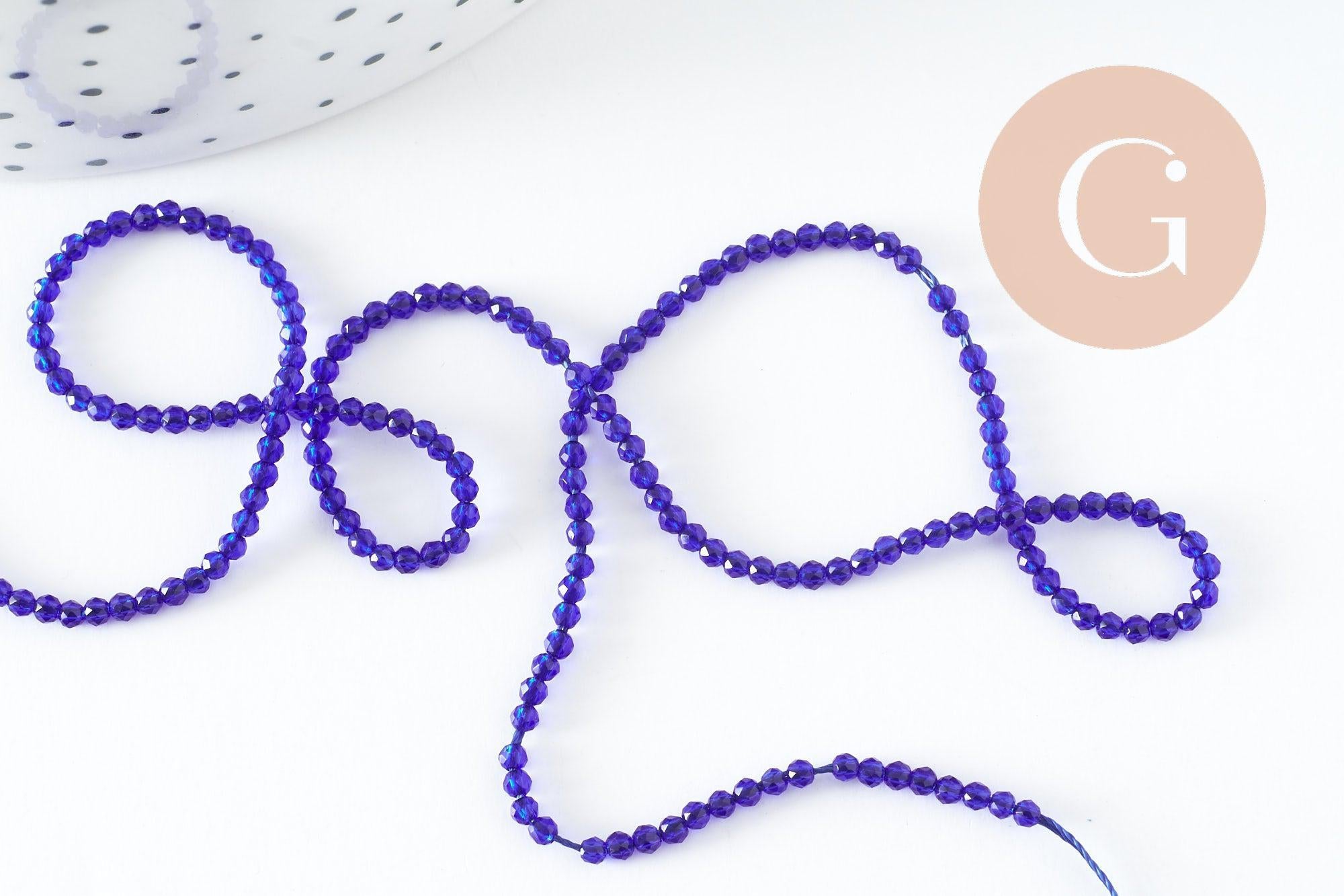 Perle rondelle cristal facetté bleu roi 2mm, perle toupies création bijoux fantaisie DIY, fil de 37cm x1 (G7241)